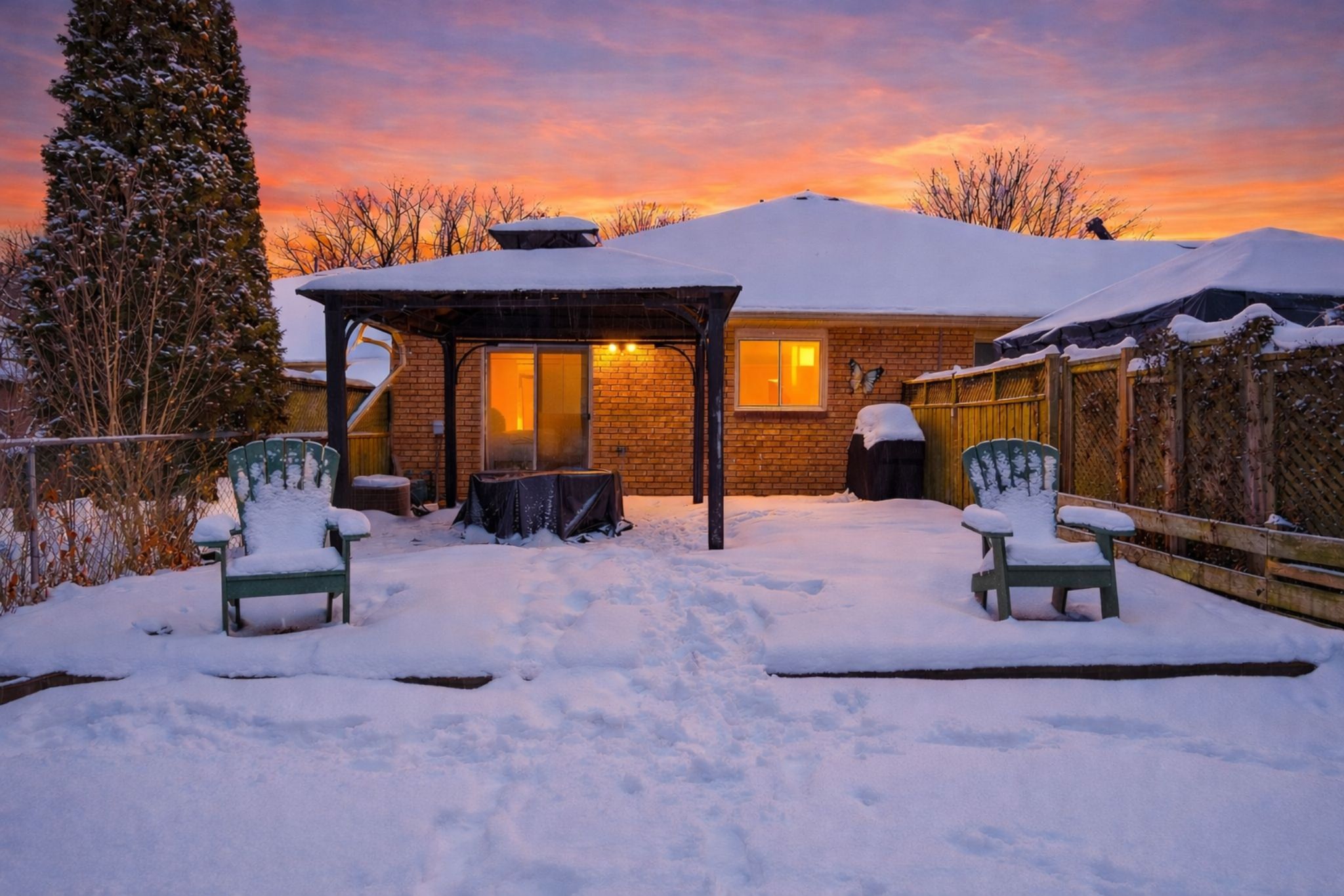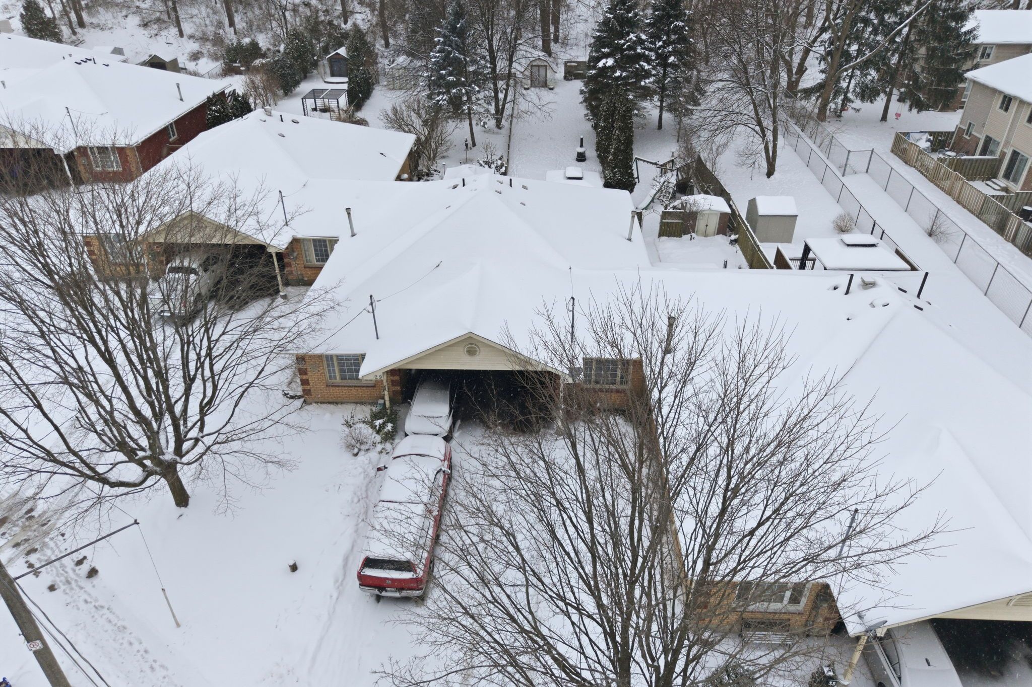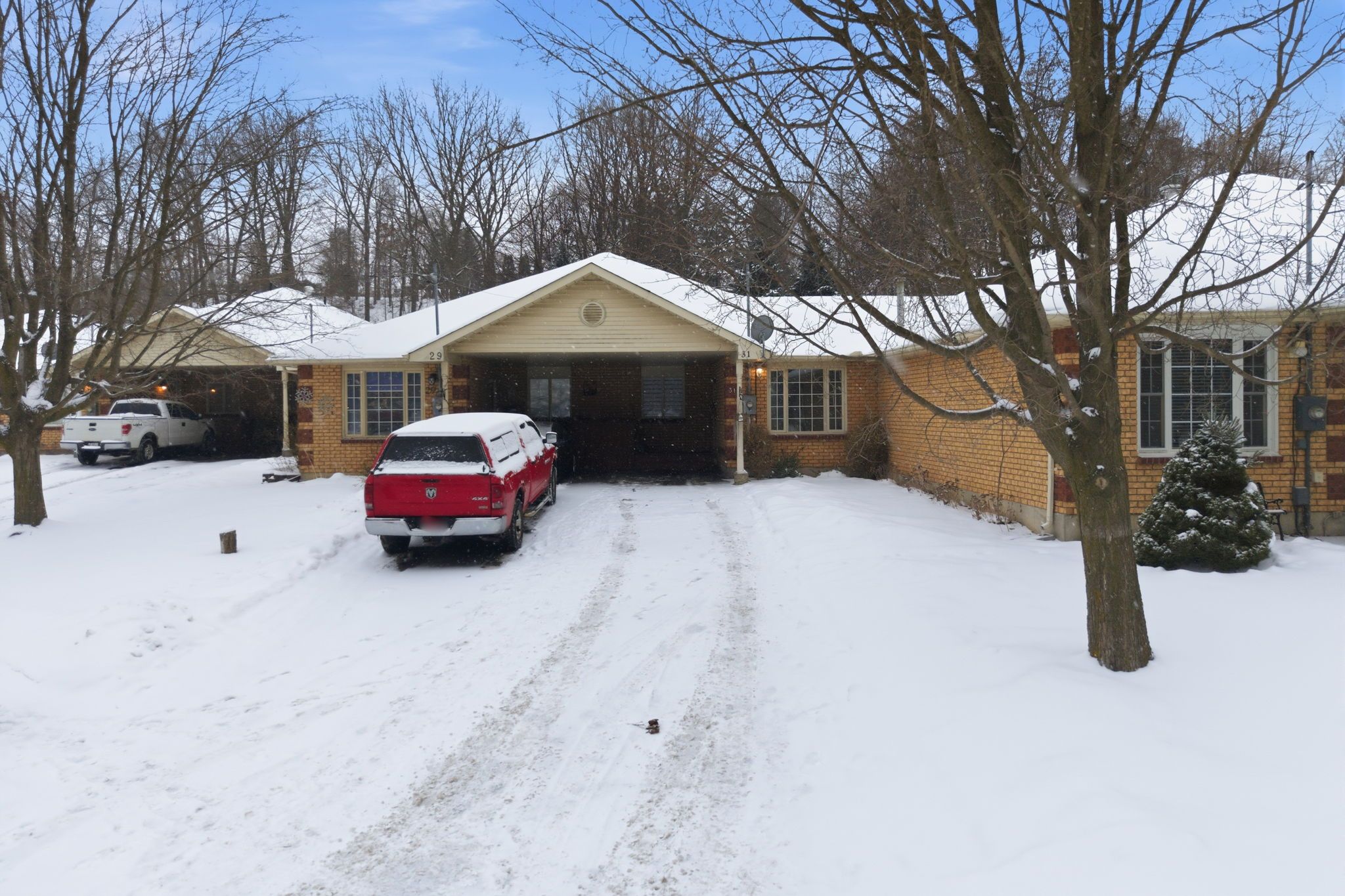 Beautifully nestled on an exceptionally deep lot in the terrace hill neighbourhood, this charming and spacious freehold bungalow townhome features 2 bedrooms and 2 full bathrooms. Enjoy a carport as well as additional driveway parking for 2 vehicles. As you enter the home, you're welcomed into the open and bright living room that features an expansive window overlooking the front yard and leads into the dining area. The kitchen offers ample cabinetry and a tasteful backsplash, with some appliances newly updated, including the fridge (2025) and dishwasher (2024). The spacious primary bedroom offers ample closet space and a sliding door walkout to the breathtaking backyard, the perfect spot to enjoy your morning coffee outdoors. The second bedroom is also generously sized with abundant closet space and offers a view of the backyard. Completing the main level is a stunning, renovated 3-piece bathroom and a laundry room with cabinetry. In the basement, you will find a recreation area and a great-sized family room, the ideal spot for enjoying movie nights or game days, two additional rooms ideal for use as a home office, gym or hobby room, a stylish 4-piece bathroom, and abundant storage space. The remarkably deep backyard is the real showstopper! Enjoy an expansive wooden deck with a gazebo and a gas line for the barbecue, a huge green space area, a shed and garden beds, complemented by breathtaking mature trees. This lot soars with beauty in the summertime, and it's the perfect home for families, couples, and those who enjoy entertaining. With many key updates already complete, including the furnace (2025), the hot water tank and the water softener (2023), this home is move-in ready. Located in a cul-de-sac in a family-friendly neighbourhood, this home is close to parks, trails, the scenic grand river, schools, all amenities, restaurants, highway access, golf courses, downtown brantford, and so much more. Seize the moment and call this great home and property yours!