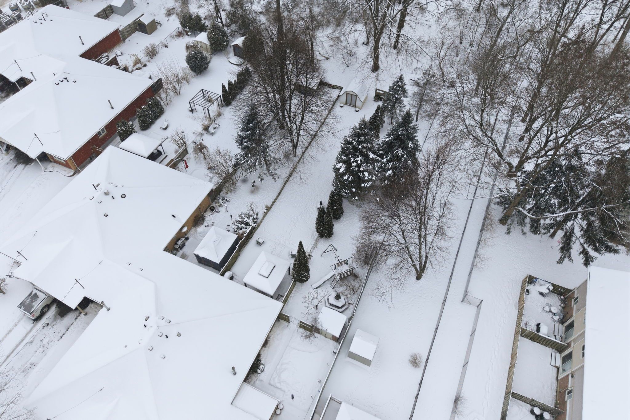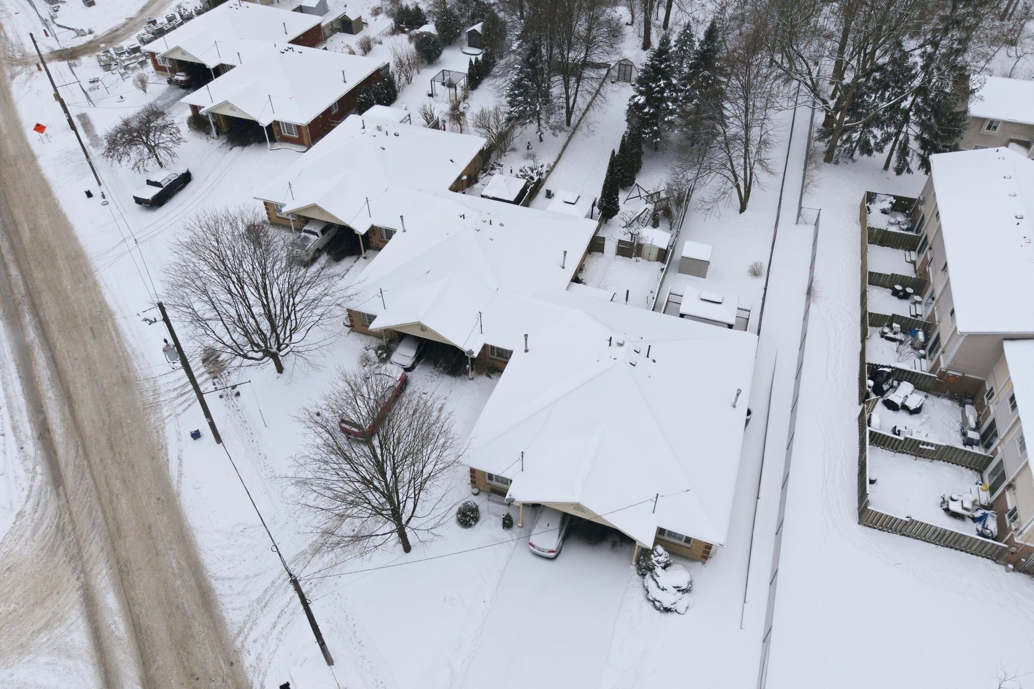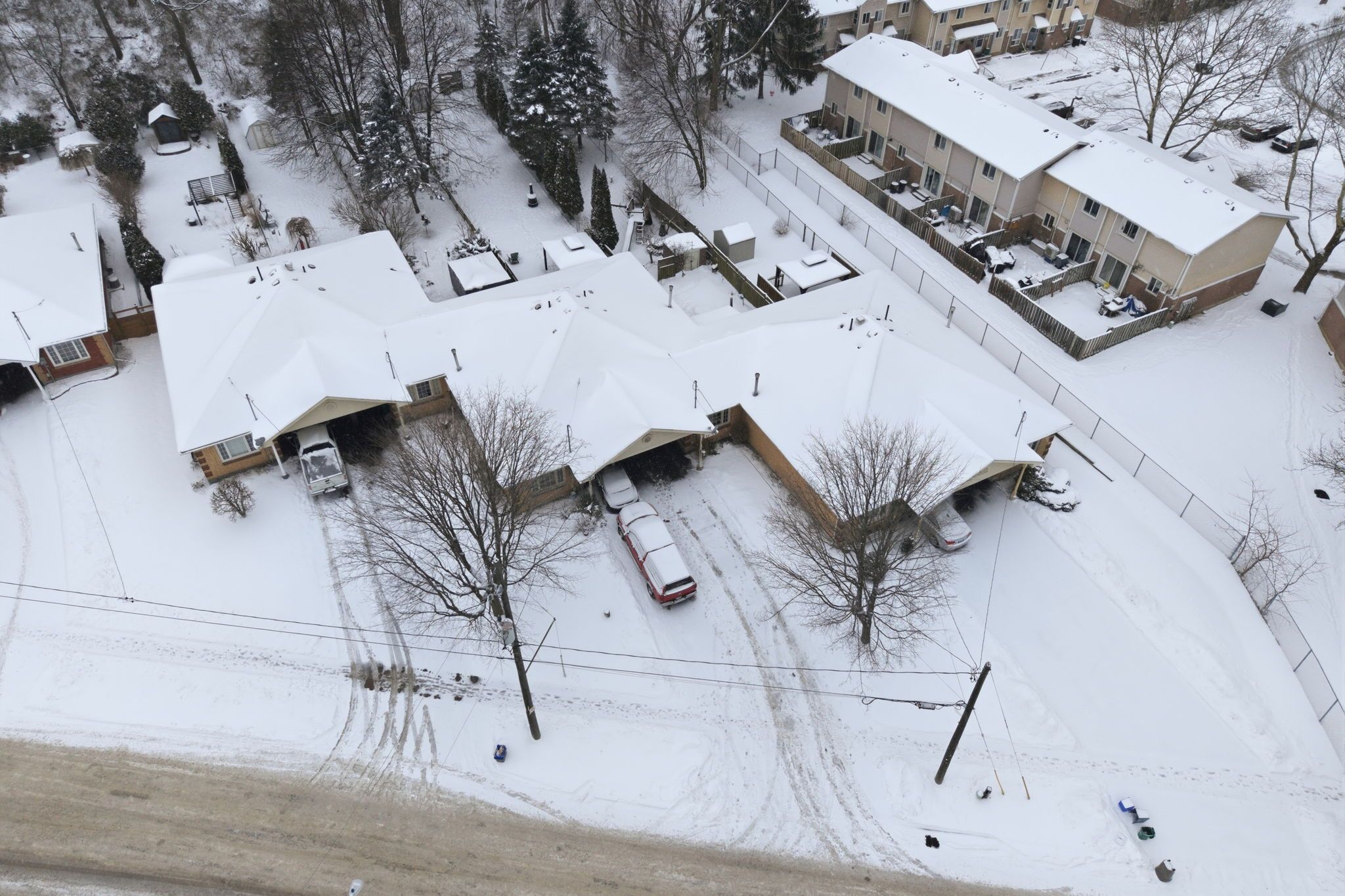Beautifully nestled on an exceptionally deep lot in the terrace hill neighbourhood, this charming and spacious freehold bungalow townhome features 2 bedrooms and 2 full bathrooms. Enjoy a carport as well as additional driveway parking for 2 vehicles. As you enter the home, you're welcomed into the open and bright living room that features an expansive window overlooking the front yard and leads into the dining area. The kitchen offers ample cabinetry and a tasteful backsplash, with some appliances newly updated, including the fridge (2025) and dishwasher (2024). The spacious primary bedroom offers ample closet space and a sliding door walkout to the breathtaking backyard, the perfect spot to enjoy your morning coffee outdoors. The second bedroom is also generously sized with abundant closet space and offers a view of the backyard. Completing the main level is a stunning, renovated 3-piece bathroom and a laundry room with cabinetry. In the basement, you will find a recreation area and a great-sized family room, the ideal spot for enjoying movie nights or game days, two additional rooms ideal for use as a home office, gym or hobby room, a stylish 4-piece bathroom, and abundant storage space. The remarkably deep backyard is the real showstopper! Enjoy an expansive wooden deck with a gazebo and a gas line for the barbecue, a huge green space area, a shed and garden beds, complemented by breathtaking mature trees. This lot soars with beauty in the summertime, and it's the perfect home for families, couples, and those who enjoy entertaining. With many key updates already complete, including the furnace (2025), the hot water tank and the water softener (2023), this home is move-in ready. Located in a cul-de-sac in a family-friendly neighbourhood, this home is close to parks, trails, the scenic grand river, schools, all amenities, restaurants, highway access, golf courses, downtown brantford, and so much more. Seize the moment and call this great home and property yours!