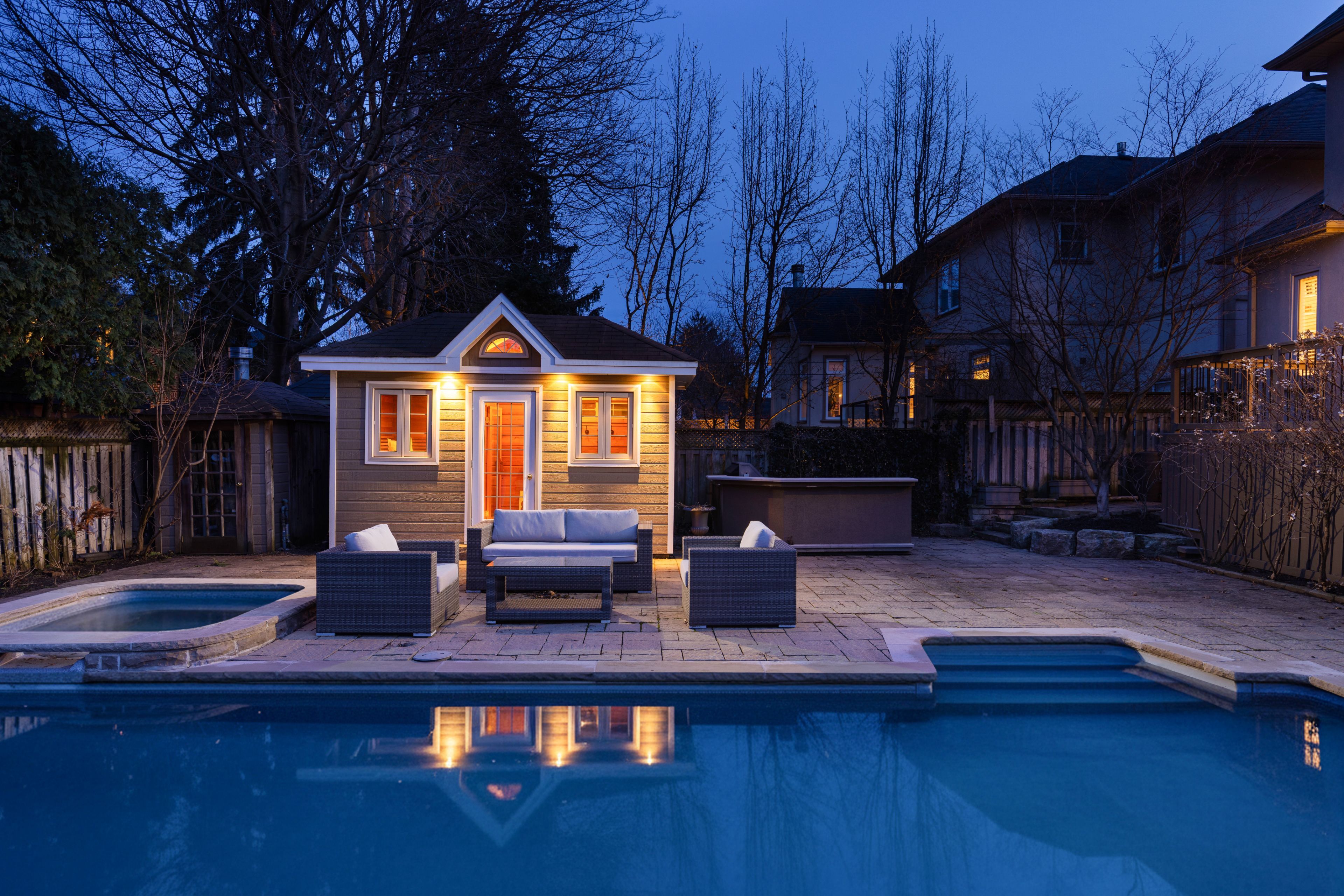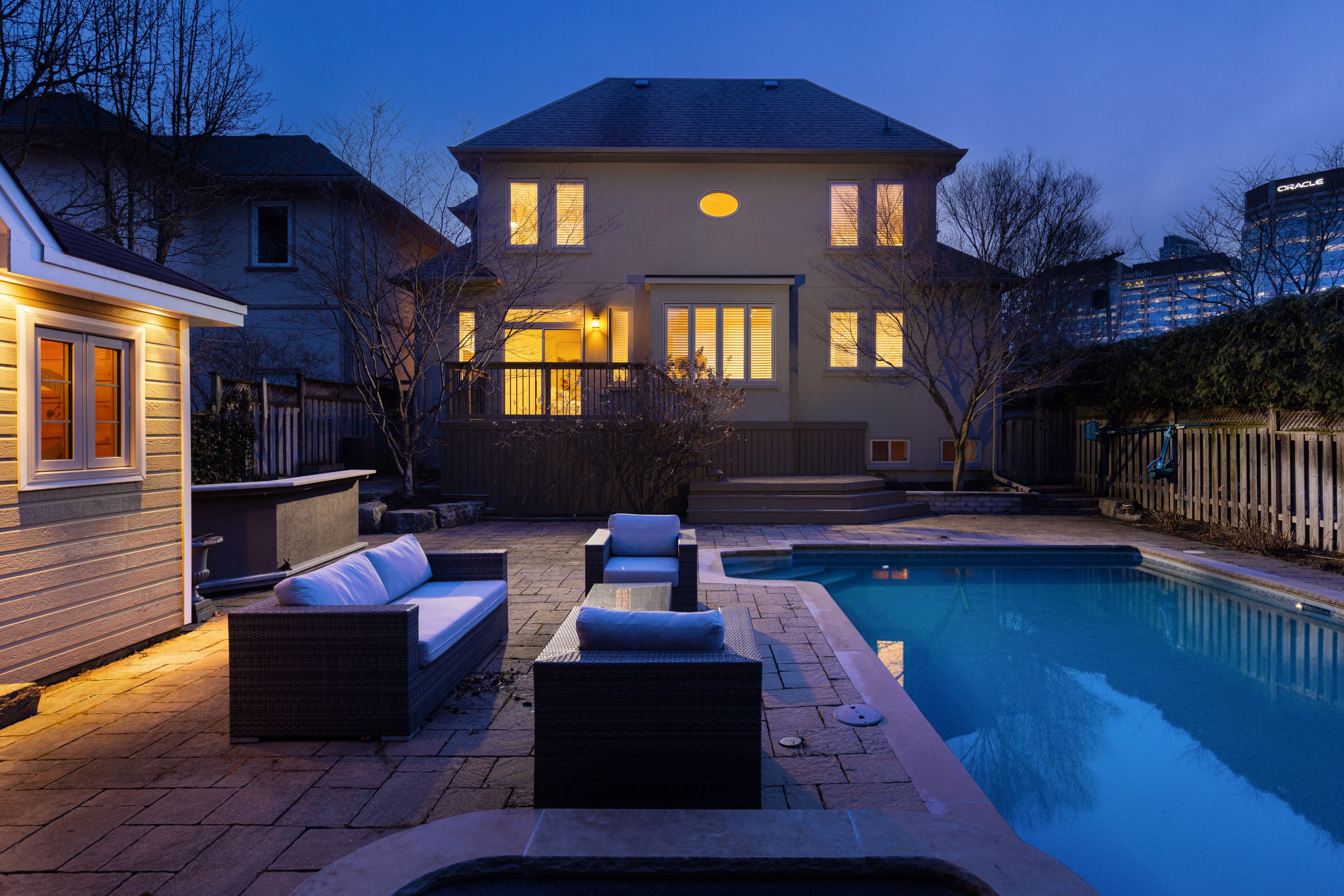 Welcome to 31 gardenvale rd, an exceptional family residence with a premium lot, nestled in the prestigious enclave of springbrook gardens. Thoughtfully designed and beautifully finished, this home showcases the best of refined living with hardwood flooring throughout the main level and a collection of sophisticated principal rooms. A gracious living room and formal dining room offer fabulous entertaining space, while the family room, anchored by a gas fireplace, offers seamless indoor-outdoor living with a walk-out to the deck. The sun-filled eat-in kitchen overlooks the private garden and features a centre island, ideal for both everyday living and hosting. A private main floor office with french doors provides a quiet and distinguished workspace. Upstairs, four generously proportioned bedrooms offer comfort and retreat, highlighted by a luxurious primary suite complete with a walk-in closet and a spa-inspired 5-piece ensuite with dual vanities. The professionally finished lower level extends the home's living space with a spacious recreation room, games area, and a versatile room suited for a home office, fitness studio, or guest quarters. Step outside to a resort-style backyard oasis, expertly designed for upscale entertaining. Enjoy an expansive stone patio, a stunning inground heated pool with integrated spa and waterfall feature, a fully equipped outdoor kitchen with built-in bbq and cooktop, and an inviting poolside cabana with sauna. Ideally located within steps to the kingsway, sunnylea & bloor west village, offering an array of boutique shops, fine dining, cafés, top-tier schools, scenic parks, and convenient access to public transit & major highways. All your boxes are checked at 31 gardenvale!