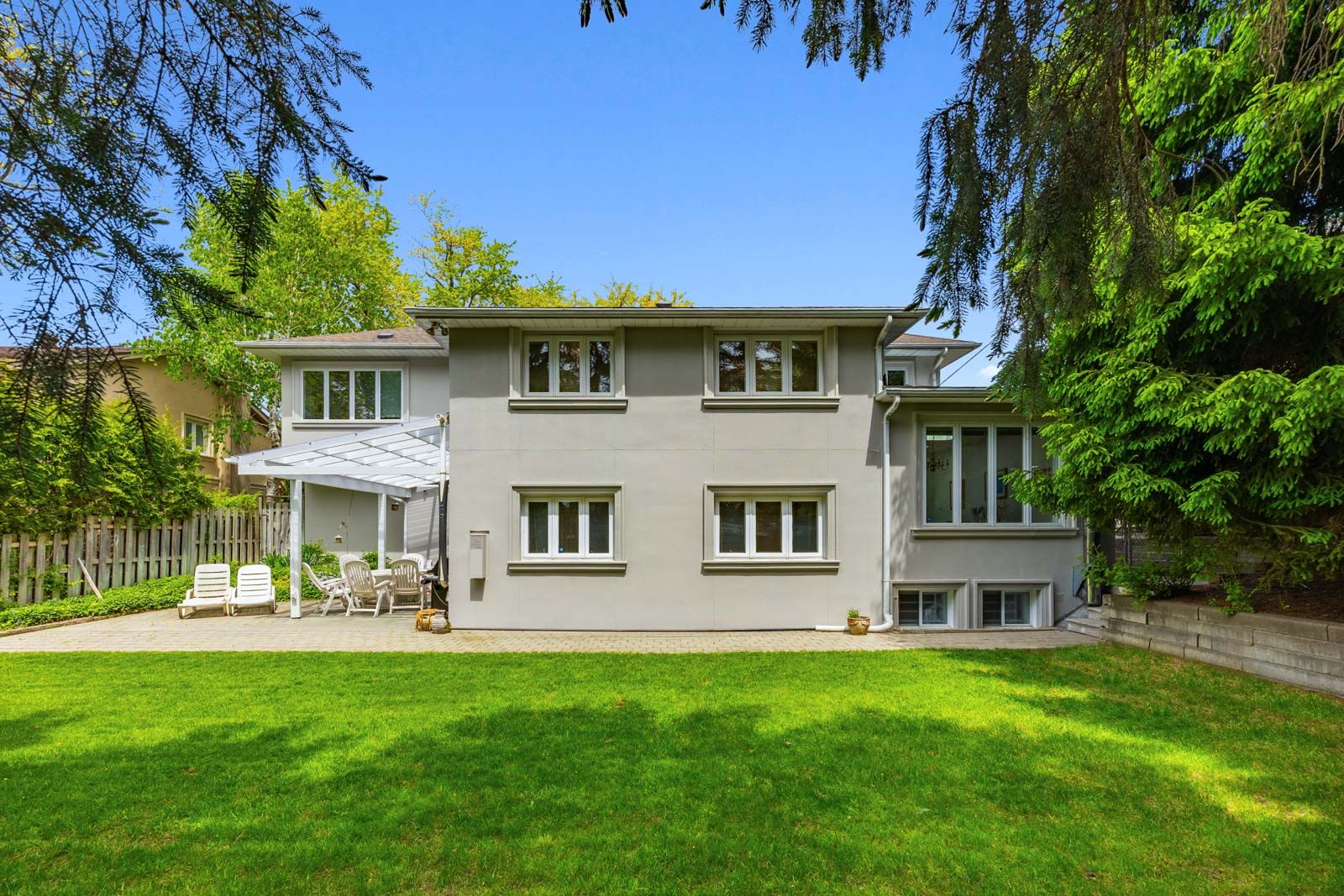 Beautifully situated in henry farms on a gorgeous tree-lined street this handsome, spacious family home was rebuilt in 1994 by the present owners. Soaring ceilings with stunning spiral staircase present at front foyer beautifully. 31 george henry boulevard offers potential for families with teenagers, or multi-generational families with grandparents wanting separate quarters above grade. The lower level offers 1,300 sq ft of extra living space, the fully fenced back yard is totally private with massive evergreens. Minutes from ttc, shopping, tranquil ravine trails, and great access to highways. Truly a wonderful family home.