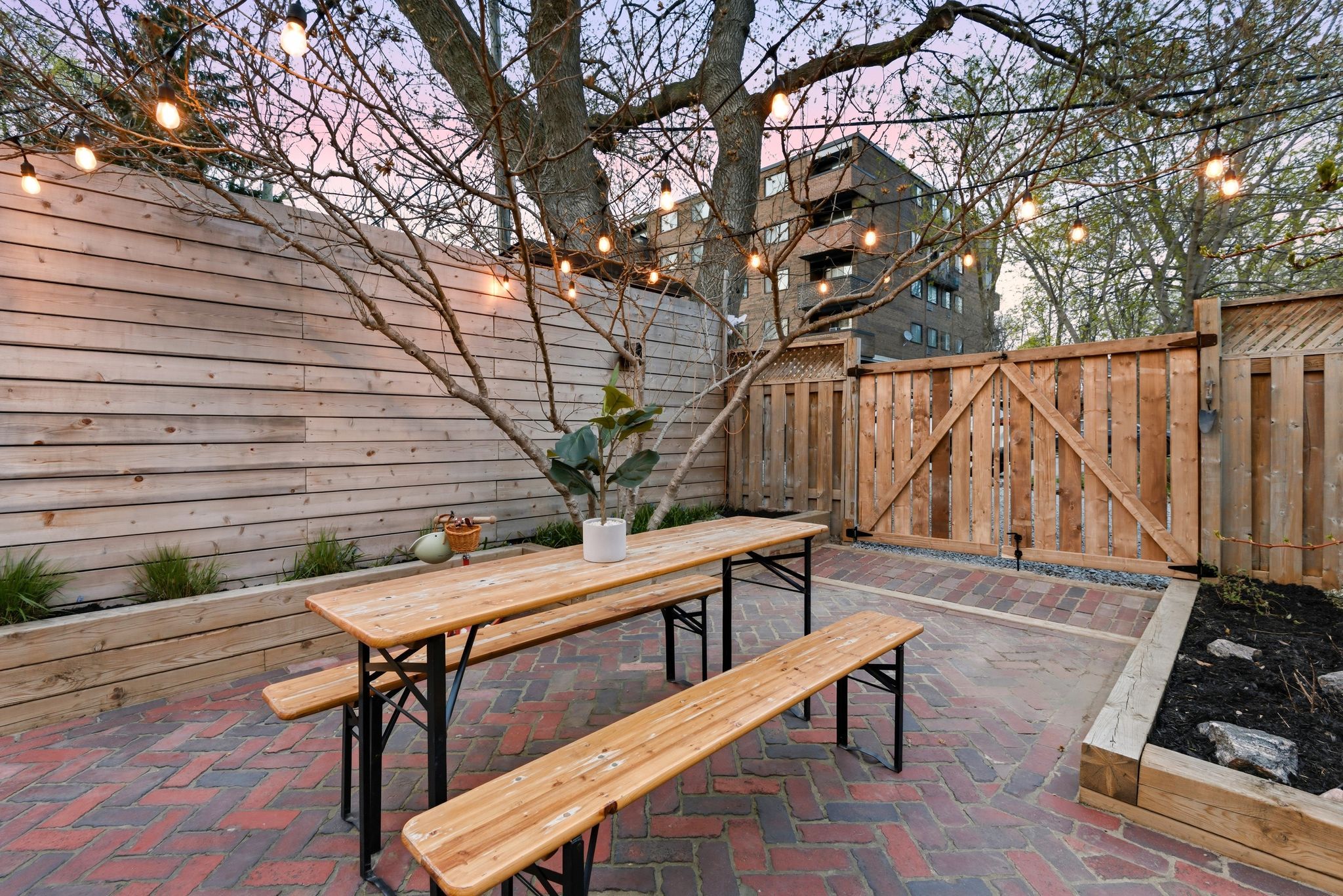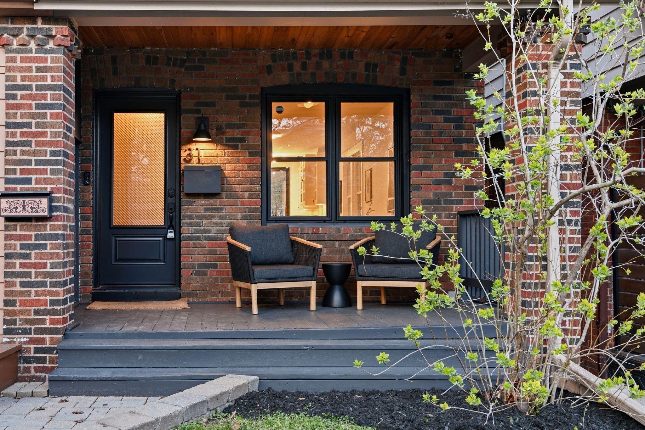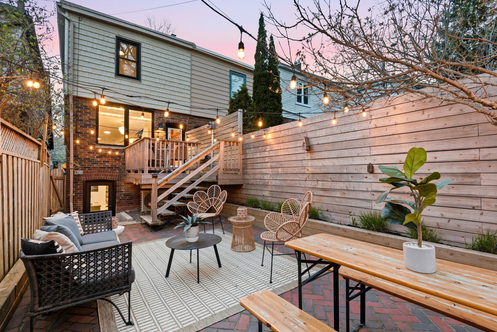 Gimme glenmore. A tree-lined street filled with incredible neighbours and a real sense of community. That's what draws you in. Step through the gate and everything else falls away. Reclaimed brick underfoot, string lights overhead, a fire pit, a tree canopy that's been here longer than any of us, and the kind of backyard privacy that's genuinely hard to find. Just green, and room for the people who matter. Inside, the kitchen window does something most kitchens don't. It frames the space like a painting. Exposed beam ceiling above, farmhouse sink below, and a wall of green that changes with the seasons. You'll do the dishes just for the view. Exposed brick carries through the open main floor, living, dining, and kitchen connected front to back. Three generous bedrooms upstairs flex for whatever life looks like right now. The basement walks straight out to the yard with a mudroom and laundry at the entry. The kind of layout that makes entertaining feel easy and school mornings feel manageable. One-car laneway parking. About a twelve-minute walk to the subway. Coffee at morning parade. Bread from jupiter. Dinner at lake inez or belle isle. Kids at fairmount park after school. The beach, gerrard east, and leslieville all within reach, but once you've seen this backyard in june, you might not leave.