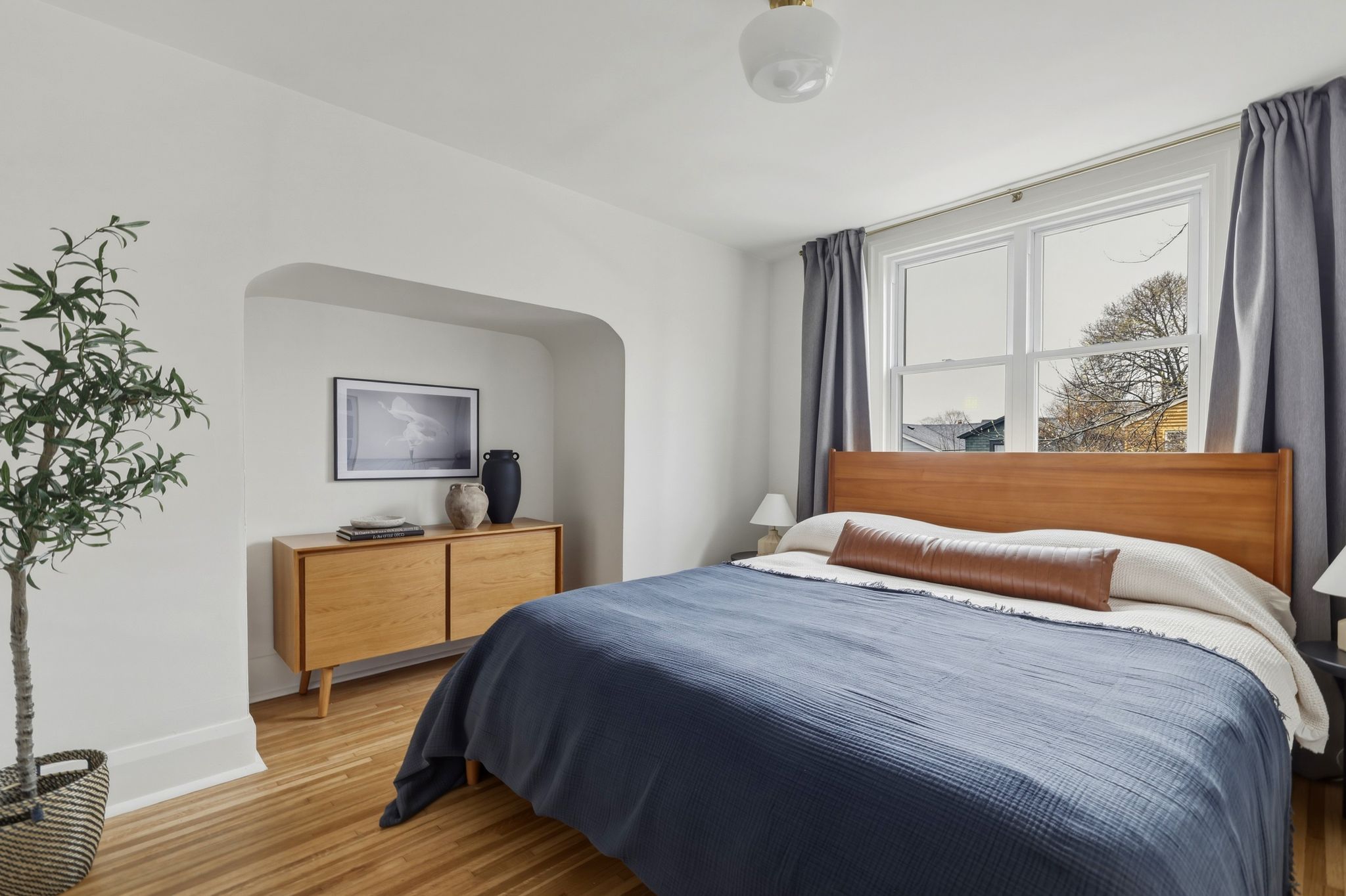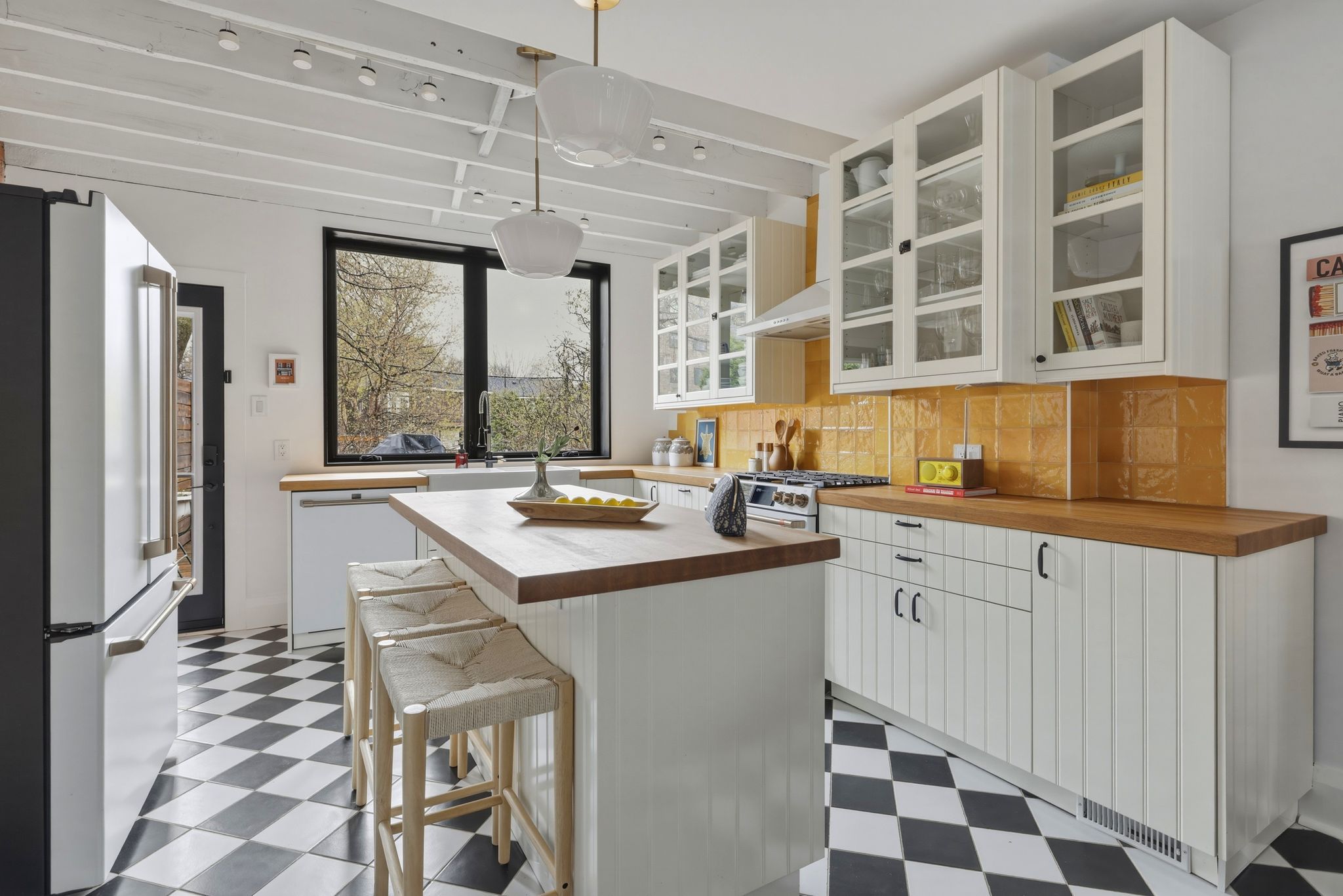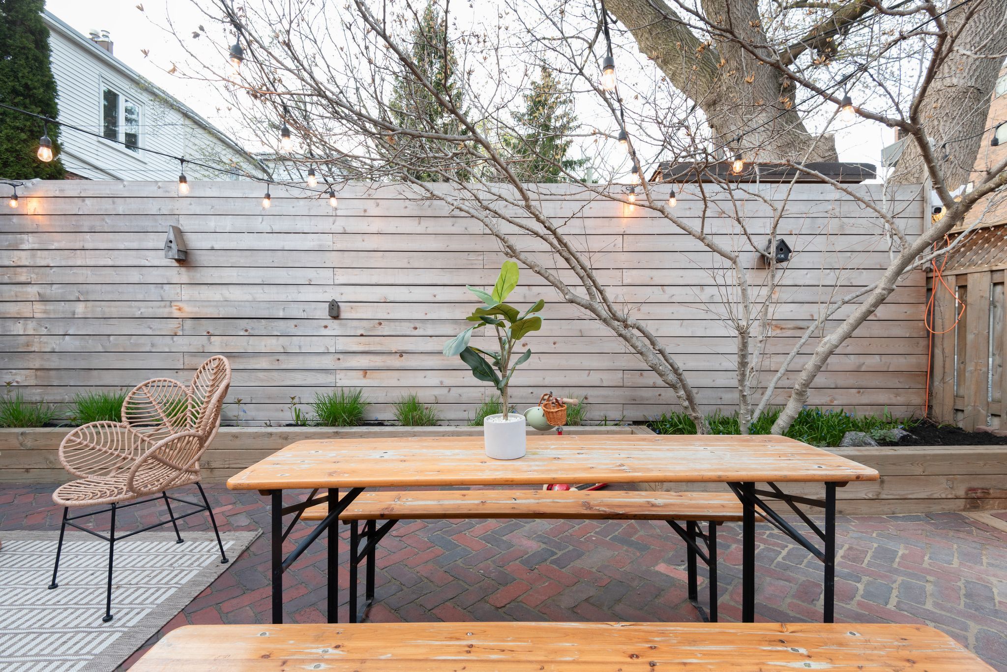 Gimme glenmore. A tree-lined street filled with incredible neighbours and a real sense of community. That's what draws you in. Step through the gate and everything else falls away. Reclaimed brick underfoot, string lights overhead, a fire pit, a tree canopy that's been here longer than any of us, and the kind of backyard privacy that's genuinely hard to find. Just green, and room for the people who matter. Inside, the kitchen window does something most kitchens don't. It frames the space like a painting. Exposed beam ceiling above, farmhouse sink below, and a wall of green that changes with the seasons. You'll do the dishes just for the view. Exposed brick carries through the open main floor, living, dining, and kitchen connected front to back. Three generous bedrooms upstairs flex for whatever life looks like right now. The basement walks straight out to the yard with a mudroom and laundry at the entry. The kind of layout that makes entertaining feel easy and school mornings feel manageable. One-car laneway parking. About a twelve-minute walk to the subway. Coffee at morning parade. Bread from jupiter. Dinner at lake inez or belle isle. Kids at fairmount park after school. The beach, gerrard east, and leslieville all within reach, but once you've seen this backyard in june, you might not leave.