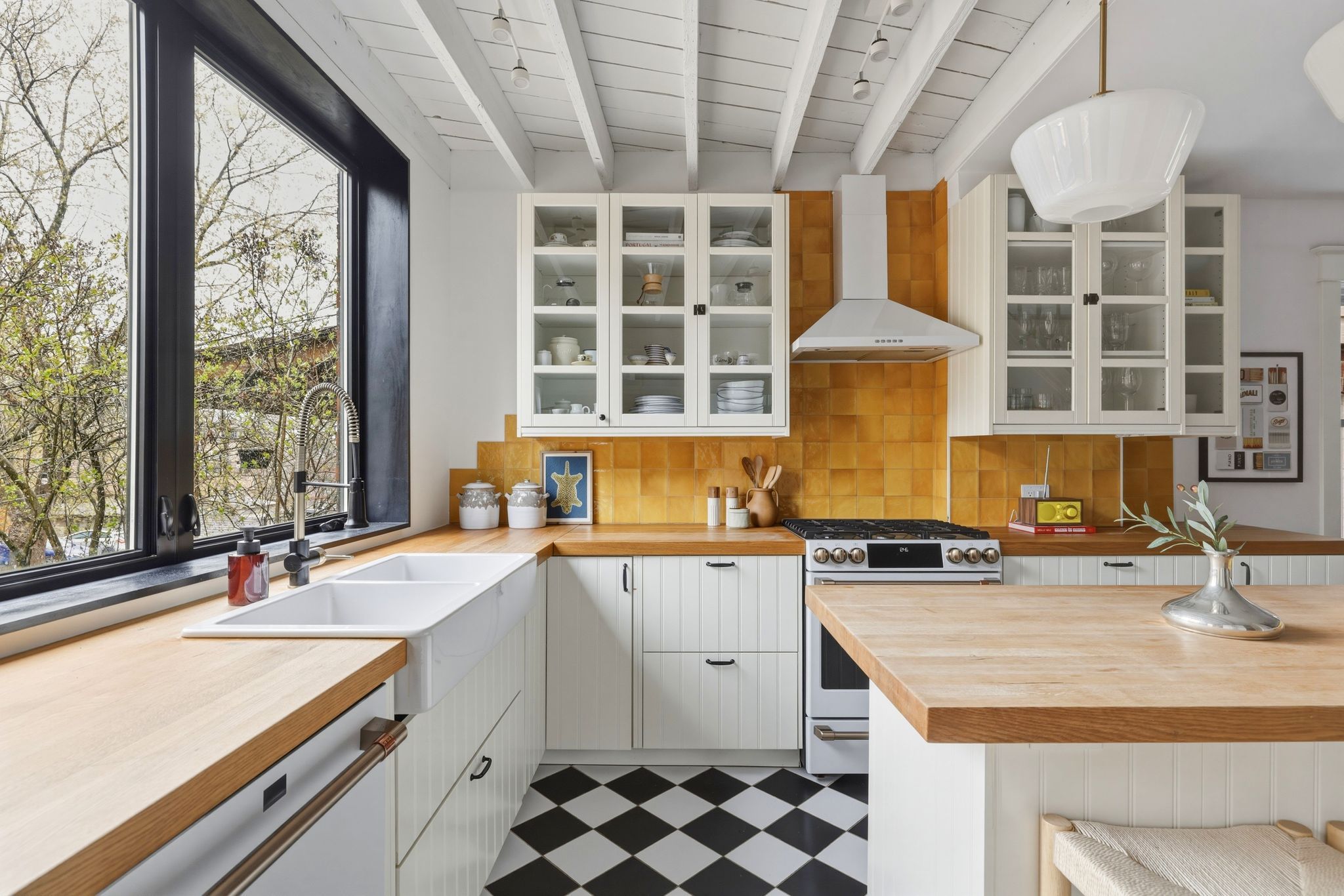 • Unique kitchen with a window that offers a beautiful seasonal view.