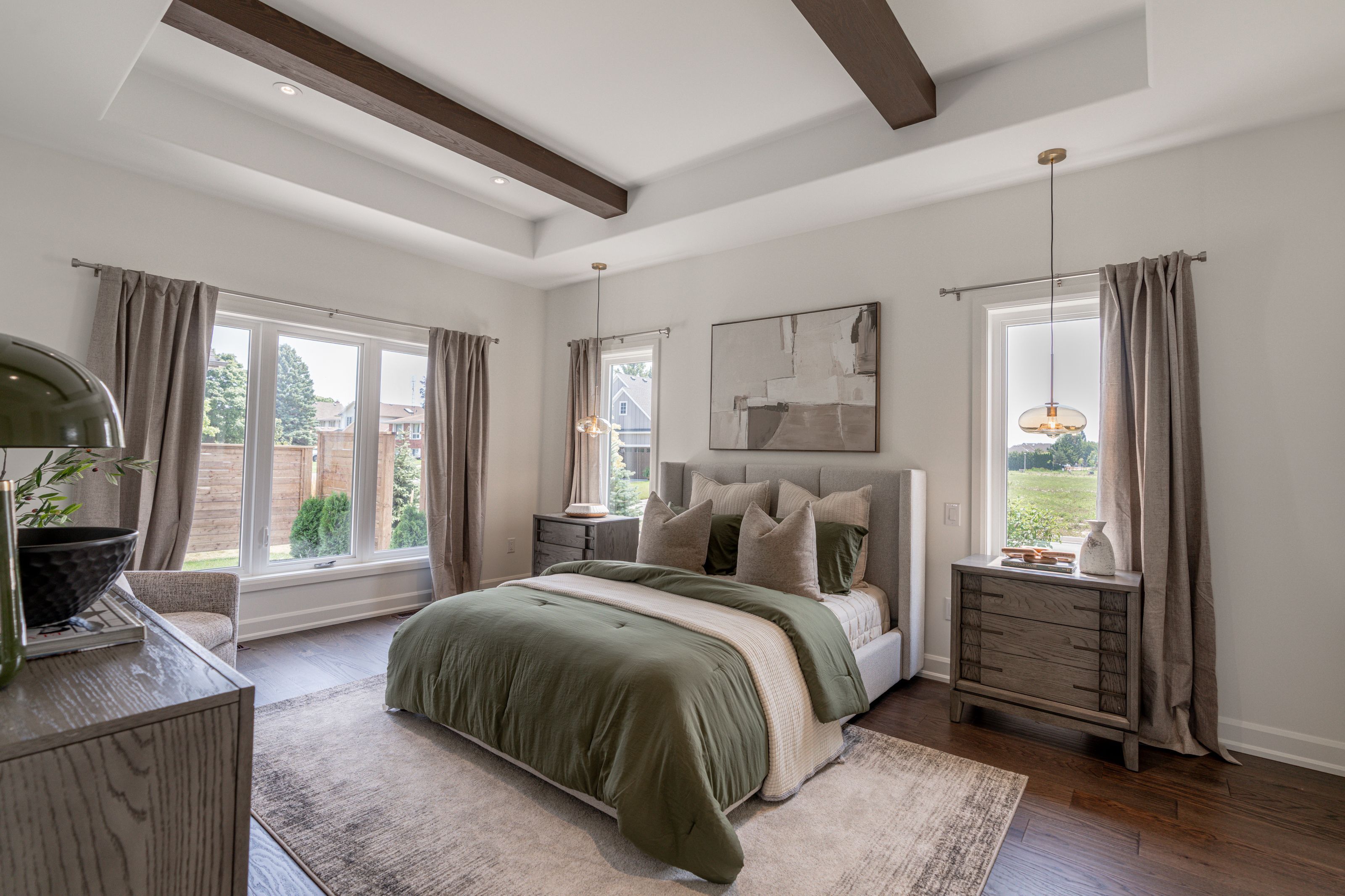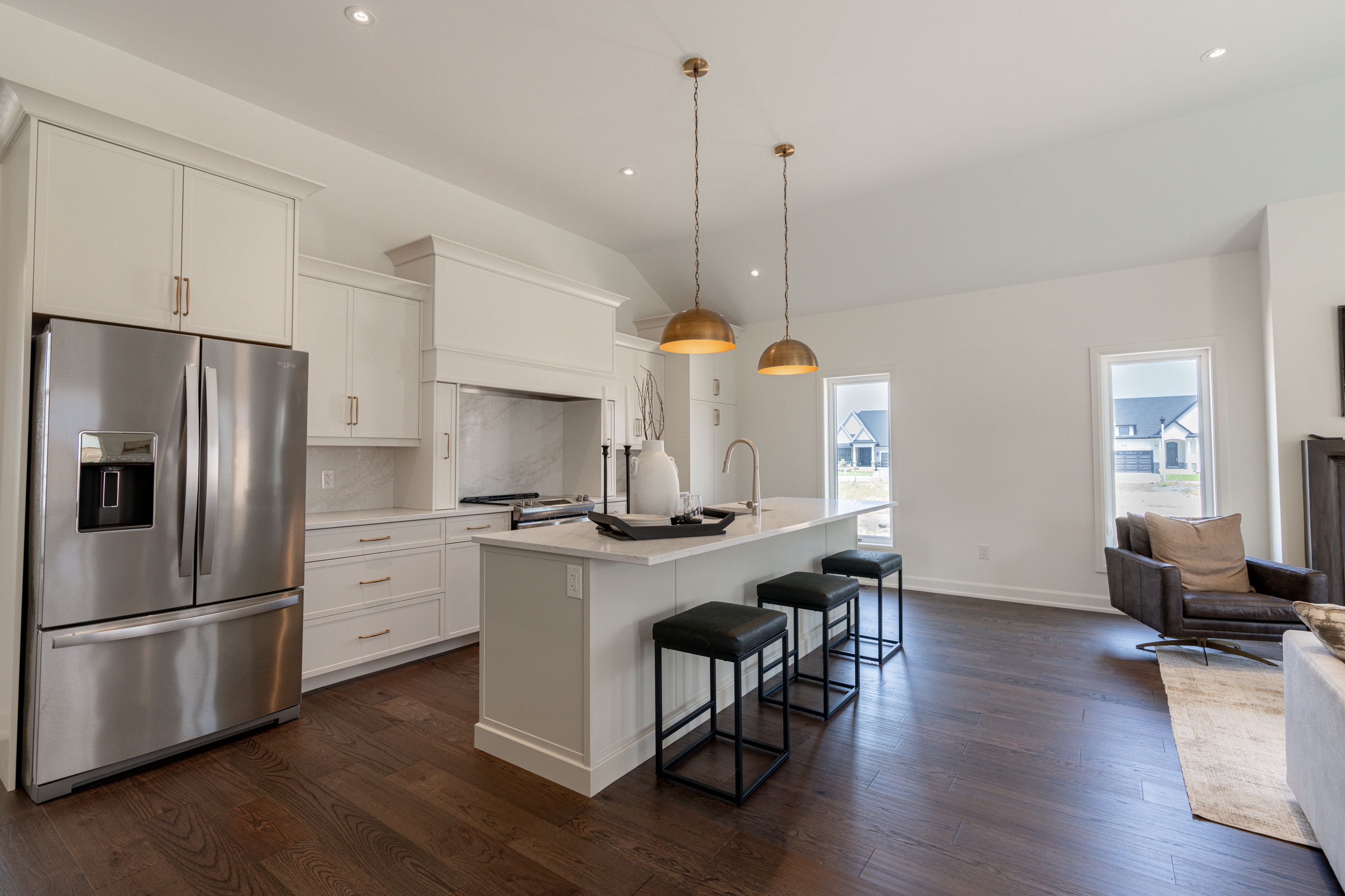 • Vaulted 11-foot ceilings and large windows create bright interior spaces.