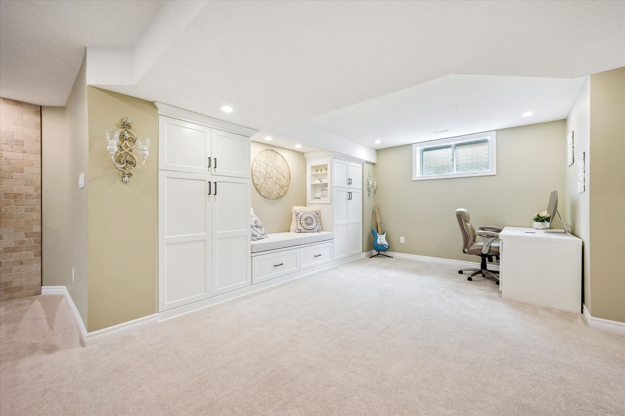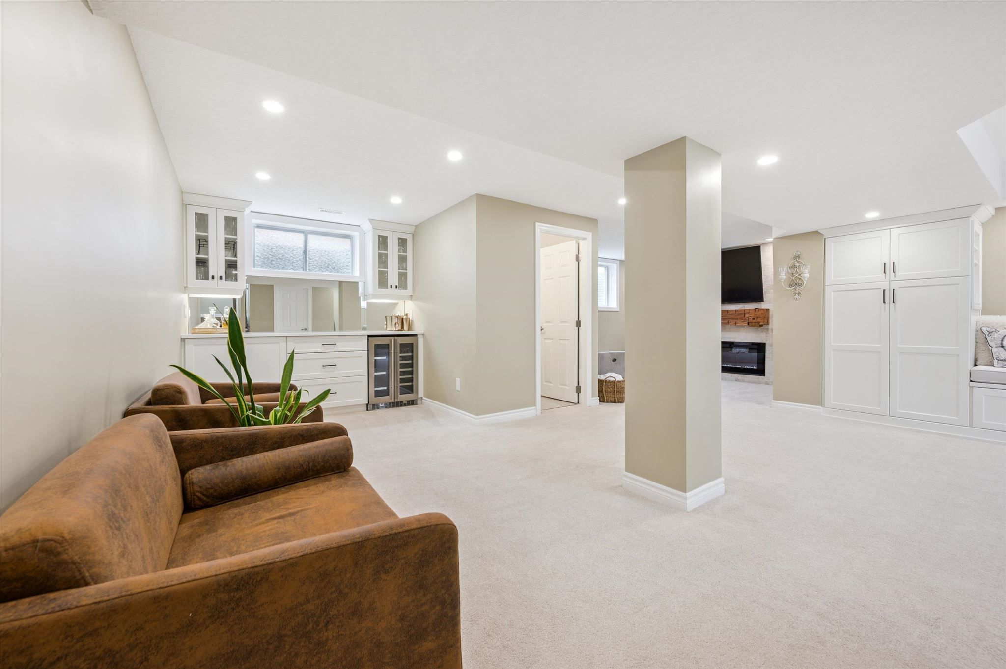• Fully finished basement with versatile living spaces and a custom dry bar.