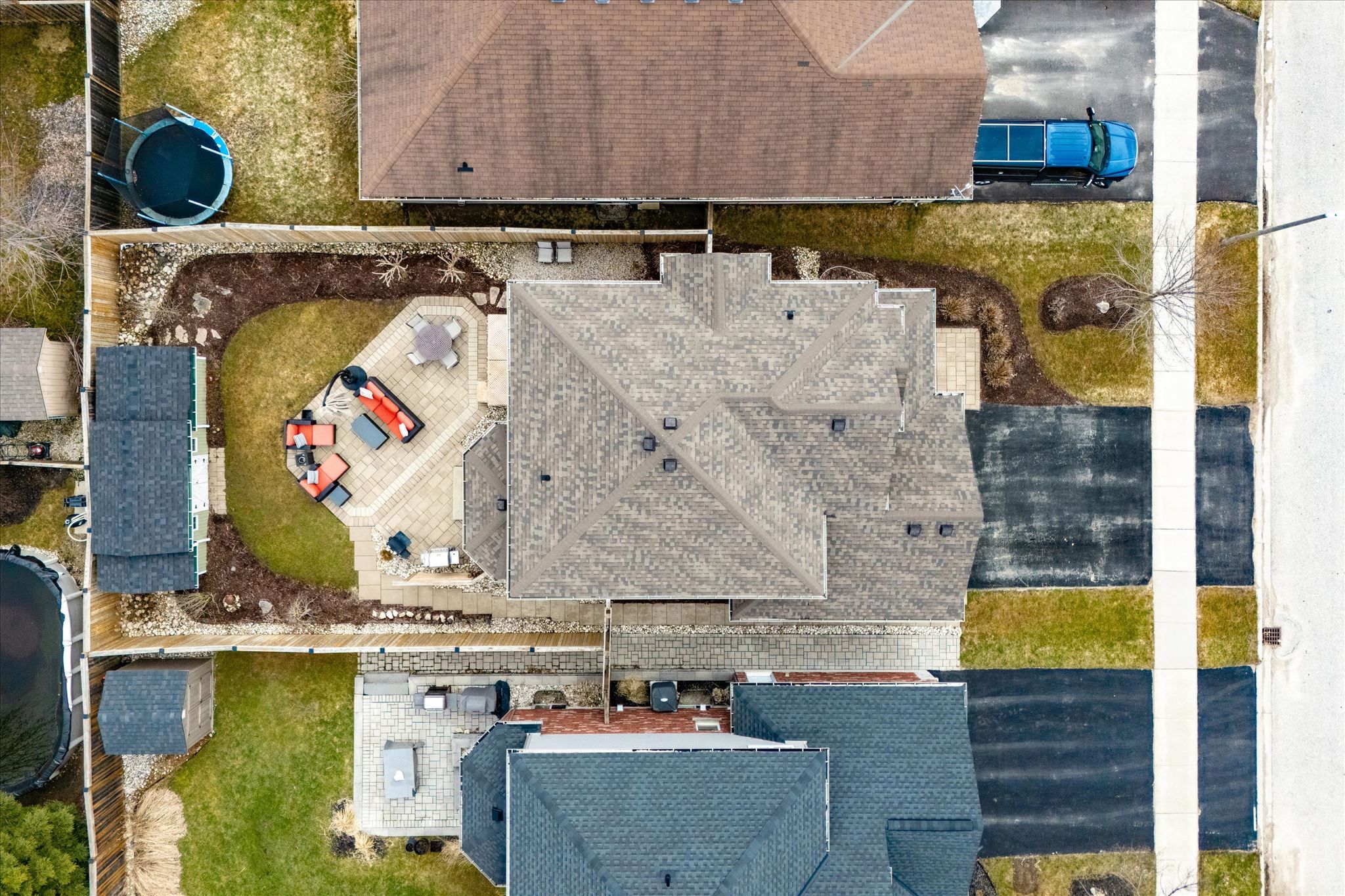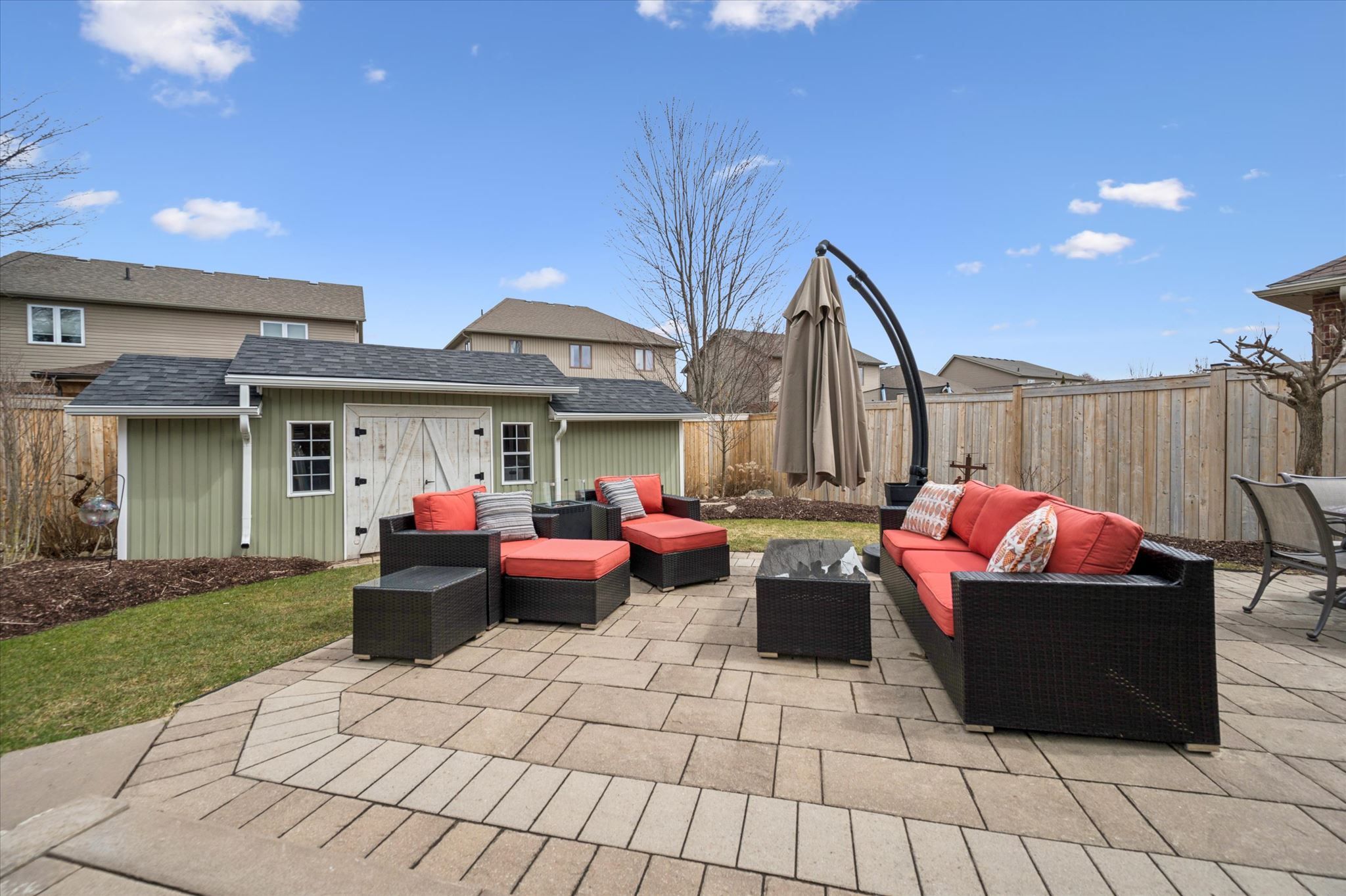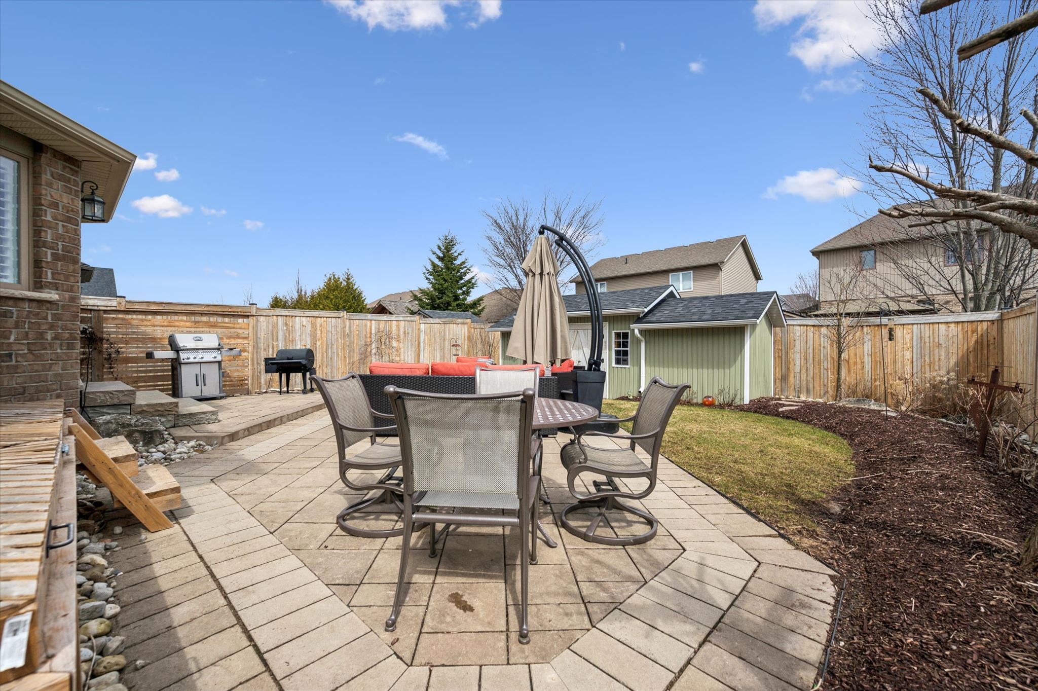 • Beautifully landscaped backyard with mature gardens and a large patio.