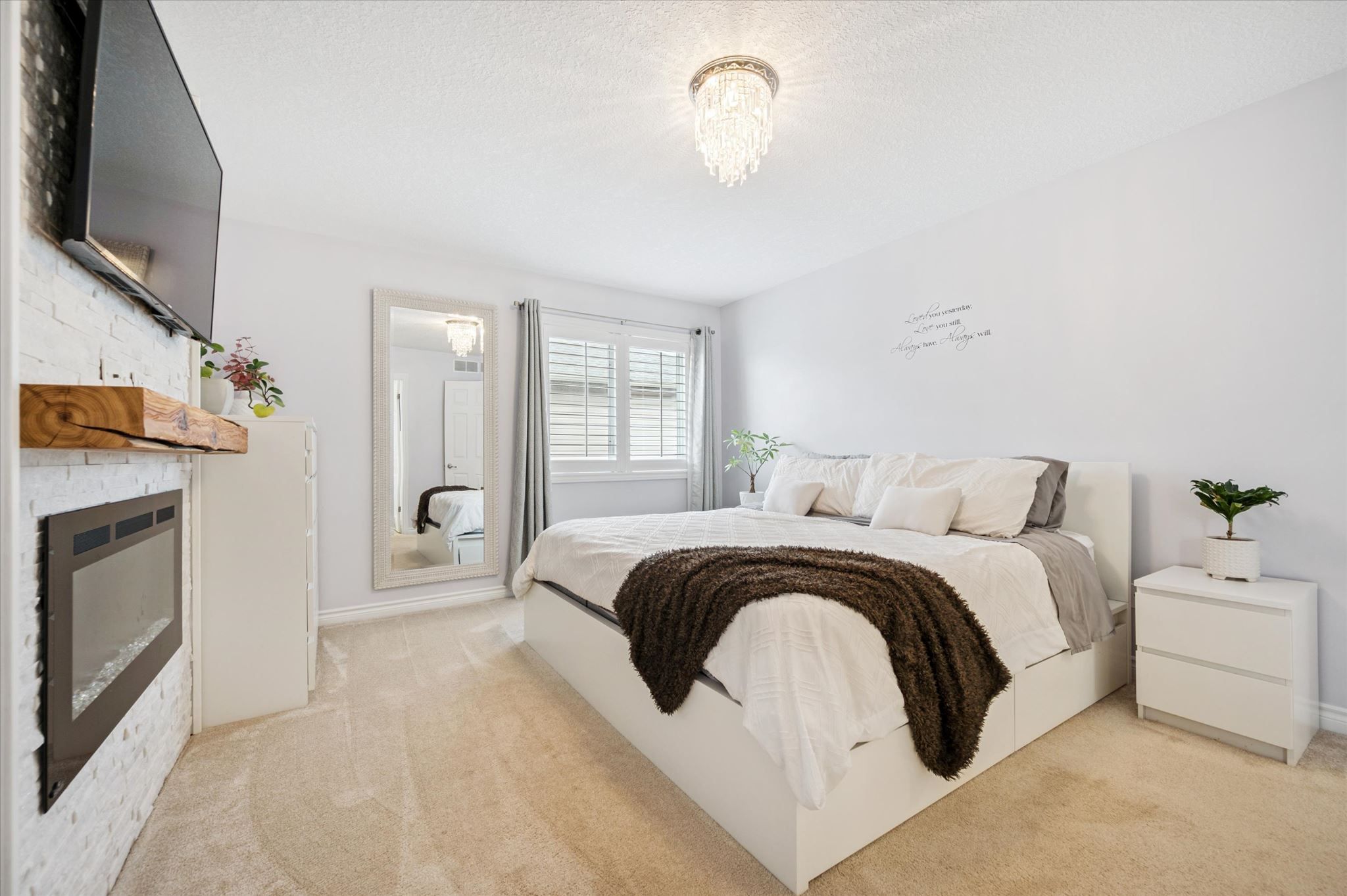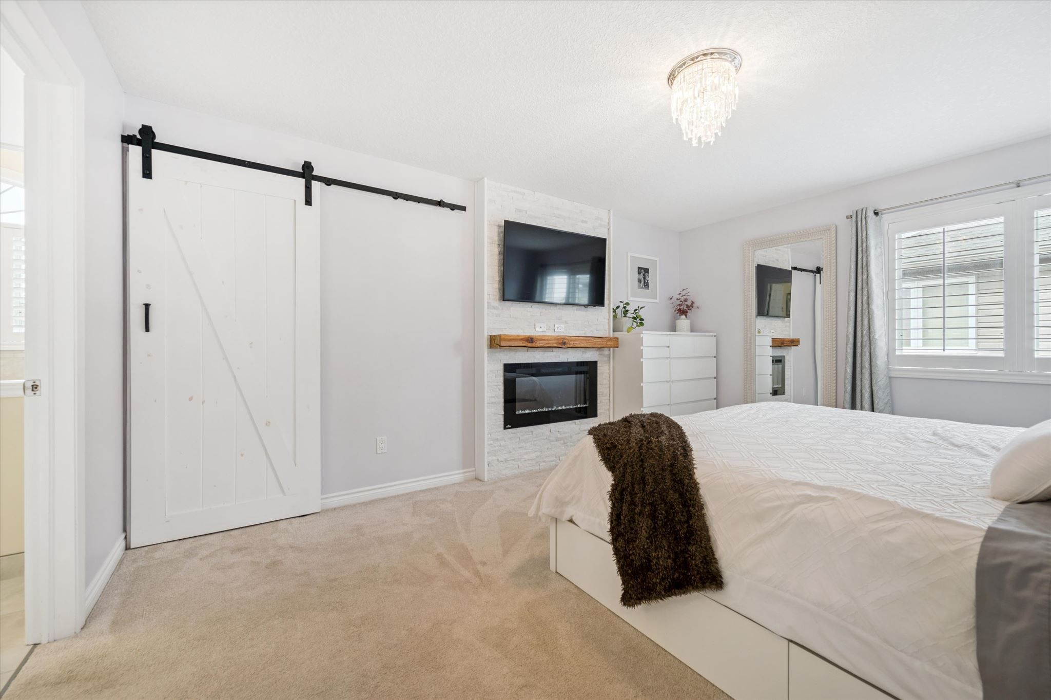 This beautifully upgraded home showcases thoughtful design, quality finishes, and exceptional attention to detail throughout all three levels. The front porch provides a welcoming and polished entry to the home. Inside, the main floor features updated carpeting and an enhanced kitchen with extended cabinetry and quartz countertops, offering both style and functionality. The heated garage adds year-round comfort and convenience. The fully finished basement is designed as a versatile and inviting living space. Highlights include a custom built-in dry bar, a powder room with heated floors, and a cozy tv lounge with an electric fireplace. Beautiful built-in shelving creates the perfect reading nook or children's play area, while an additional flex space can easily function as a home office or playroom. Upstairs, the primary suite has been upgraded to create a relaxing retreat. The renovated ensuite bathroom features heated floors, a soaker tub, single vanity, and frameless glass shower with body jets. The primary bedroom also includes a built-in walk-in closet system and an electric fireplace, adding warmth and ambiance. Both additional bedrooms have custom built-in closet systems for improved organization and functionality. Throughout the home, california shutters provide a timeless and elegant finish. Storage has been carefully considered with built-in cabinetry in the linen closet, front entry closet, and laundry room. Step outside to a beautifully landscaped backyard oasis, featuring mature perennial gardens, a well-maintained fence, and a spacious patio of approximately 250 sq. Ft., ideal for relaxing or entertaining. A large shed, equipped with power, measures 10'x22' and provides excellent storage for gardening equipment and seasonal items. Located in a sought-after neighbourhood with a playground, park, and walking trail just steps away, this home reflects pride of ownership with high-quality upgrades that enhance both everyday living and long-term value.