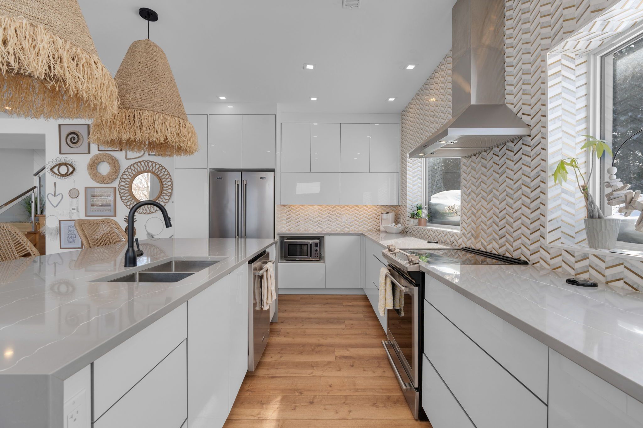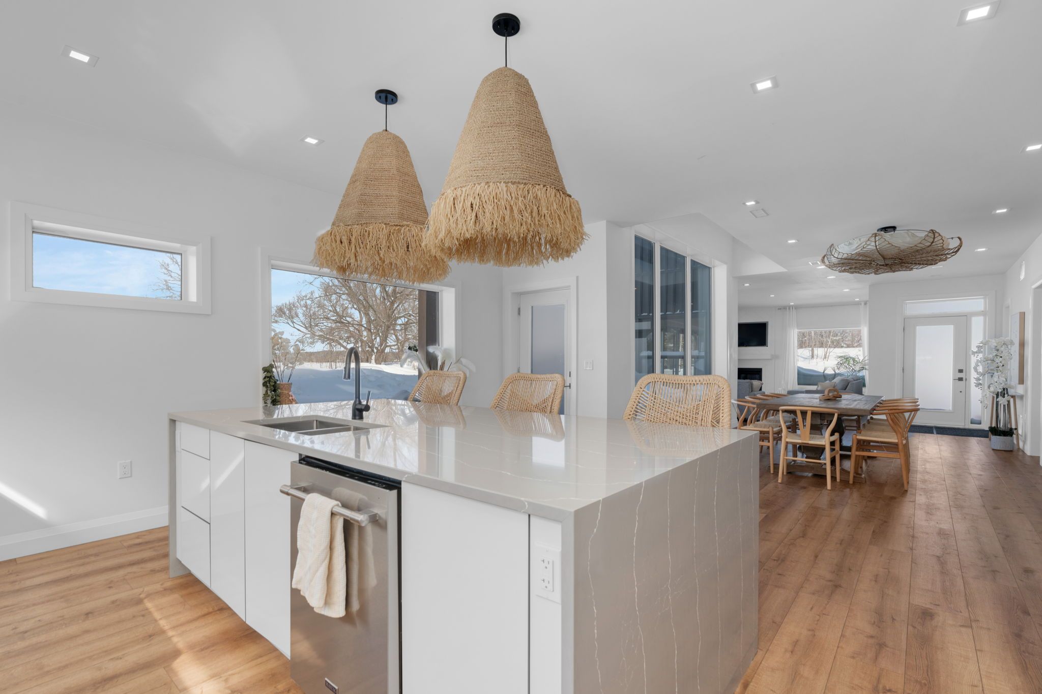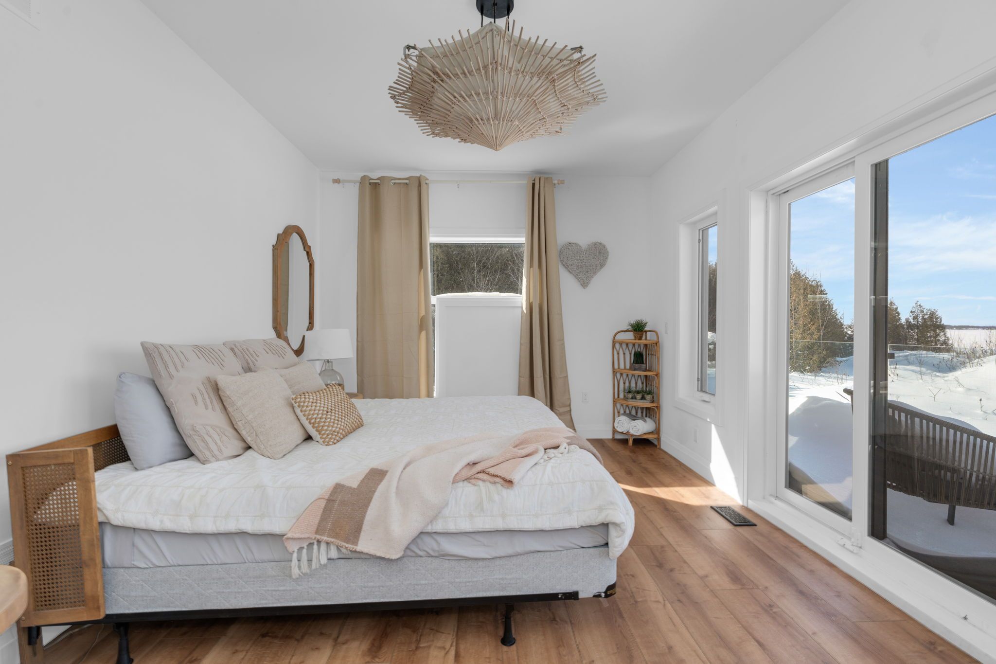 Stunning custom home with views of georgian bay at the end of dead-end street on 294-foot-wide lot! This modern cross bohemian home is straight out of a magazine on over 0. 5 of an acre. The main level is vast and open with 9-foot ceilings, a great room with plenty of windows and patio doors out to the wraparound interlocked patio and of course a cozy fireplace. The dining room has main to 2nd floor windows and will suit all of your family gatherings (as will the driveway for parking). Onto the oversized custom kitchen with tons of cabinet space, cambrian quartz waterfall island and countertops and sleek herringbone mosaic backsplash. There is also access to the yard from the kitchen which is perfect for barbequing or just hanging outside with loved ones. This floor finishes up with the main floor laundry and large storage area, powder room and walk-in closet. Up the open staircase and glass railing you reach the 2nd floor where the 9-foot ceilings continue (the home is icf). A flex space is perfect for the kids to get away from the parents or could be used as an office space with juliette down to below and a massive window facingthe vast waterfront. An ideal spot to watch all of the windsurfers and boats go by. Four large bedrooms on this level with vinyl and heated floors all with at least a double closet, if not two doubles. Two full bathrooms, each with 5-pieces (dual vanities) and two covered balconies (with composite decking) facing the water perfect for the pink and purple regular sunsets. Enjoy nature at your doorstep with tons of trees, the tay trail with over 18 kilometer's to explore or waubaushene beach and pier just a short walk away. 5 minutes to 400 hwy, lcbo and tim hortons, 30 minutes to barrie, 80 minutes to pearson airport. Waubaushene's quiet loving town will win you over. Painted with benjamin moore march 2025. Driveway 2025 (crusher run)