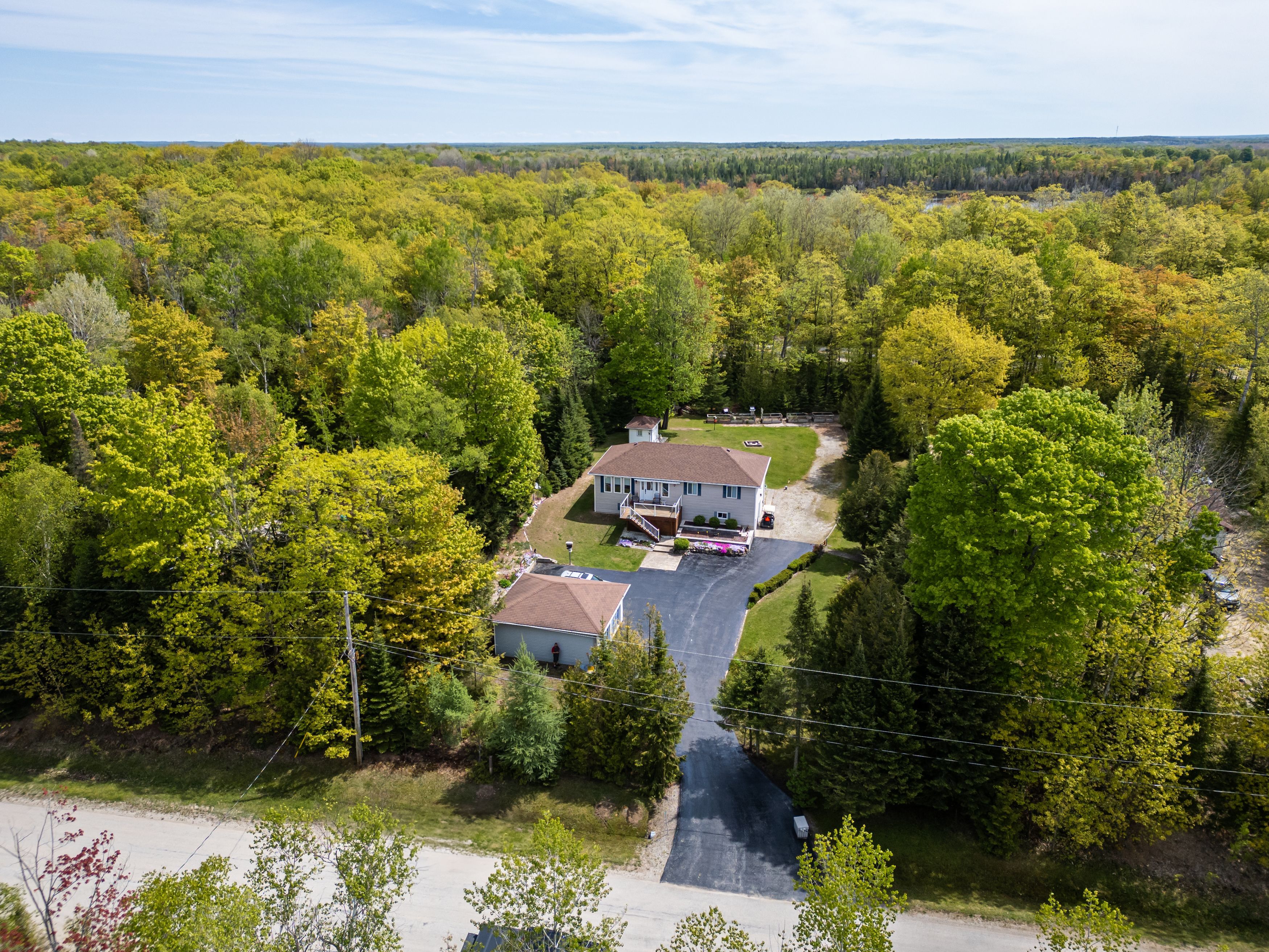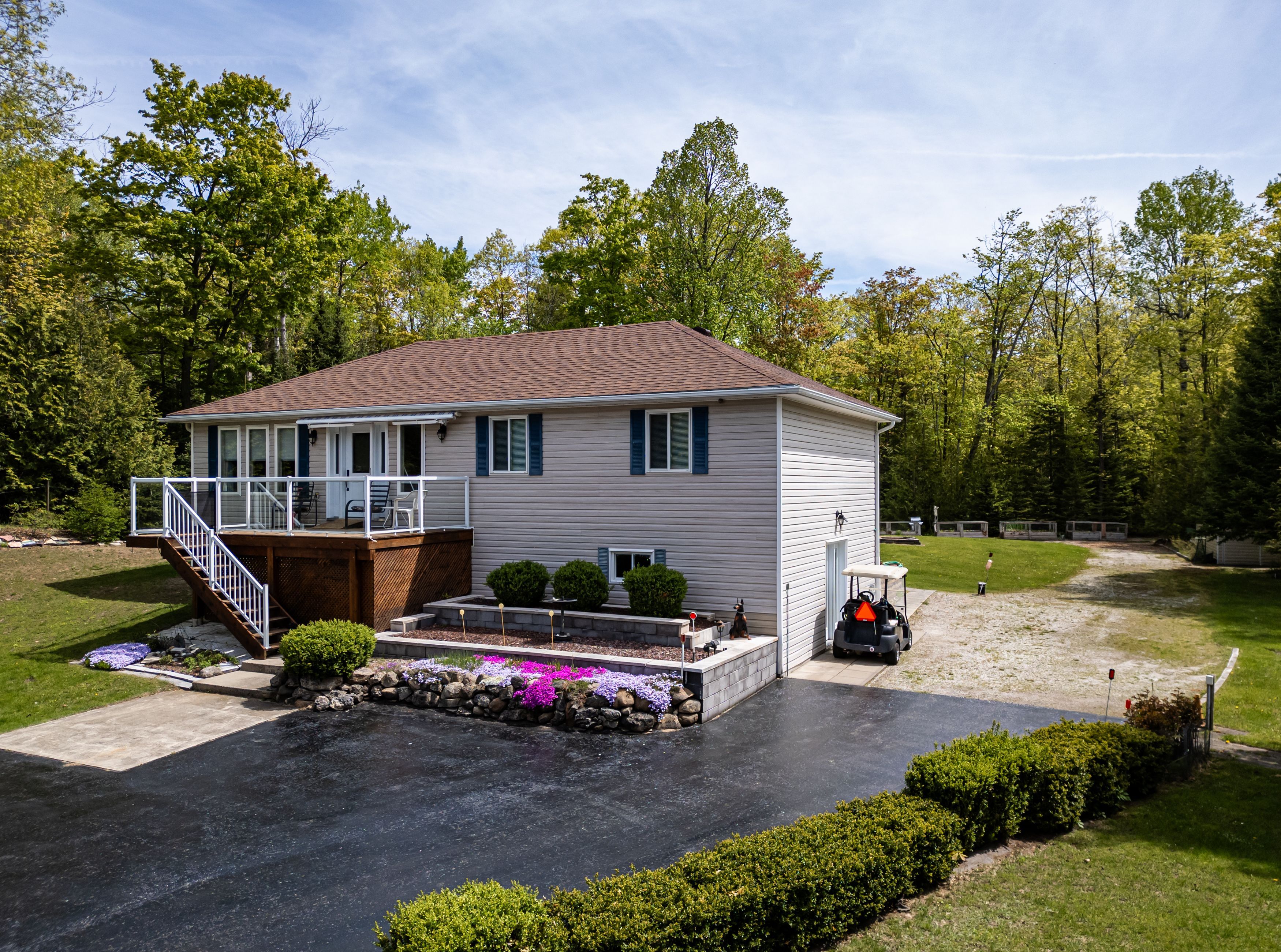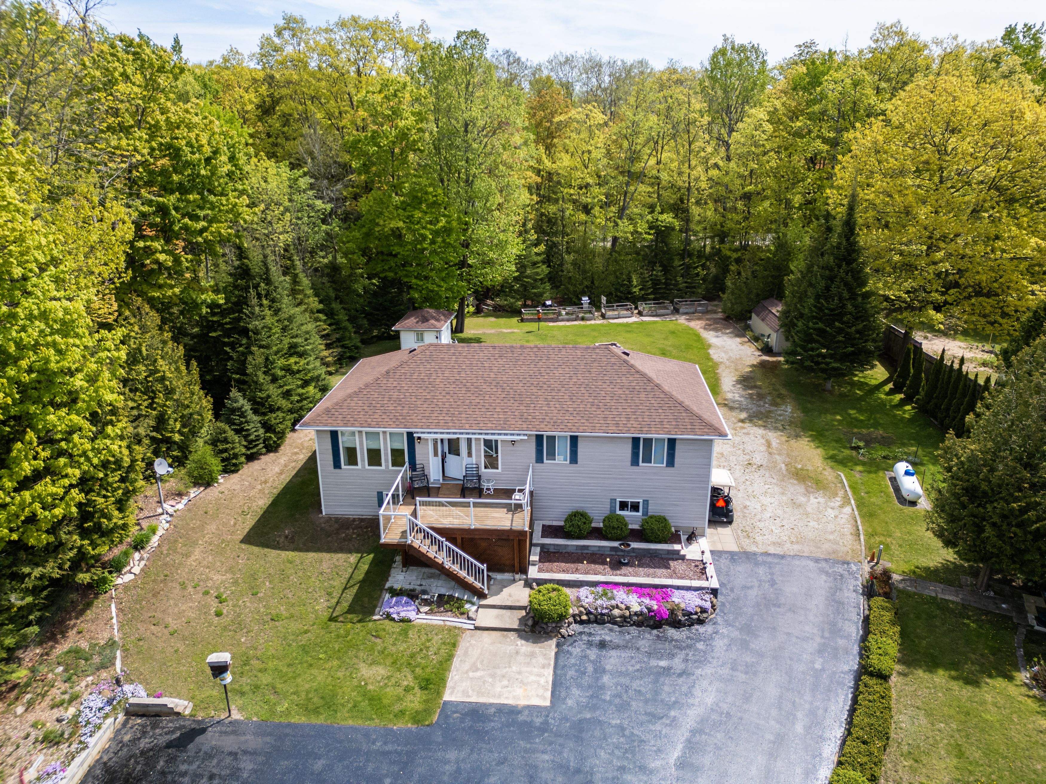Welcome to this lovingly maintained and beautifully landscaped 3-bedroom, 1. 5-bath home, ideally located in the peaceful lakeside community of oliphant. Perfect as a year-round residence or seasonal retreat, this property offers the perfect mix of comfort, functionality, and outdoor enjoyment just minutes from the shores of lake huron. From the moment you arrive, you'll notice the paved driveway leading to a detached two-car garage, complemented by two additional outbuildings perfect for storage, hobbies, or workshop space. Enjoy morning coffee on the front deck and unwind on the spacious back deck, both surrounded by mature trees and thoughtfully designed gardens. Inside, the home features a bright and welcoming interior with tile floors throughout the main living areas. The kitchen is equipped with a gas stove and newer appliances, making meal prep a breeze. The open-concept layout flows easily into the dining and living areas, where the cozy atmosphere makes you feel right at home. All three bedrooms are generously sized, offering plenty of space for family or guests. The main bathroom includes a convenient walk-in shower, and there's an additional half bath for added comfort. The walk-out lower level adds significant living space with a large rec room ideal for entertaining or relaxing and a versatile bonus room that can serve as a home office, guest room, or extra storage space. For added convenience after a day at the beach or gardening, an outdoor shower is tucked around the back. Comfort is ensured year-round with central air conditioning and a propane furnace. Ideally located on a quiet street and just a short drive to wiarton, sauble beach, and a variety of outdoor recreation options including boating, fishing, and hiking, this move-in ready home in oliphant is the perfect place to create lasting memories.