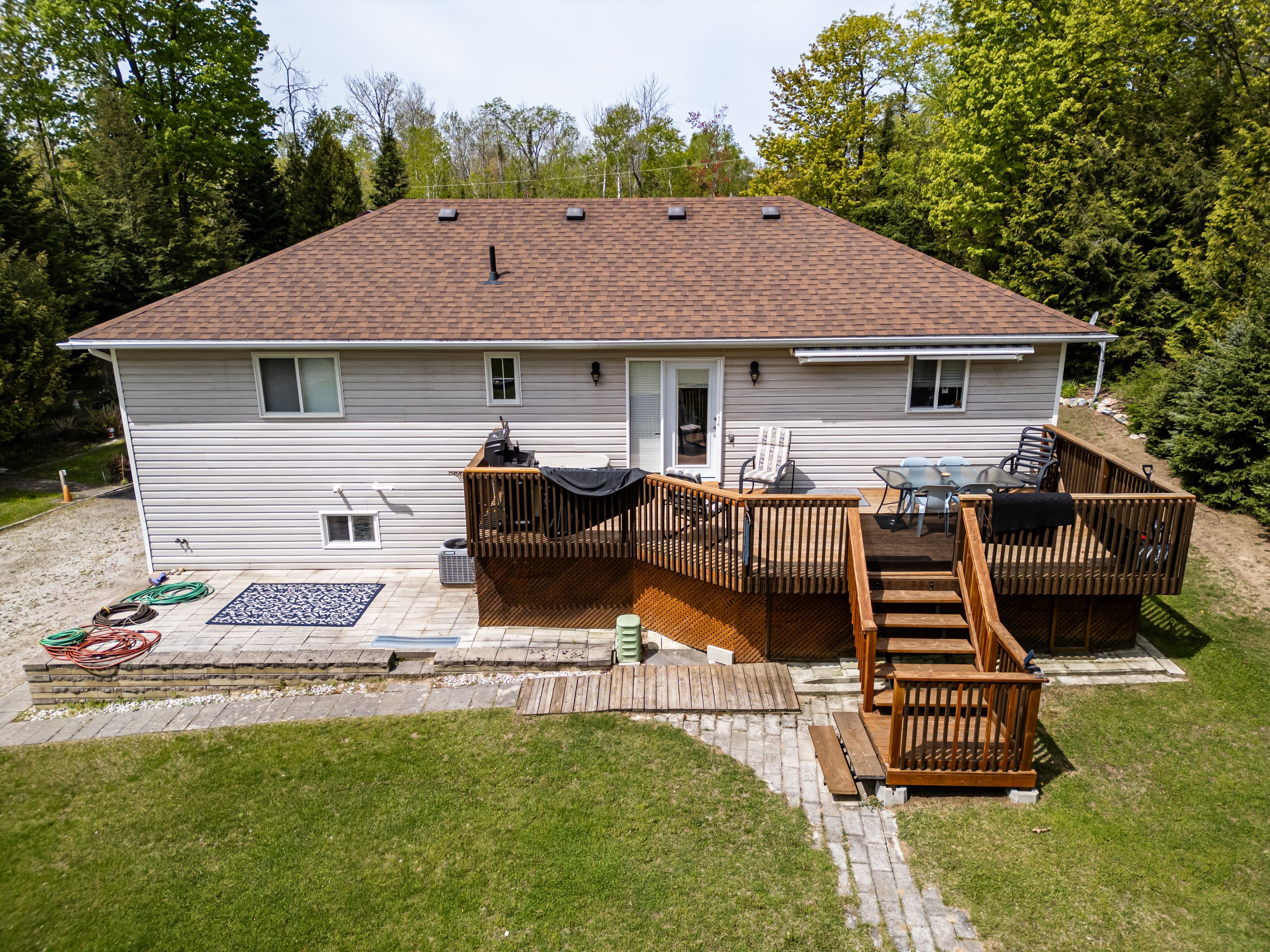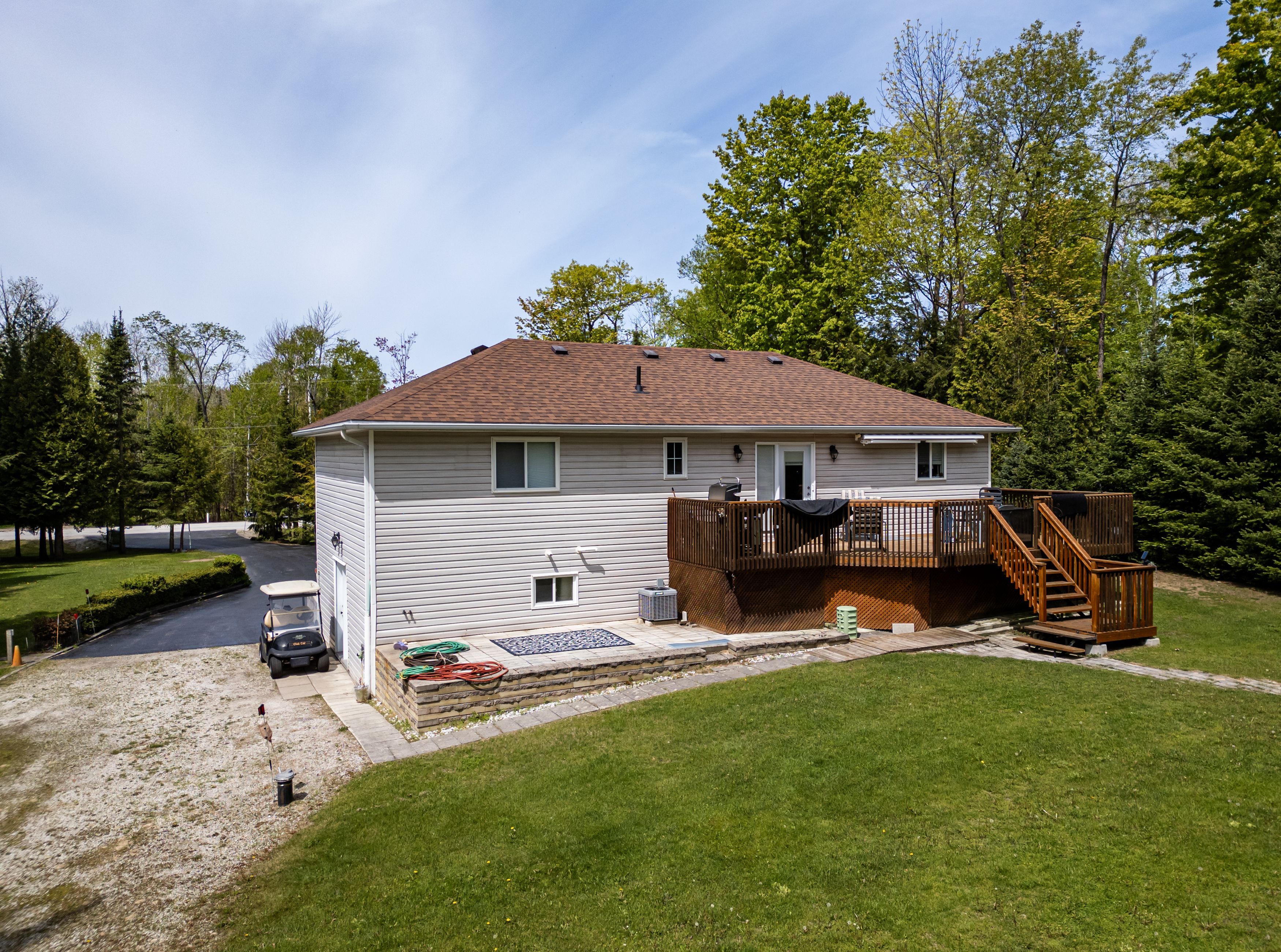 • Large back deck, perfect for outdoor enjoyment and relaxation.