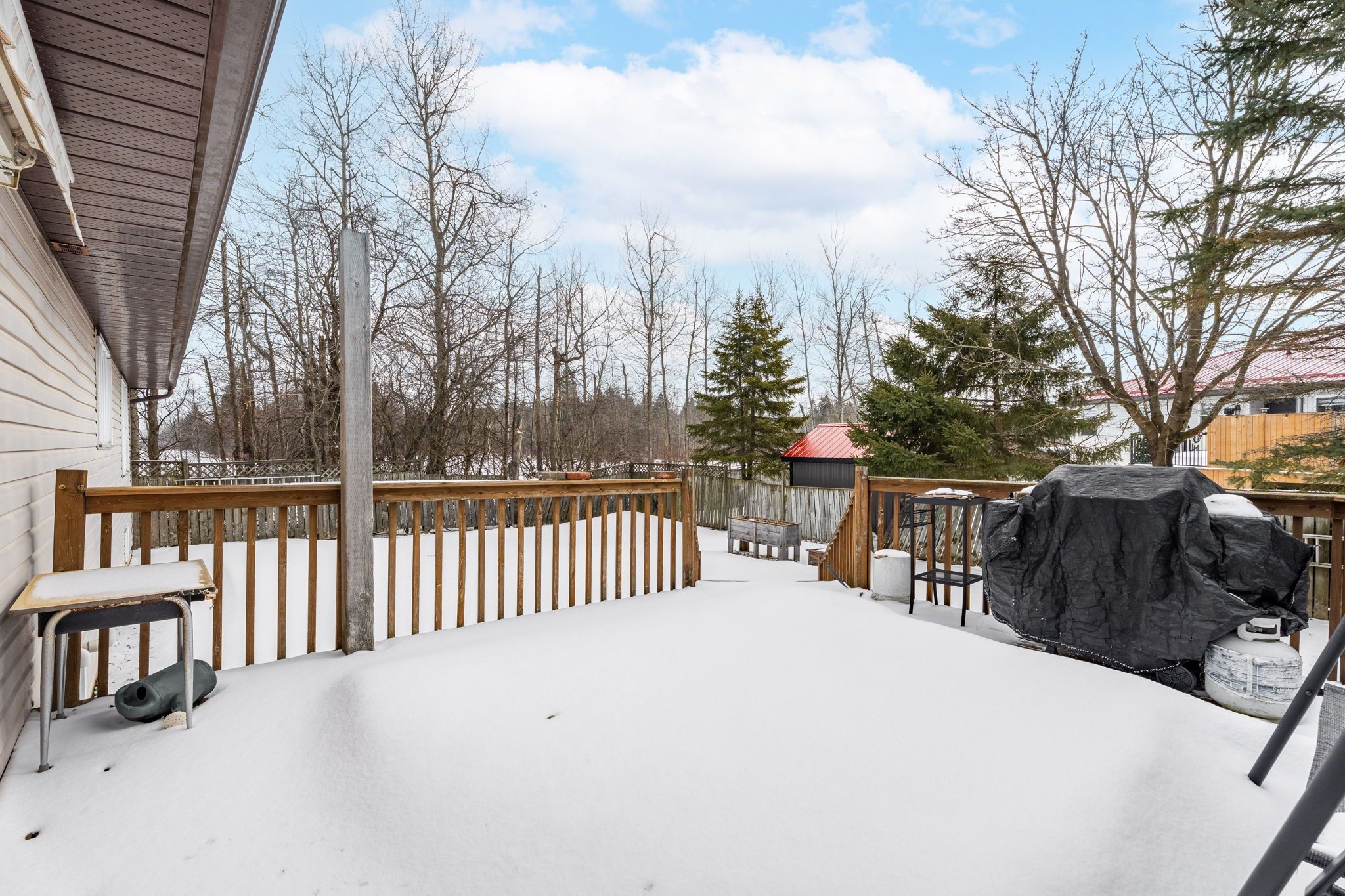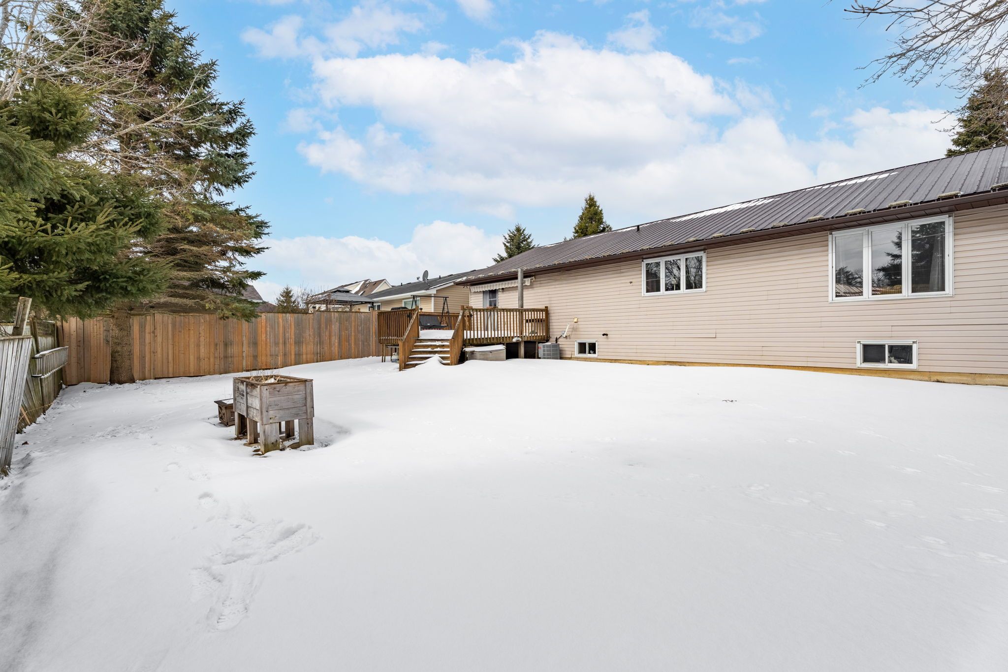 • Fenced backyard with a deck, perfect for summer gatherings and relaxation.