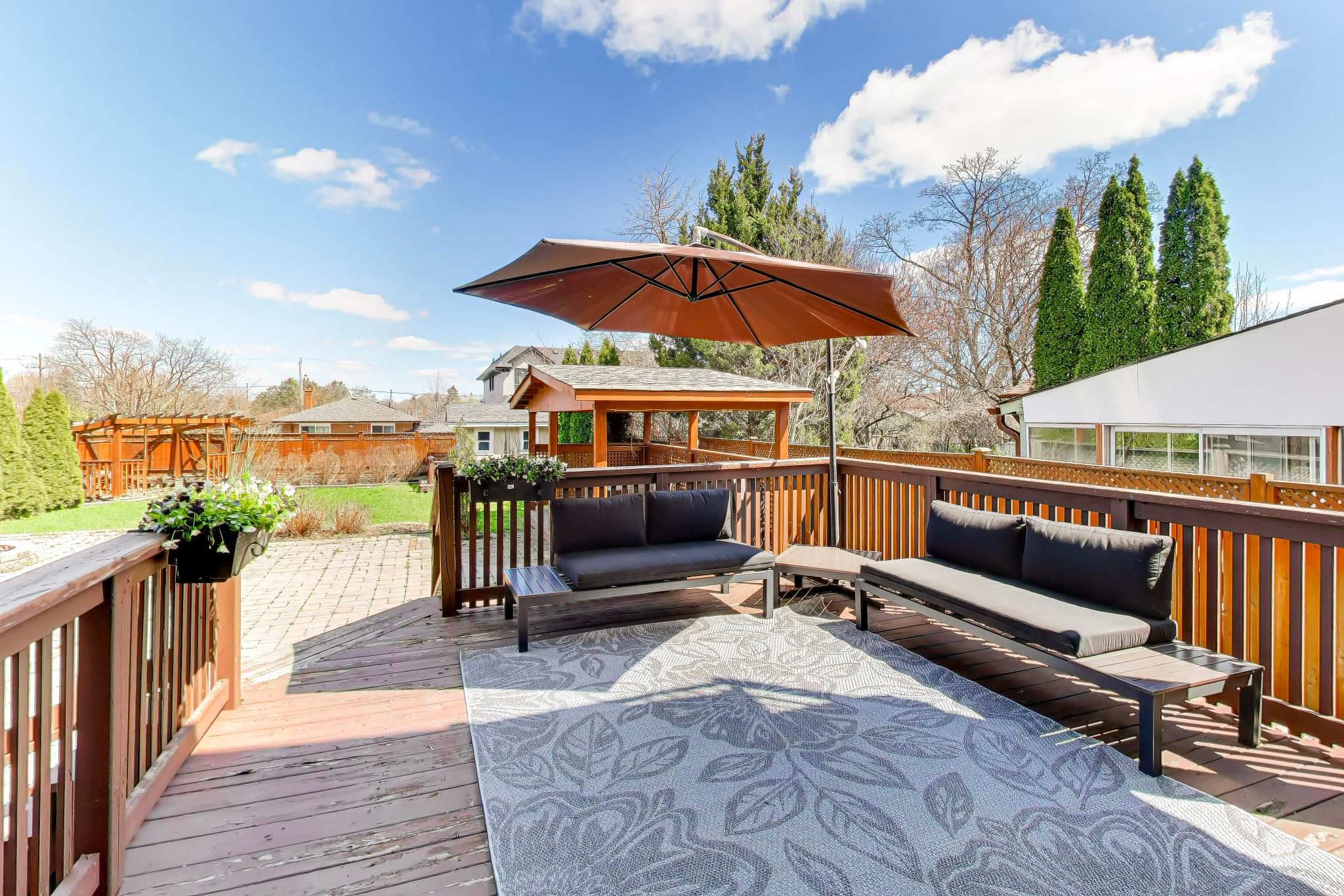 • Custom-built deck and upgraded backyard for relaxed outdoor living.