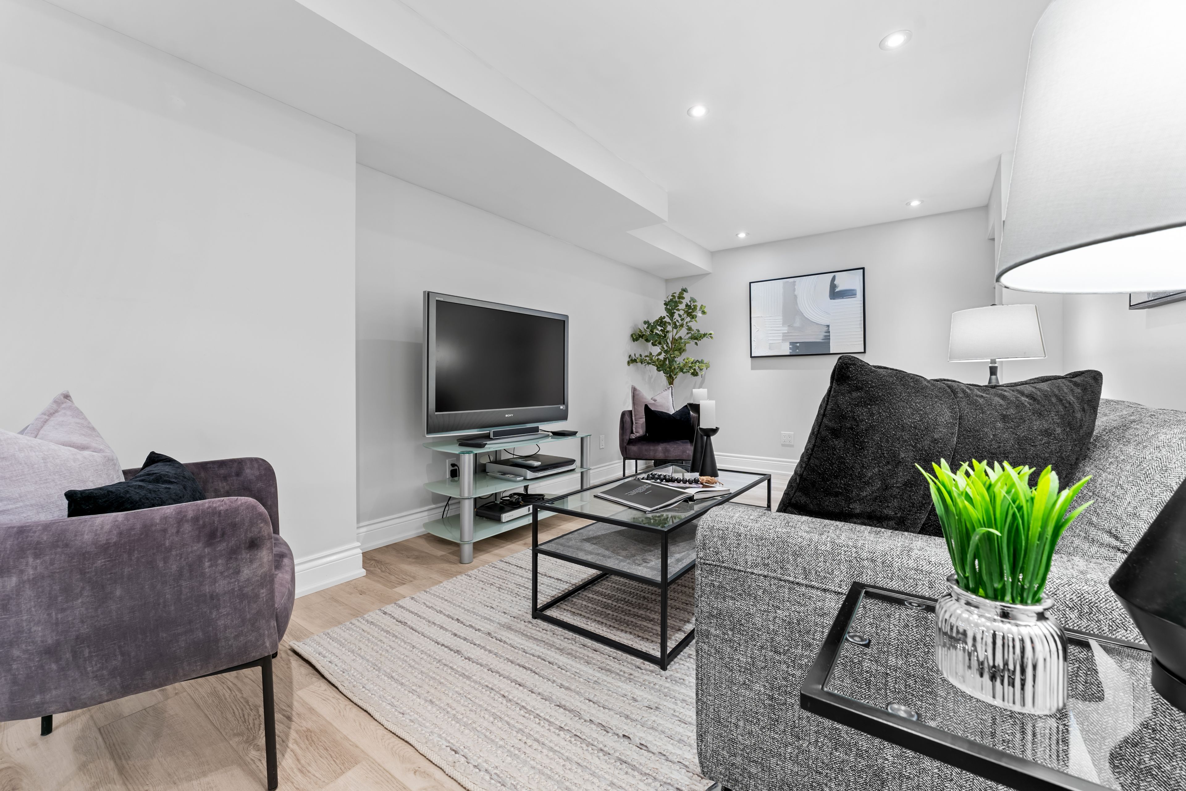 • Finished basement adds versatility with recreation room and flex space.