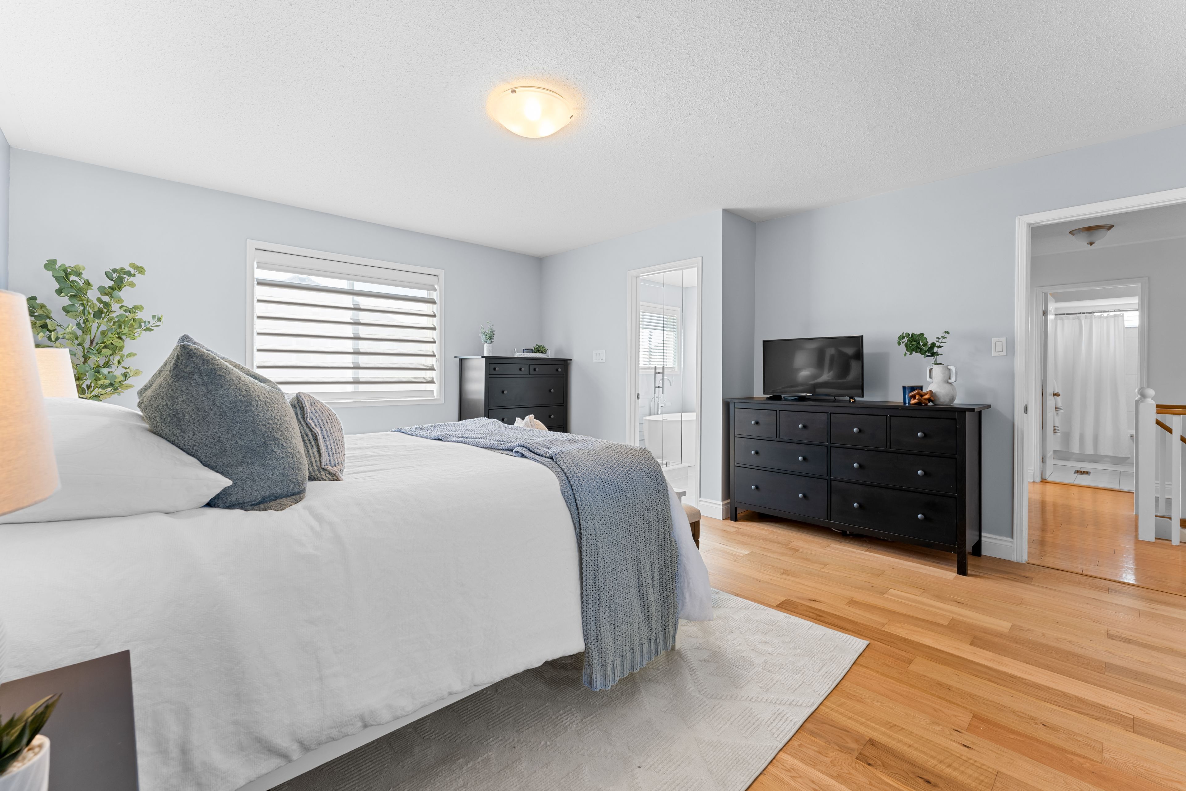 • Spacious kitchen with quartz countertops and eat-in area for gatherings.