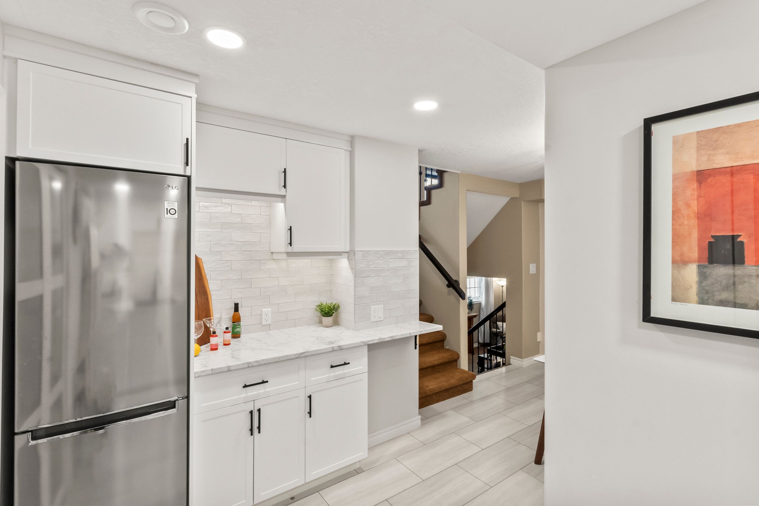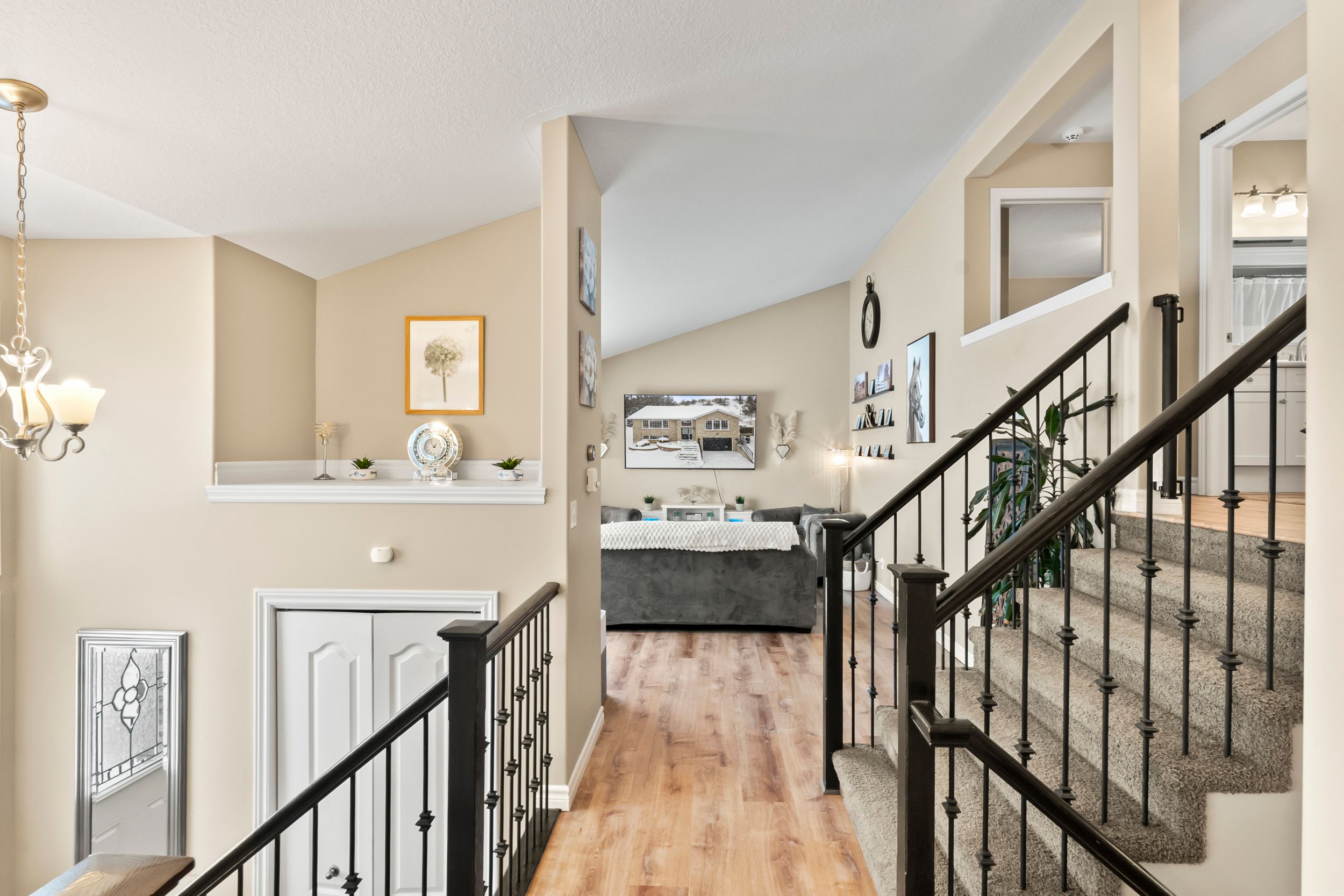• Spacious landing area welcomes guests and provides organizational space.