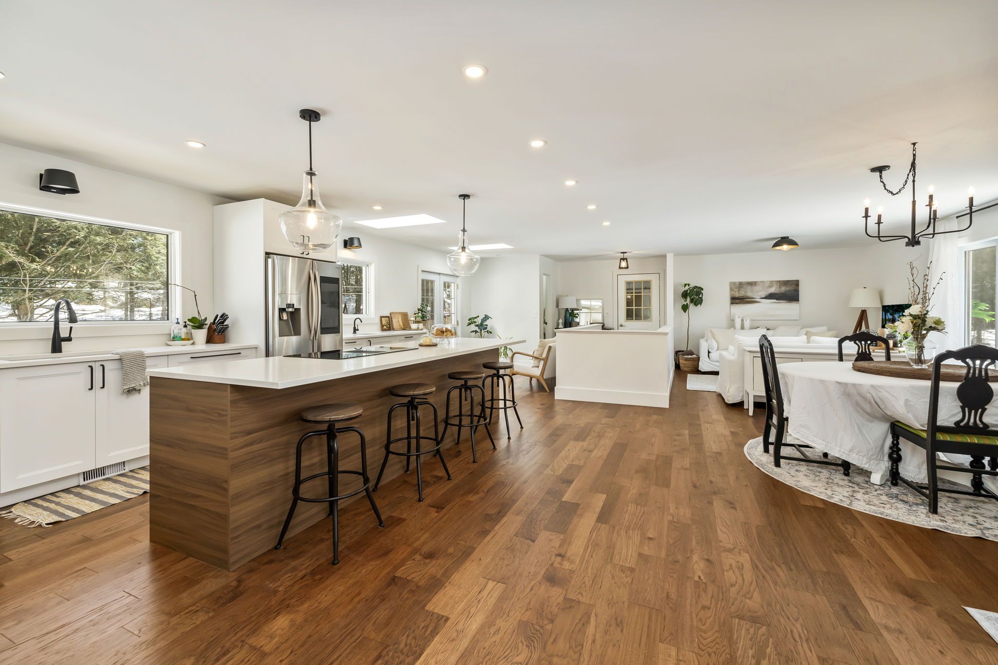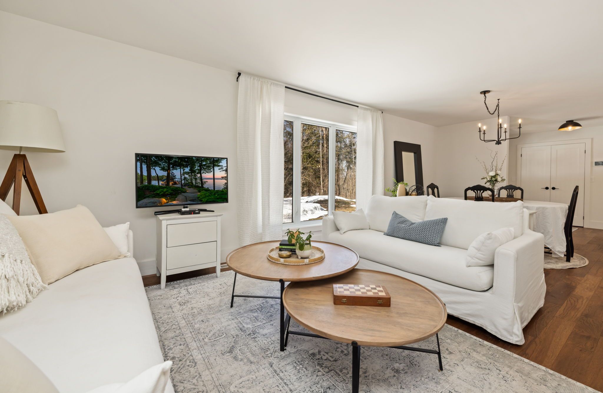 • Bright, open-concept bungalow set on 2.8 acres of tranquil, wooded land.