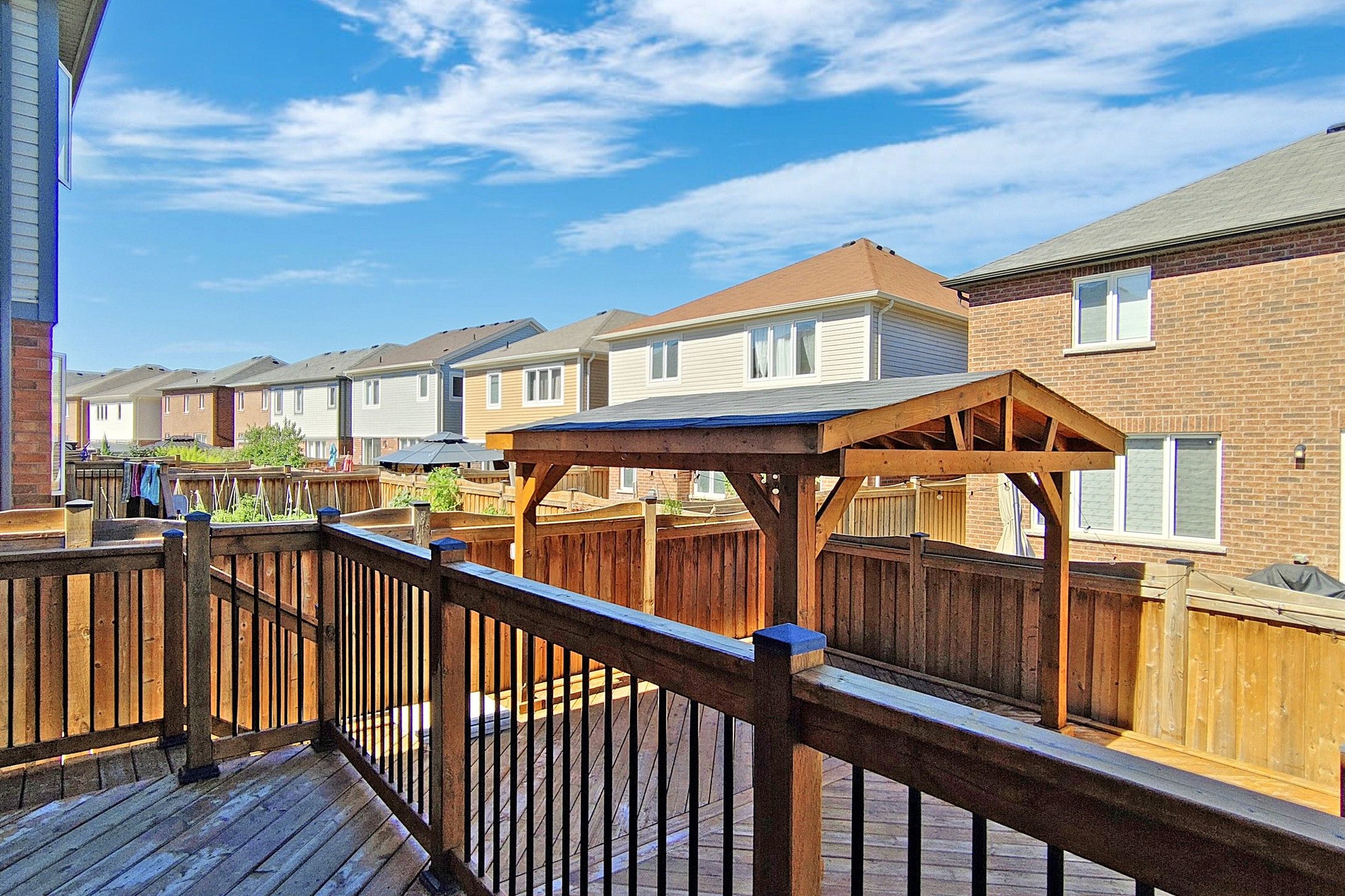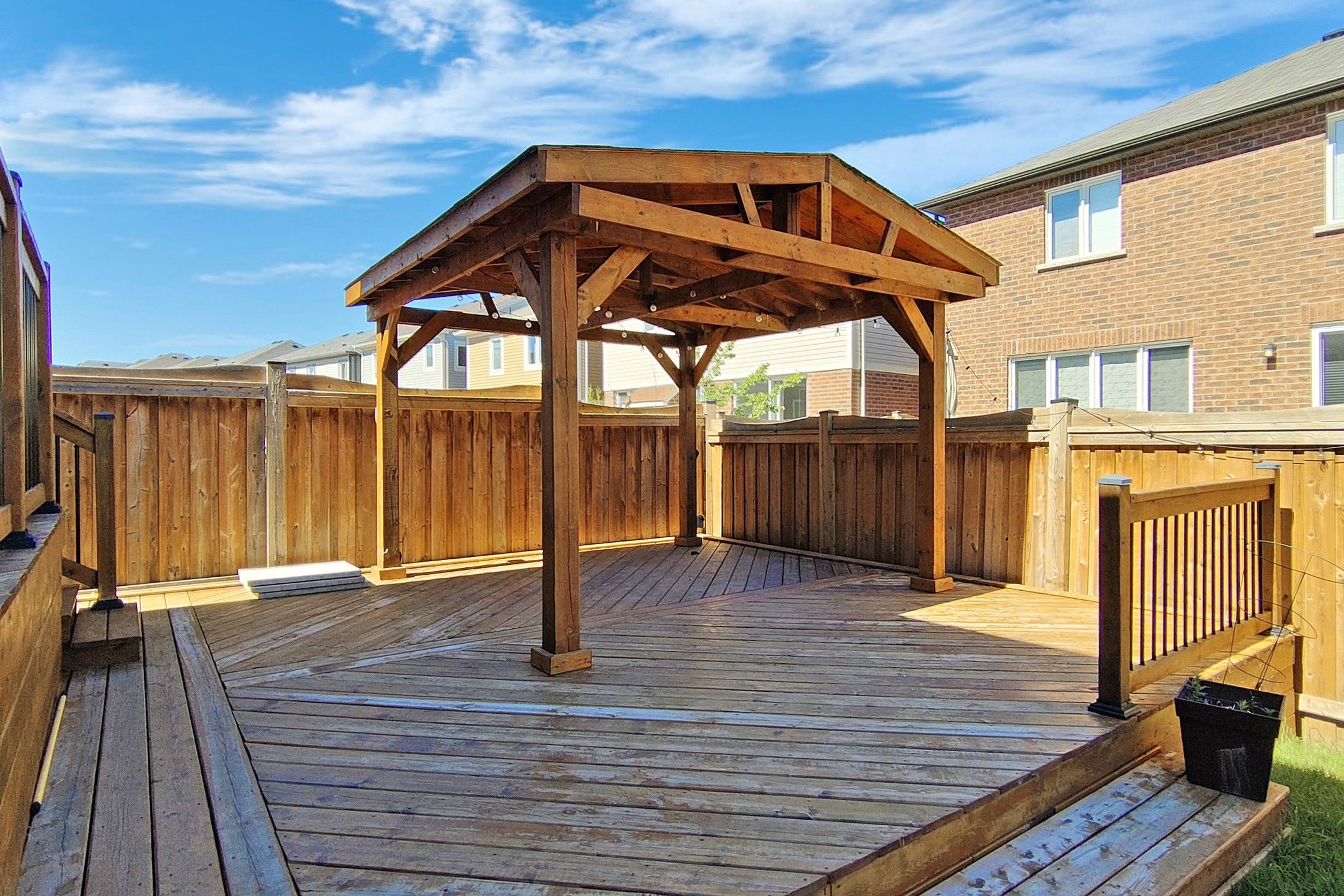 • Multi-tiered deck and gazebo in the spacious backyard for relaxation.