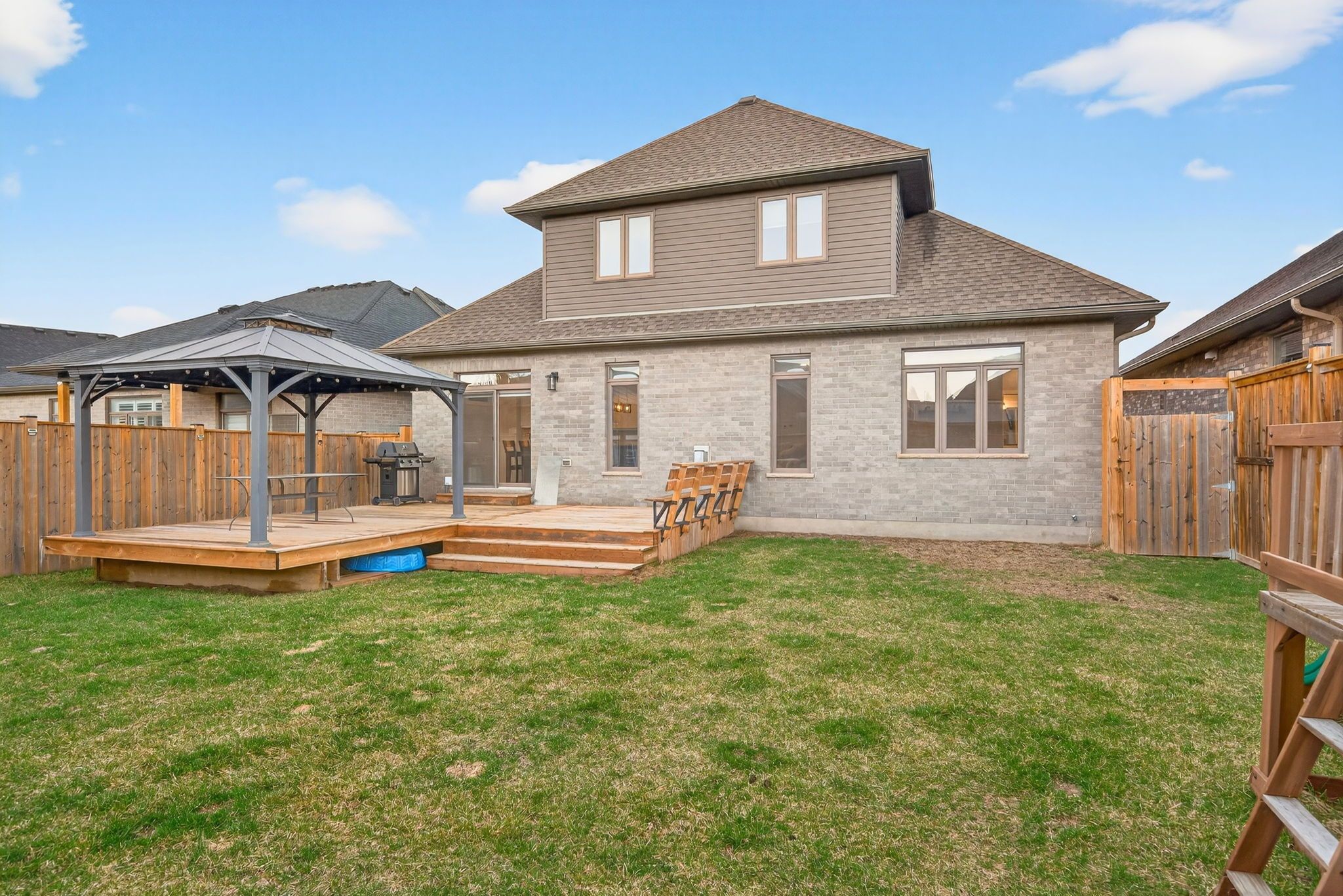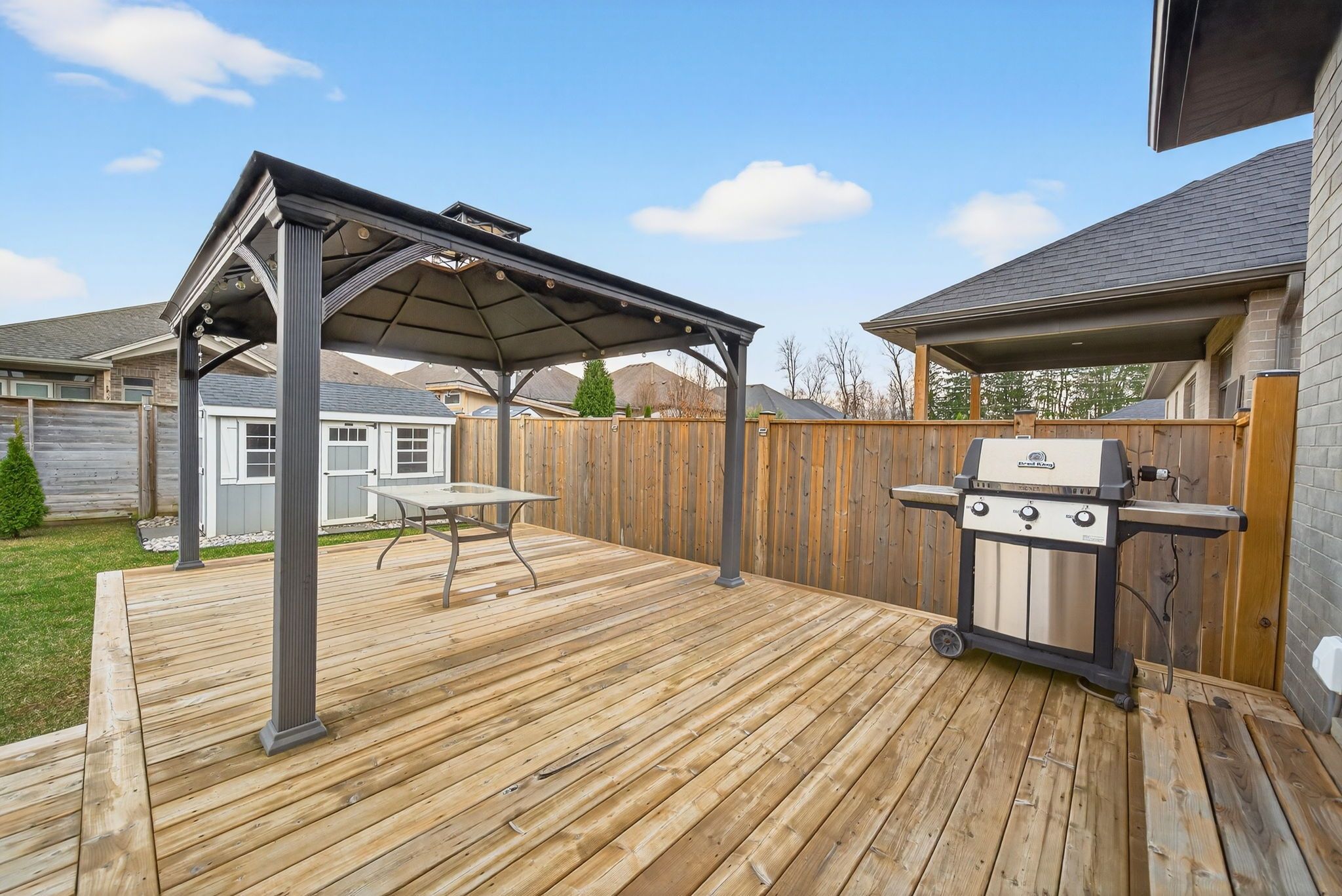 • Large deck and fenced backyard perfect for summer gatherings.