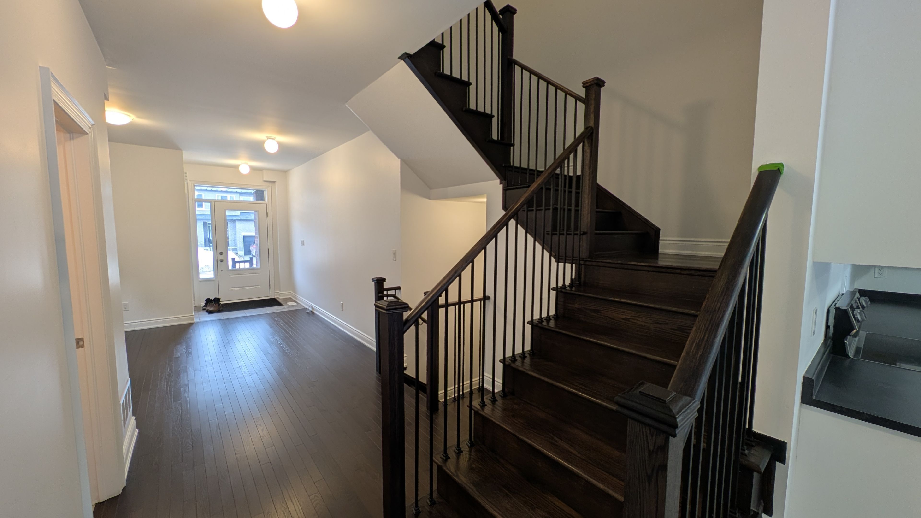 Price to sale for move in ready freehold townhouse by baycliffe communities a rare end unit townhome offering the space and feel of a semi- detached home, with over 2,189 sq. Ft. Of thoughtfully designed living space. Situated on a spacious end unit lot, this home features a sleek brick exterior, a covered front porch, and additional windows for an abundance of natural light and added side yard space. Inside, you'll find a bright open-concept layout with upgraded tile and hardwood flooring, elegant wrought iron spindles, a modern white kitchen complete with upgraded cabinetry, stainless steel appliances, a large island, cozy breakfast area, and sleek, modern finishes. Just off the kitchen is a spacious sunken laundry room with a convenient sink and an upgraded door with direct access to the garage-a smart and functional feature that makes, and a cozy gas fireplace. The spacious primary suite includes a large walk-in closet, double vanity, soaker tub, and a glass-enclosed tiled shower. Convenient main floor laundry and an unfinished basement provide flexibility for future use. Located just minutes to the world's longest freshwater beach, with a short drive to collingwood and blue mountain. Ideal for families and/or investors, surrounded by schools, walking trails, and everyday amenities. Costco, and hwy