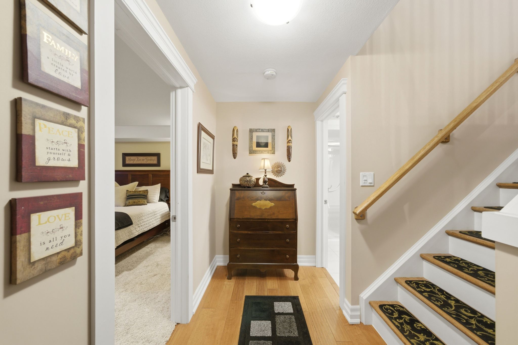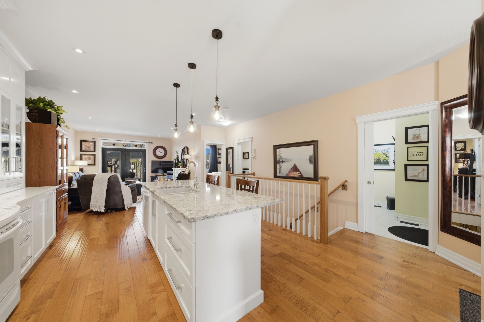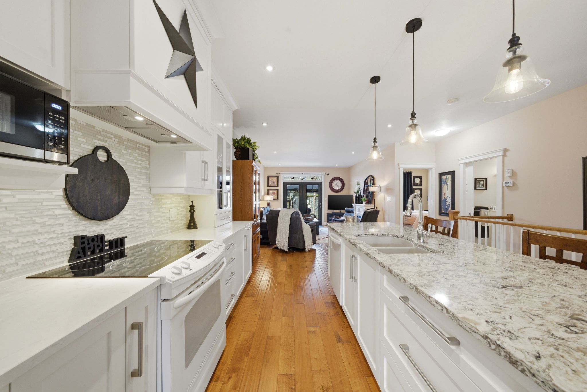 Experience refined living in this thoughtfully upgraded residence, where comfort meetstimeless design. A concrete driveway and welcoming front entry set the tone, while inside, 9-foot ceilings and hand-scraped hardwood floors create an elevated main-level ambiance. The spacious dining room is ideal for elegant entertaining, enhanced by stained glass accentsthat add warmth and sophistication. At the heart of the home, the beautifully appointedkitchen features a new fridge and dishwasher, a flush-mount stove and oven, pot lighting, anda generous walk-in pantry. It flows seamlessly into the living room, where additional potlighting and a sleek electric fireplace create a cozy yet modern atmosphere. The main floor offers exceptional convenience with a dedicated laundry room and direct walk-inaccess from the garage. A fully renovated main bathroom provides a spa-inspired retreat,complete with a soaking tub and skylight. The primary bedroom features double closets spanning the length of one wall, along with alarge window that fills the space with natural light and overlooks the landscaped backyard. The lower level adds versatility with a private bedroom retreat, complete with an electricfireplace, walk-in closet, and a full bath with a walk-in shower. An unfinished area offerspractical functionality, including a laundry tub, built-in workbench, cabinetry, and amplestorage. Outdoors, enjoy a concrete back patio framed by lush flower beds and mature foliage, creatinga private and tranquil setting ideal for relaxation or quiet evenings. Surrounded by nature,this serene outdoor space invites you to unwind to the sounds of birdsong and enjoy a truesense of peaceful living. Ideally located within 30 minutes of hamilton, burlington, and st. Catharines, this homeoffers a seamless balance of luxury living and everyday convenience.