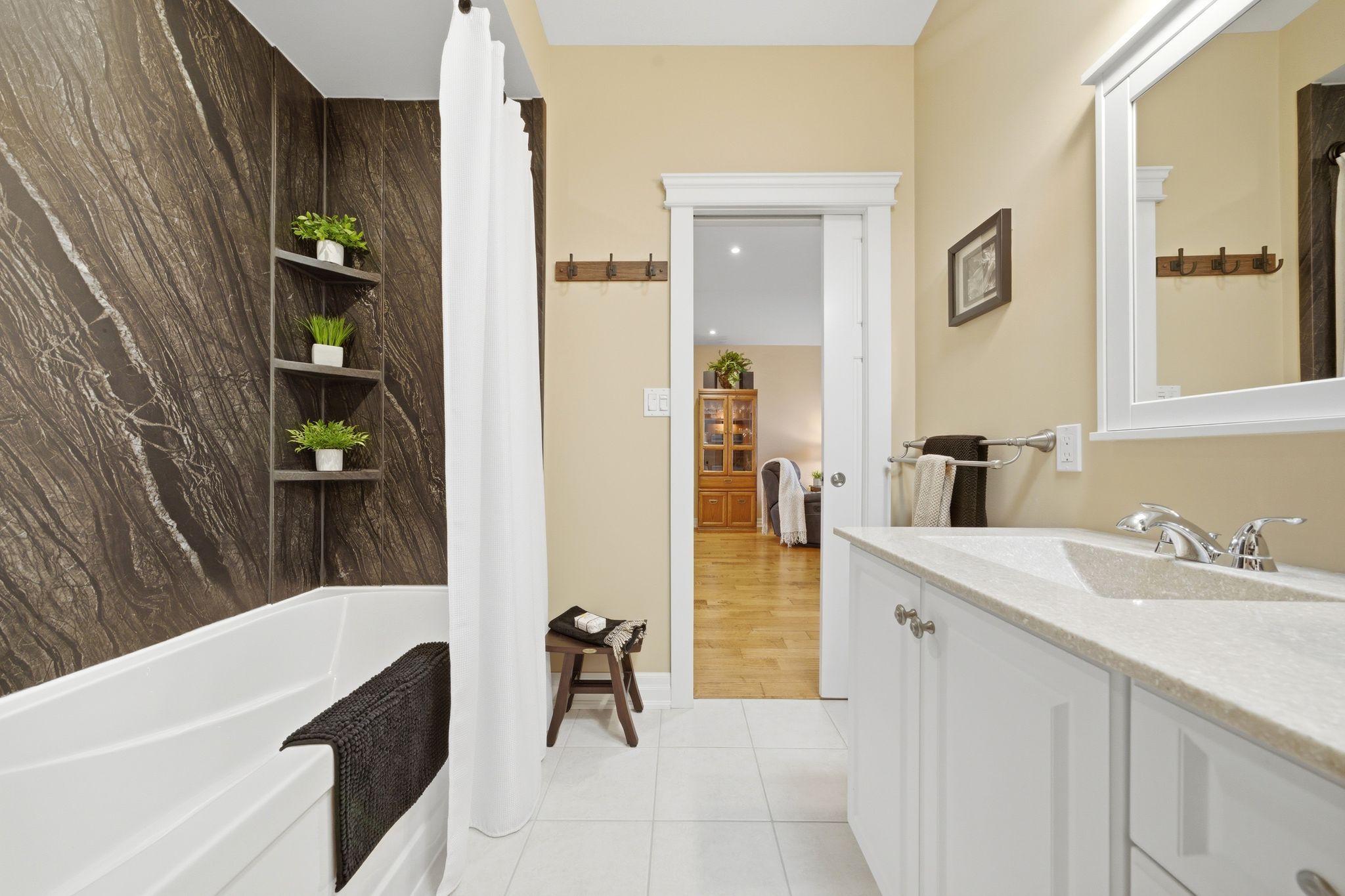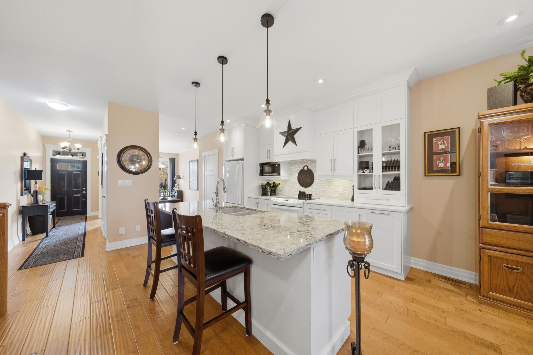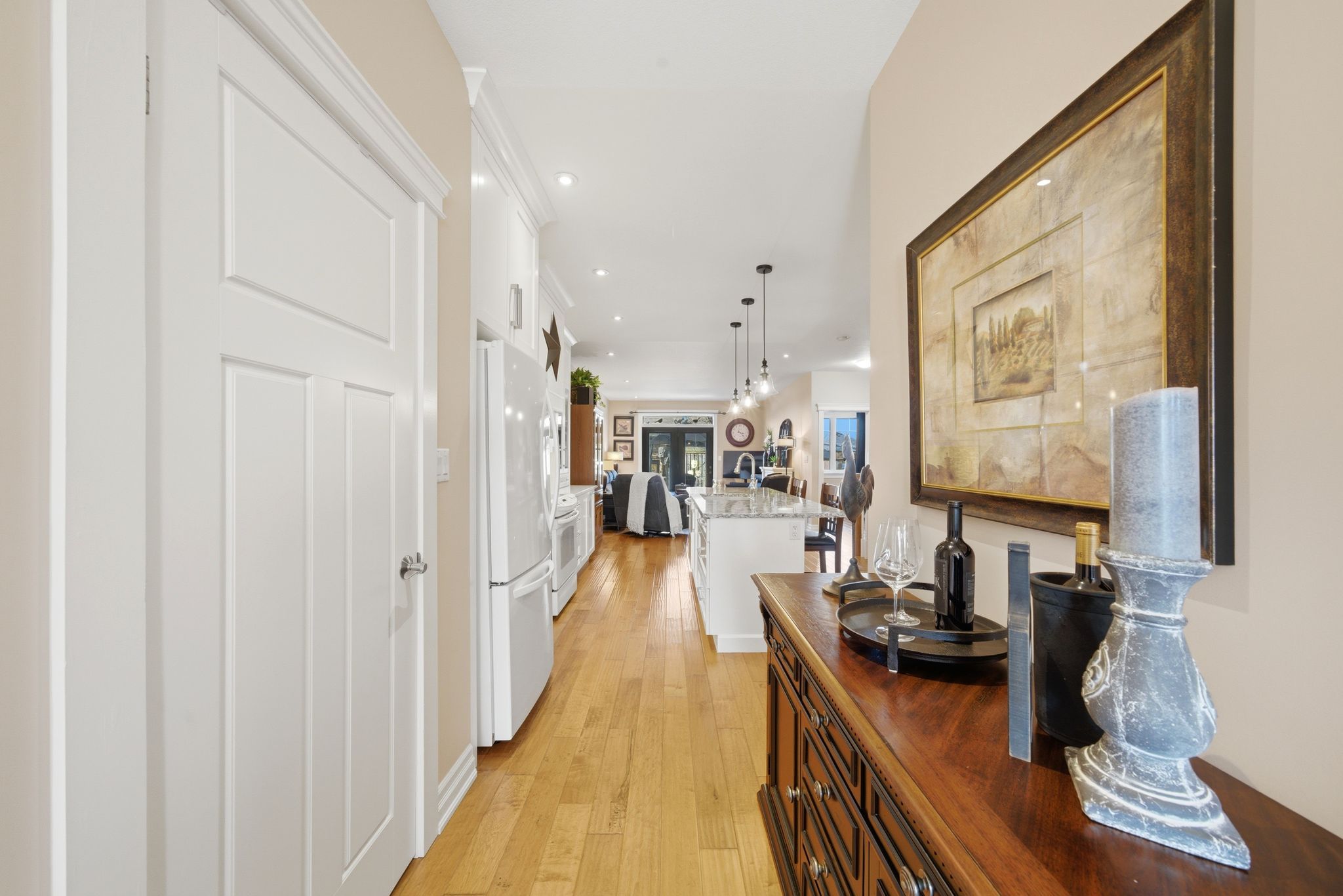 Experience refined living in this thoughtfully upgraded residence, where comfort meetstimeless design. A concrete driveway and welcoming front entry set the tone, while inside, 9-foot ceilings and hand-scraped hardwood floors create an elevated main-level ambiance. The spacious dining room is ideal for elegant entertaining, enhanced by stained glass accentsthat add warmth and sophistication. At the heart of the home, the beautifully appointedkitchen features a new fridge and dishwasher, a flush-mount stove and oven, pot lighting, anda generous walk-in pantry. It flows seamlessly into the living room, where additional potlighting and a sleek electric fireplace create a cozy yet modern atmosphere. The main floor offers exceptional convenience with a dedicated laundry room and direct walk-inaccess from the garage. A fully renovated main bathroom provides a spa-inspired retreat,complete with a soaking tub and skylight. The primary bedroom features double closets spanning the length of one wall, along with alarge window that fills the space with natural light and overlooks the landscaped backyard. The lower level adds versatility with a private bedroom retreat, complete with an electricfireplace, walk-in closet, and a full bath with a walk-in shower. An unfinished area offerspractical functionality, including a laundry tub, built-in workbench, cabinetry, and amplestorage. Outdoors, enjoy a concrete back patio framed by lush flower beds and mature foliage, creatinga private and tranquil setting ideal for relaxation or quiet evenings. Surrounded by nature,this serene outdoor space invites you to unwind to the sounds of birdsong and enjoy a truesense of peaceful living. Ideally located within 30 minutes of hamilton, burlington, and st. Catharines, this homeoffers a seamless balance of luxury living and everyday convenience.