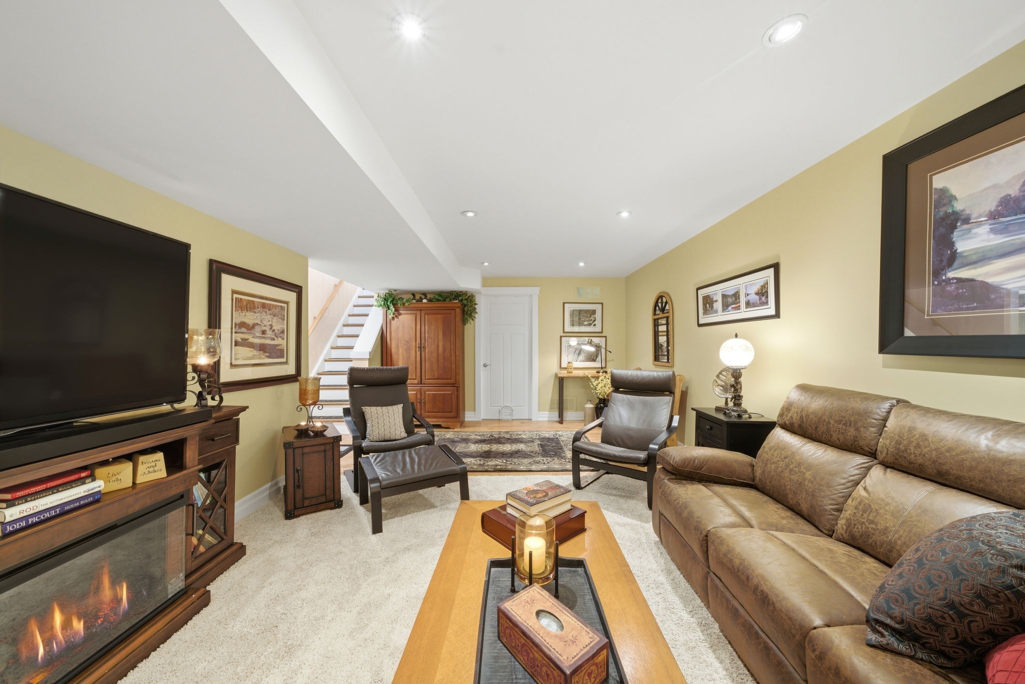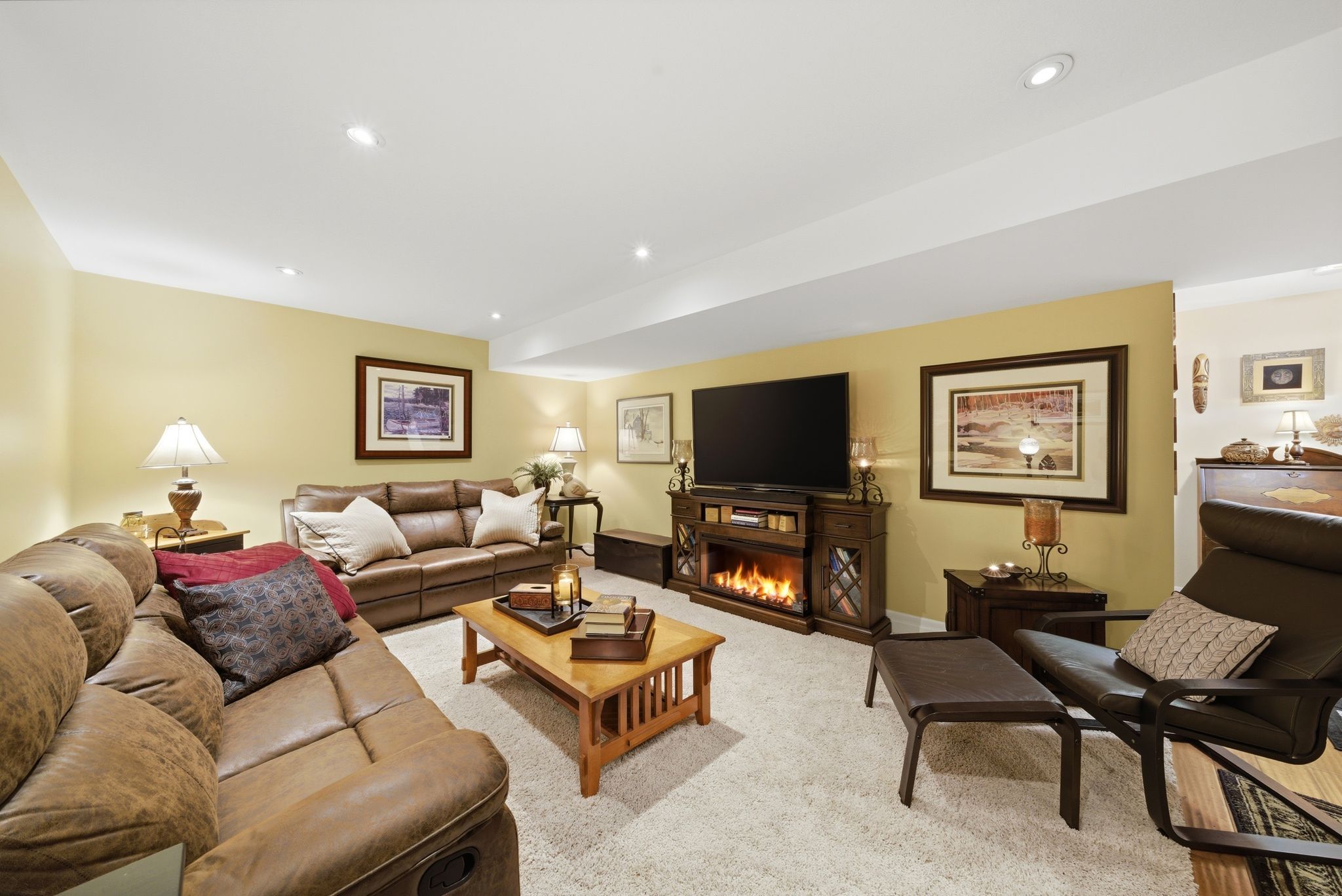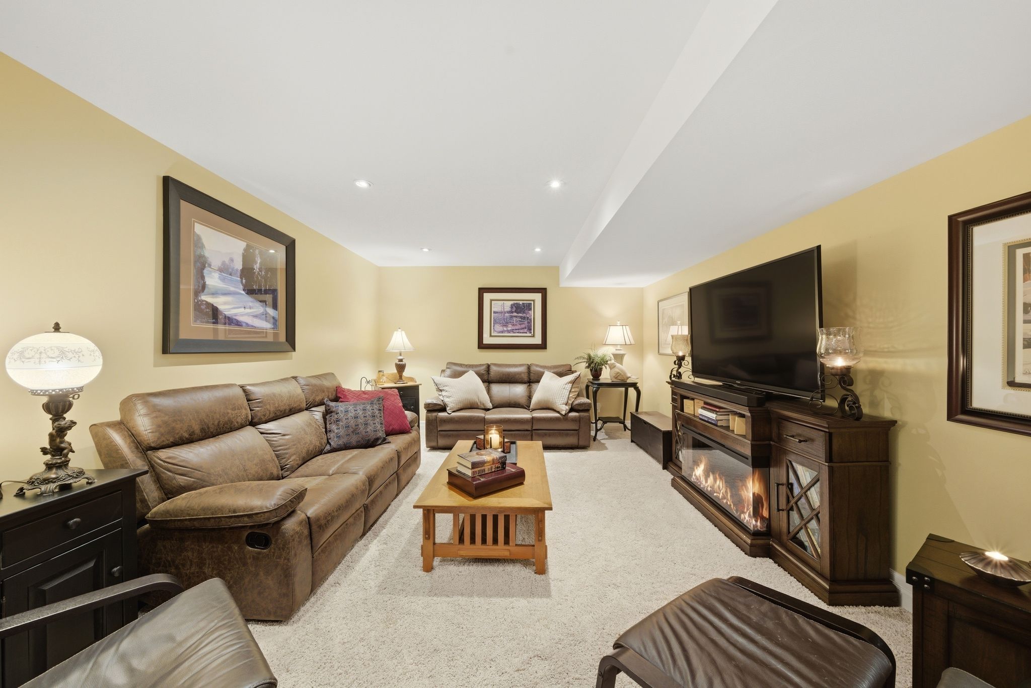 • Lower level includes private bedroom retreat with electric fireplace and full bath.