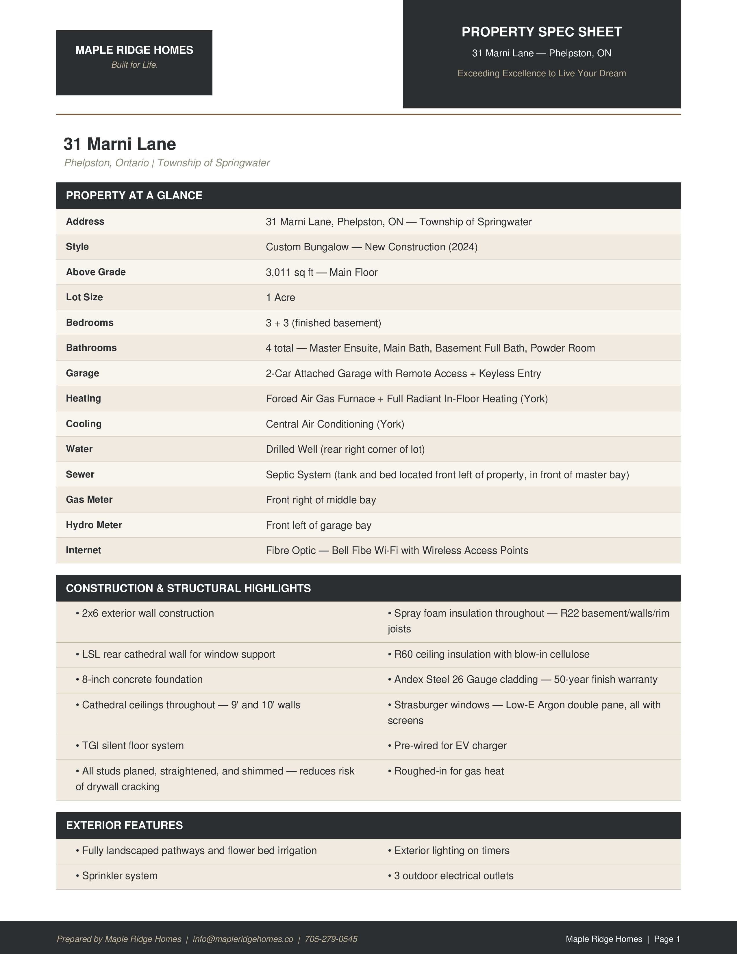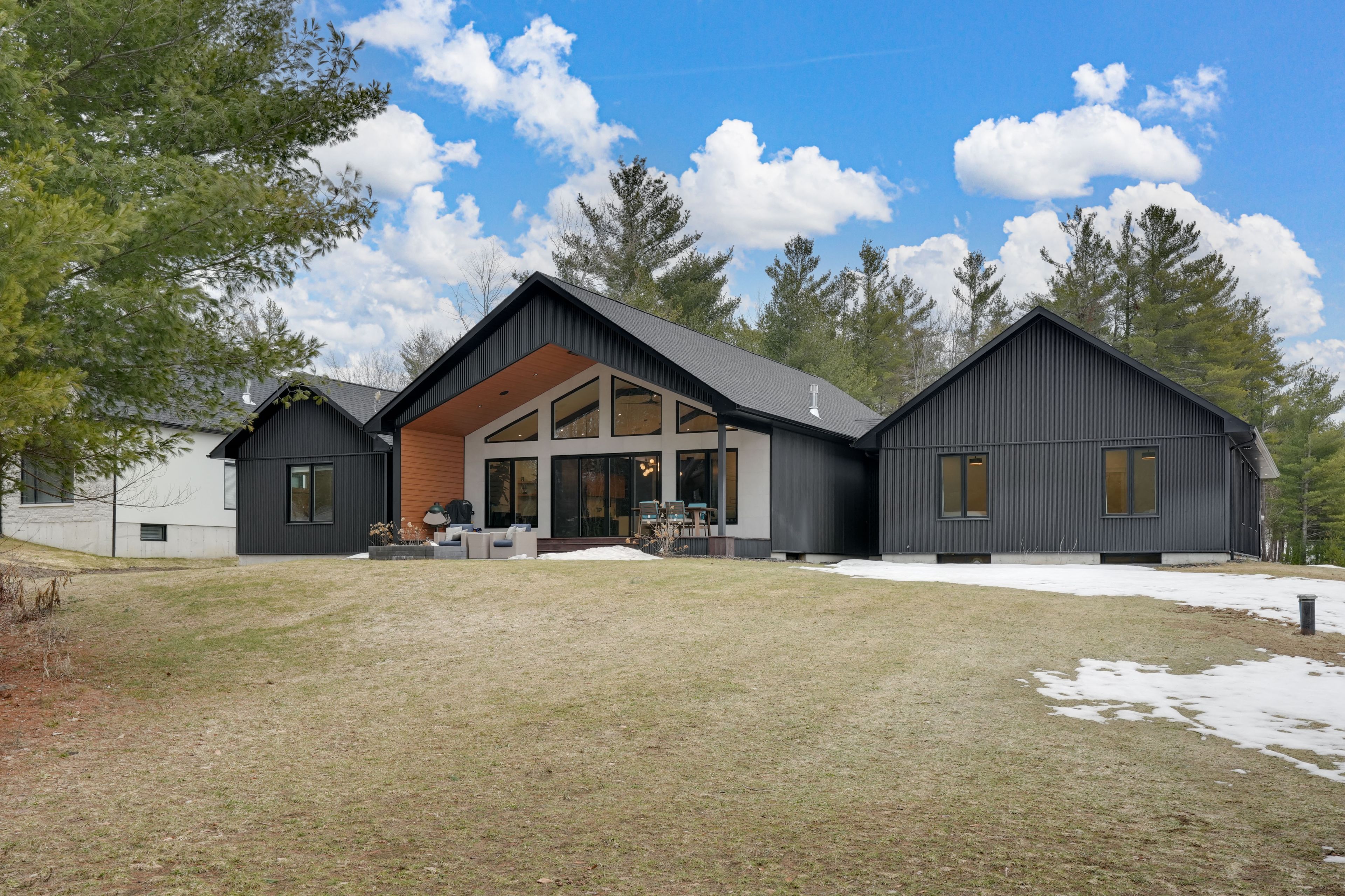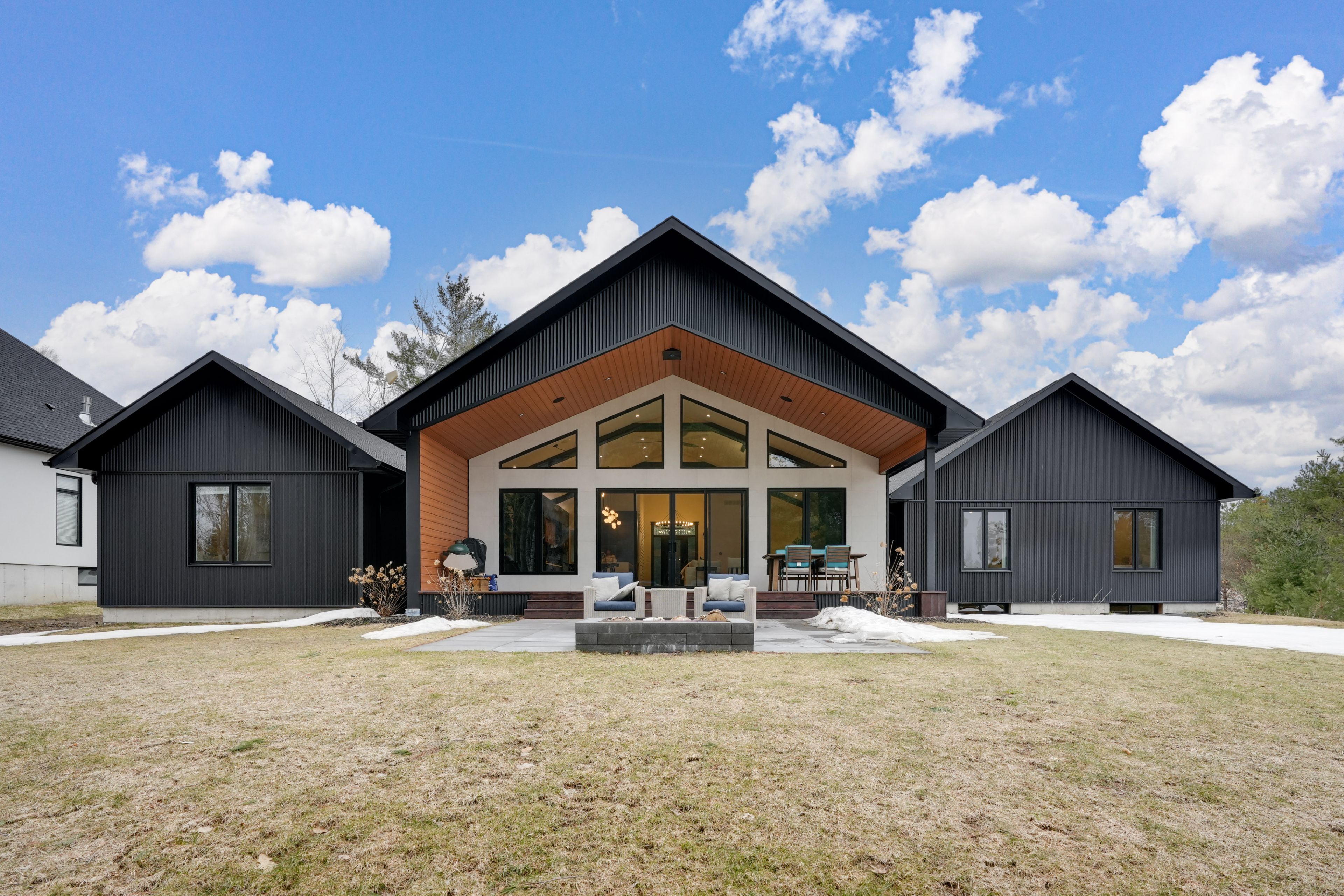 Welcome to 31 marni lane, an architectural statement set on a stunning 150. 92' x 268. 93' lot. Showcasing scandinavian-inspired design, this home offers over 3,000 sq. Ft. Of main floor living space, plus a fully finished basement. A grand front entrance opens to soaring vaulted ceilings and expansive rear windows that immediately capture your attention. Wide-plank european white oak flooring flows seamlessly throughout the main floor, complemented by radiant in-floor heating and a fully integrated sonos surround sound system that extends throughout the entire home. The kitchen is a true culinary showpiece, featuring quartz countertops with waterfall edges and wireless charging, sleek contemporary cabinetry, smart wifi appliances, and a chef's pantry with additional quartz workspace. A stylish wet bar complements the space, perfect for entertaining. And with entertaining in mind, the main area offers the expansive flow anchored by a custom fireplace. The primary suite is thoughtfully positioned in its own private wing, complete with vaulted ceilings, a custom walk-in closet, and a exceptionally crafted ensuite featuring a double vanity with waterfall quartz, a barrier-free shower with led niches, and a soaker tub. A front-facing home office adds functionality, while two additional bedrooms are set apart from the primary with a spacious shared bathroom. The fully finished basement offers nearly 3,000 sq. Ft. Of additional living space with a separate garage entrance. Radiant in-floor heating runs throughout the home, while the dedicated gym is intentionally excluded to keep the space cool. A soundproof home theatre, wired for 5. 1 surround sound, completes the lower level. The exterior is equally impressive, finished with high-end steel cladding that highlights the home's architectural design. Stamped concrete porches extend the living space outdoors to a firepit area, while full irrigation enhances the landscaping. More details in realtor images.