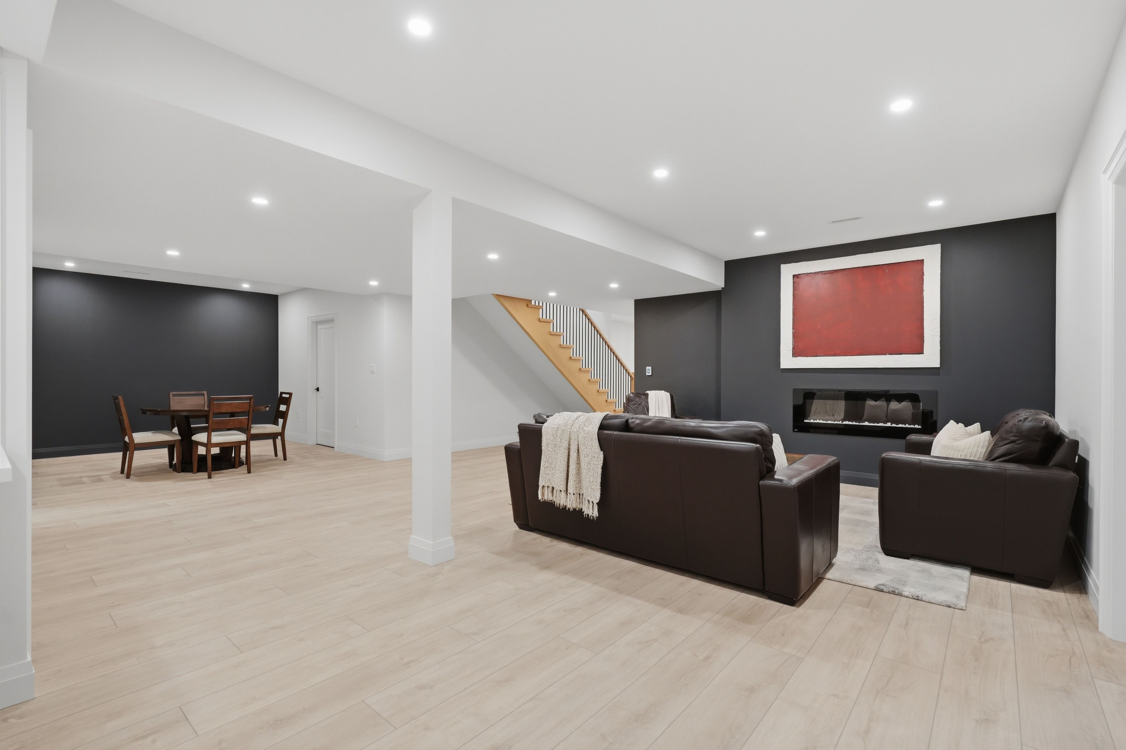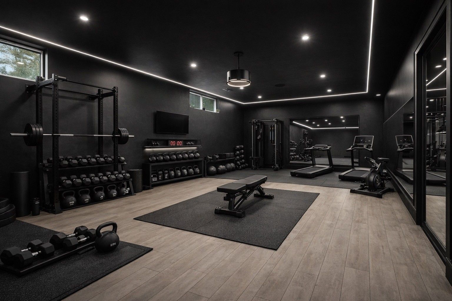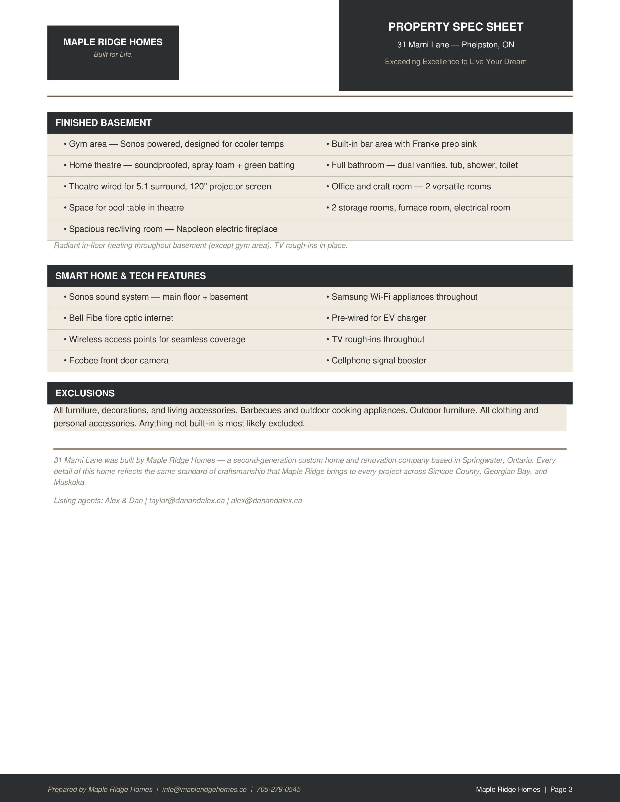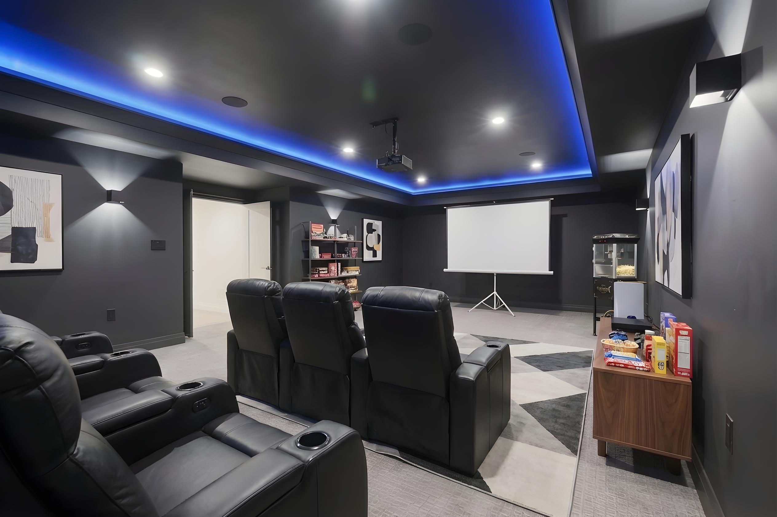 • Finished basement includes a soundproof home theater and dedicated gym space.