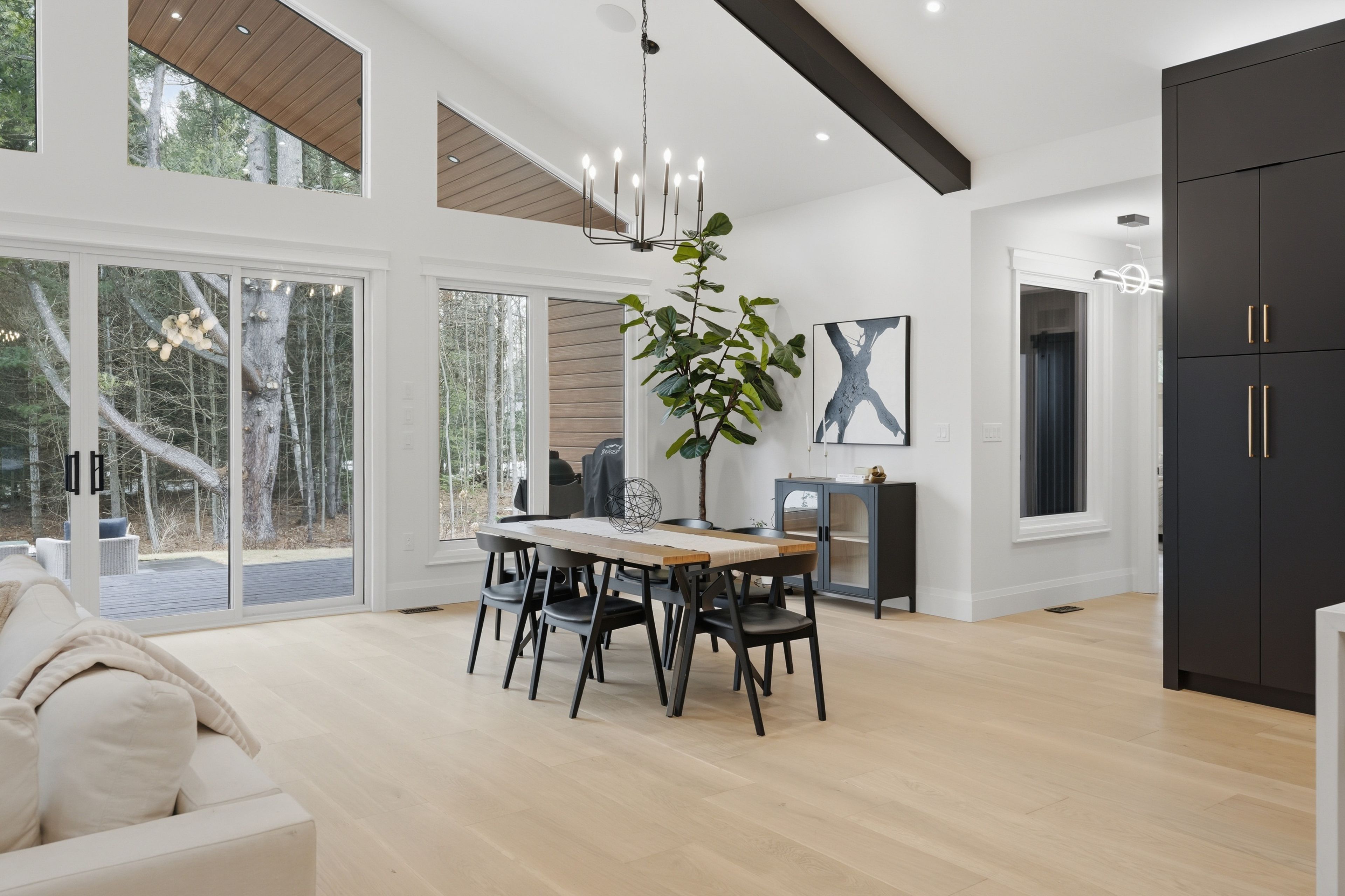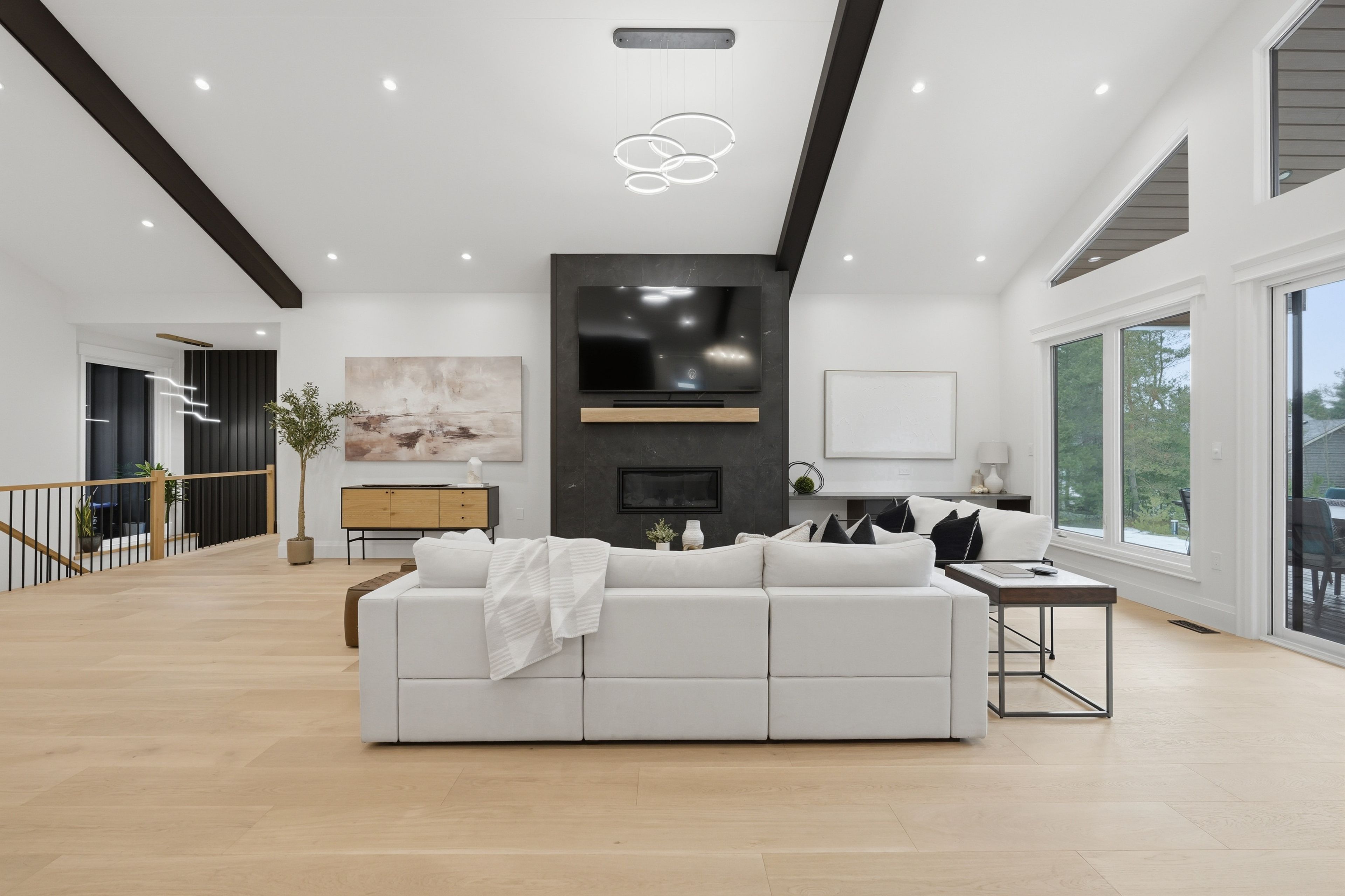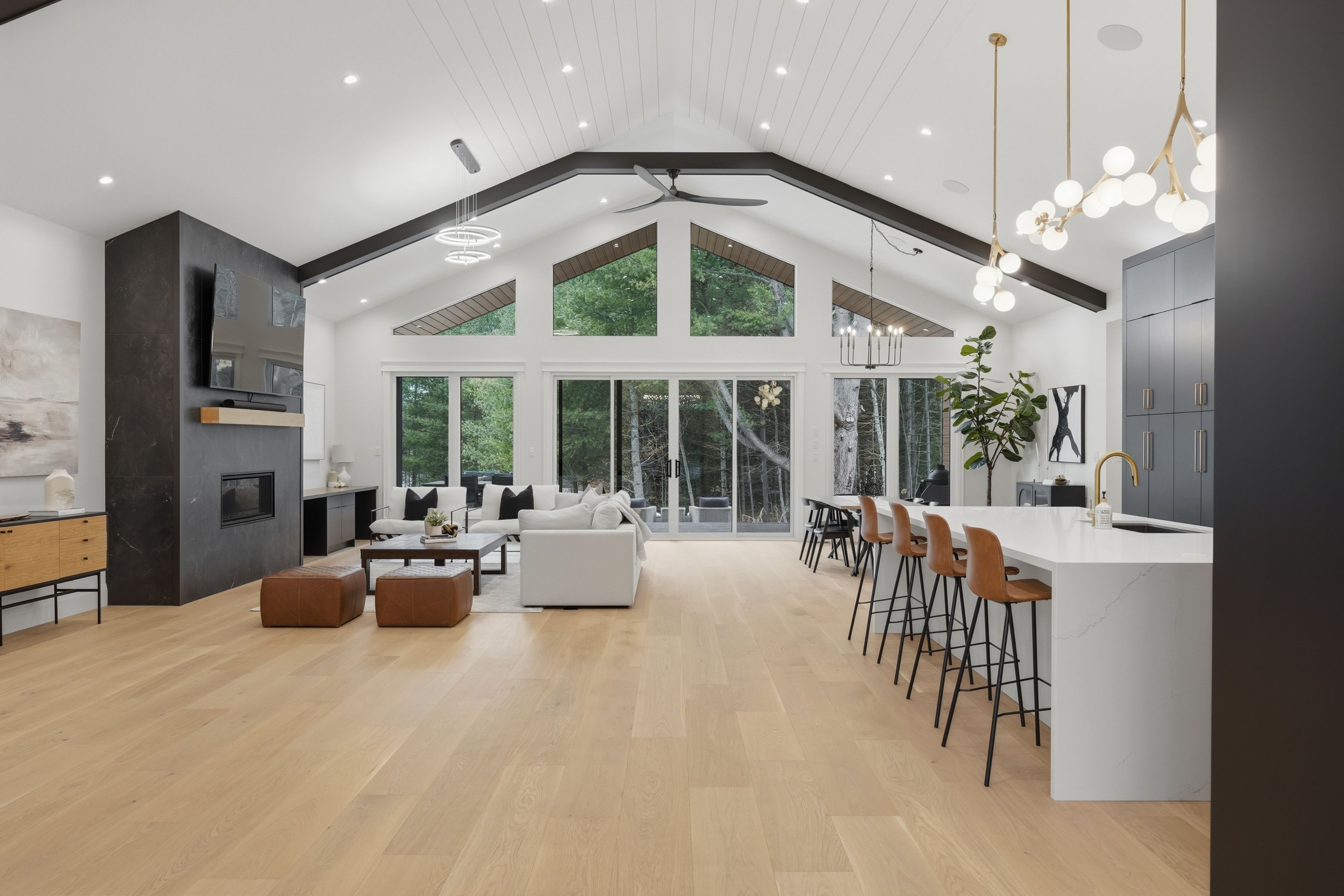 • Vaulted ceilings and large windows create a bright and open atmosphere.
