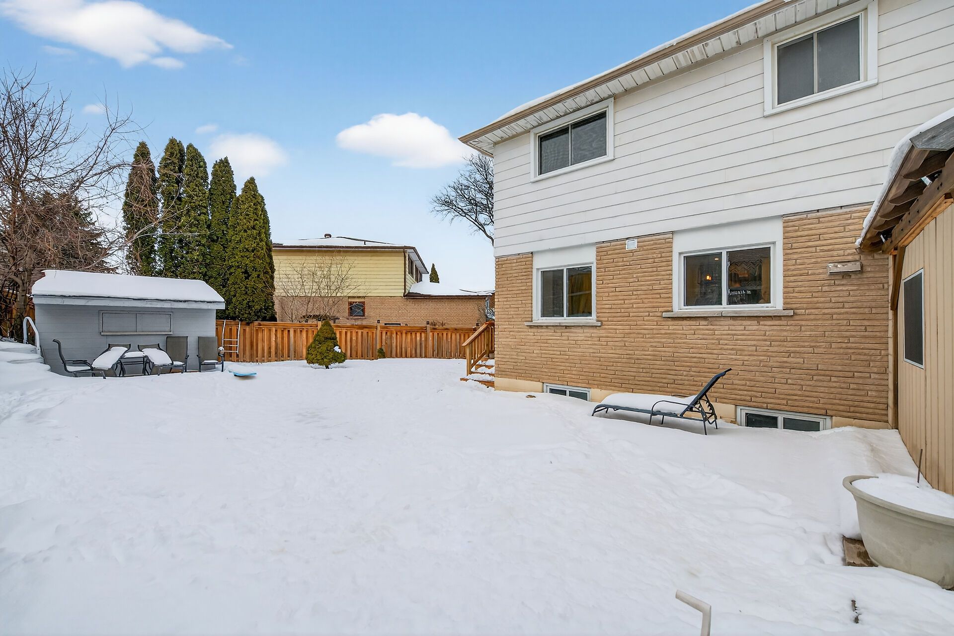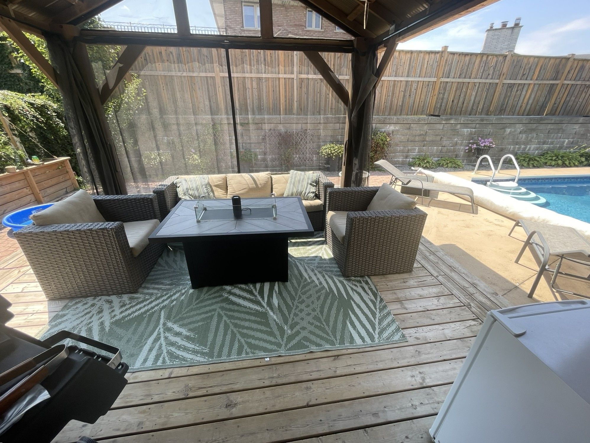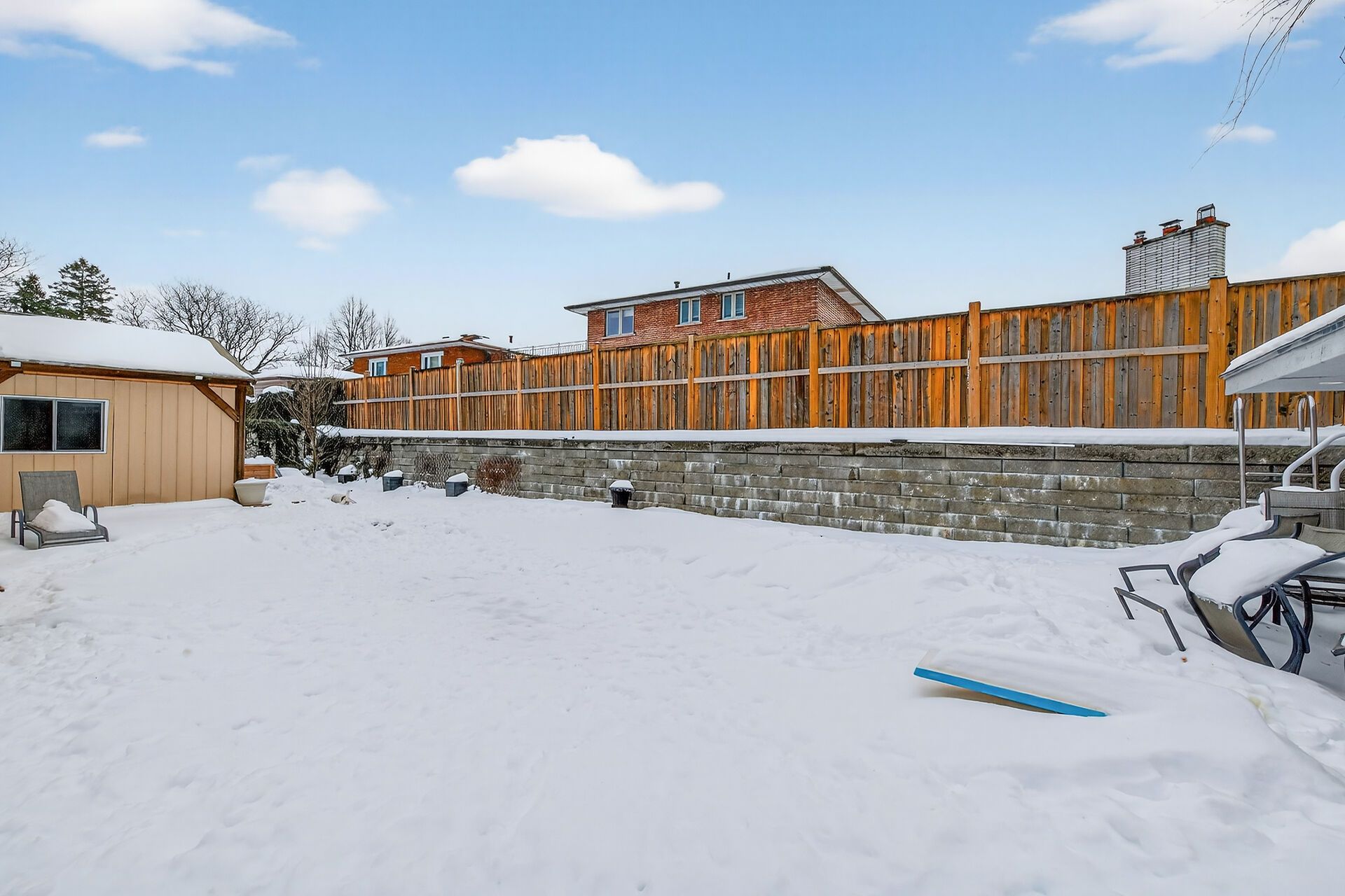 • Fully fenced backyard features a saltwater pool and tiki bar for fun.