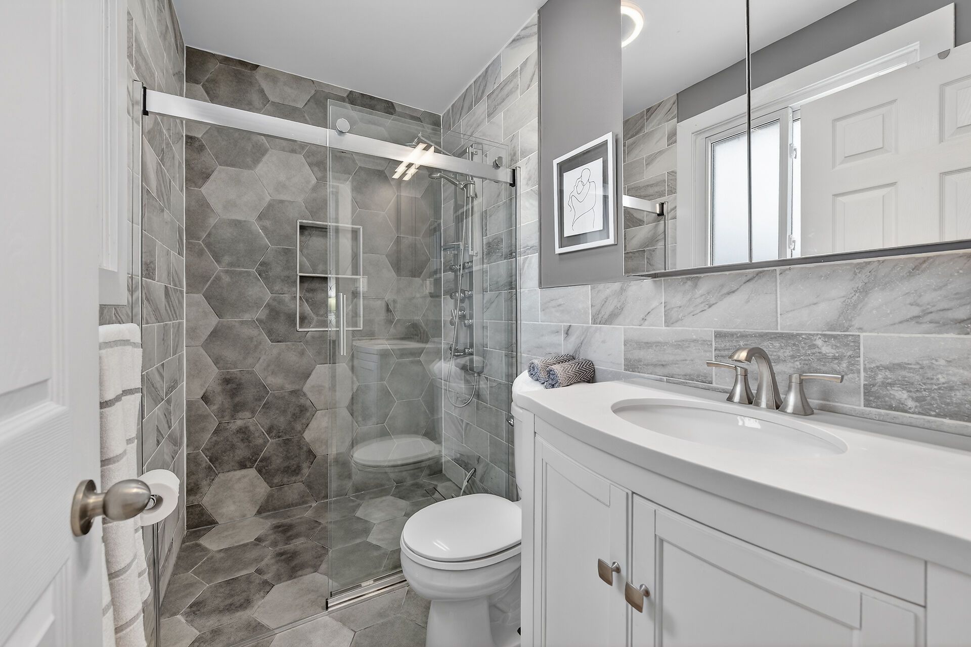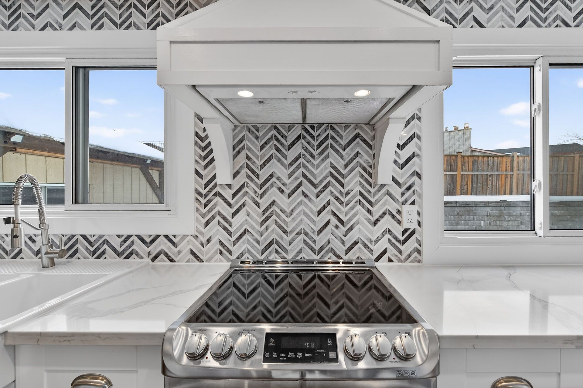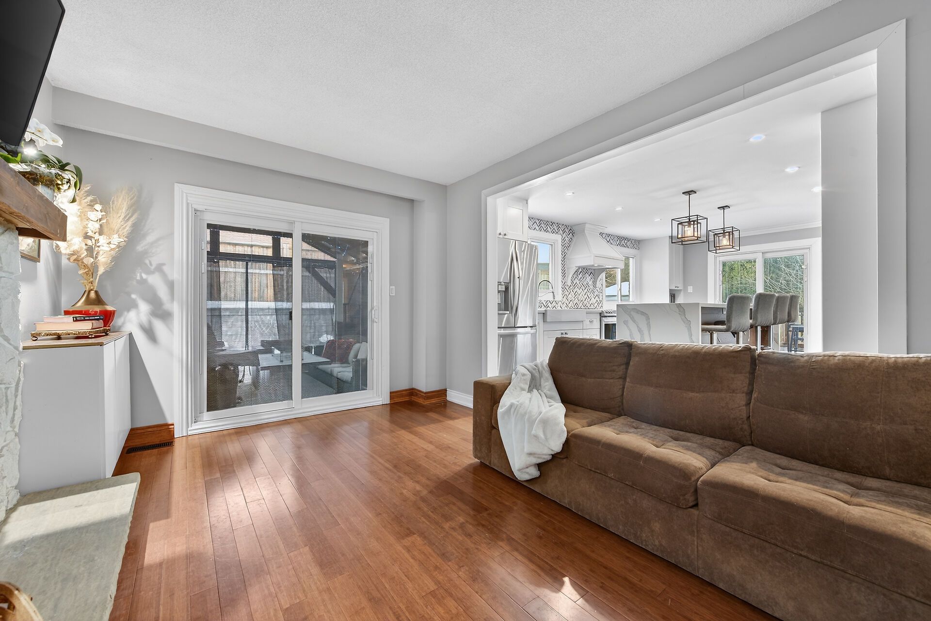 • Gourmet kitchen with quartz island and easy patio access for entertaining.