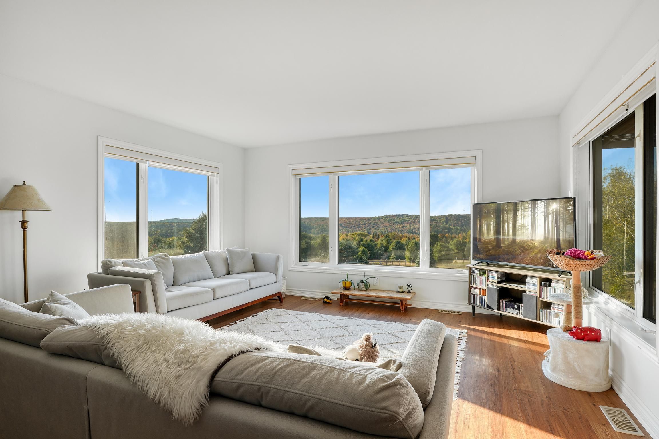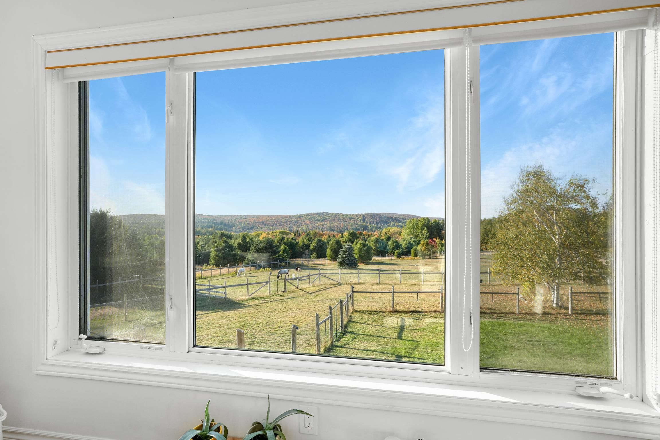 Recently renovated from top to bottom, this lovingly cared for home is expertly located on a beautifully appointed 15 acre lot. One of the most sought after locations in the region with unmatched commanding, panoramic views right from your screened in porch. Offering 4 bedrooms and 3 bathrooms, a tastefully updated kitchen complete with new appliances, a spacious, cozy living room overlooking the grounds and capturing the ever changing dynamic views and a comfortable lower level with walk-out and plenty of storage. Outside the three stall run in shed is versatile with three 10x10 stalls, hydro and water year round. One of the stalls is insulated and separated from the other two. This can easily be retrofitted if desired. The 1 acre paddock is well set up for horses with a ring and separate pasture area. The walking trails on the property allow you to appreciate the diverse terrain. The large vegetable garden, with young fruit trees, is fenced in and draws water from the well or from the rain water storage container beside the garage. Some of the recent renovations include, but are not limited to, starlink (2023), quartz countertops, sinks, faucets, and a carbon filtered drinking water line in the kitchen (2023), a wett certified wood stove and chimney (2023), a 16'x6' outdoor firewood shed (2023), and metal roofing on the garage and the house (2023/2024). The recently severed 10 acre lot adjacent to this property is also listed and available to make this a true family retreat.