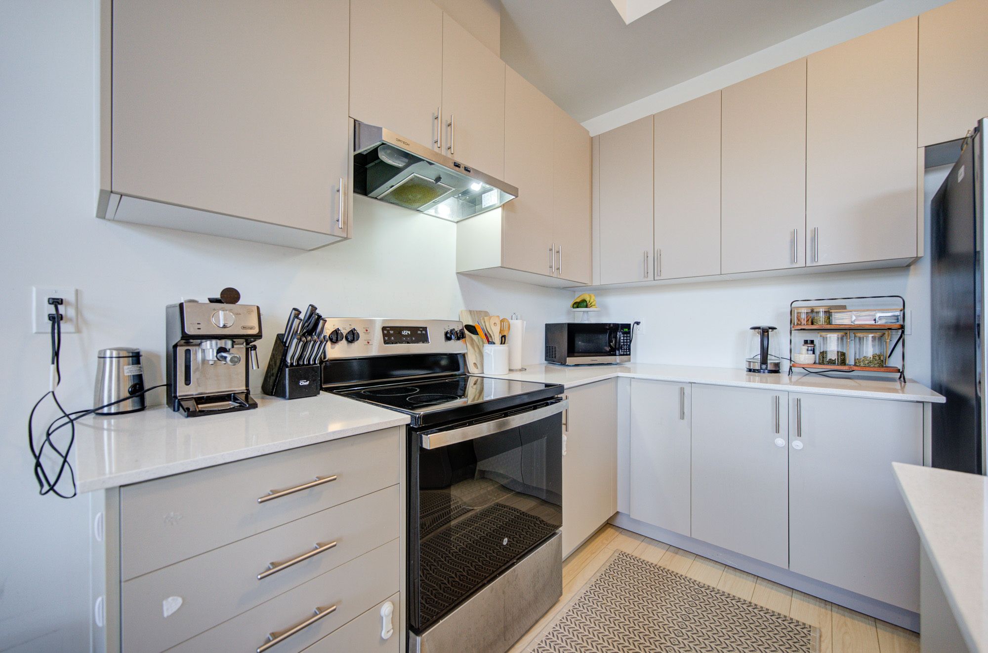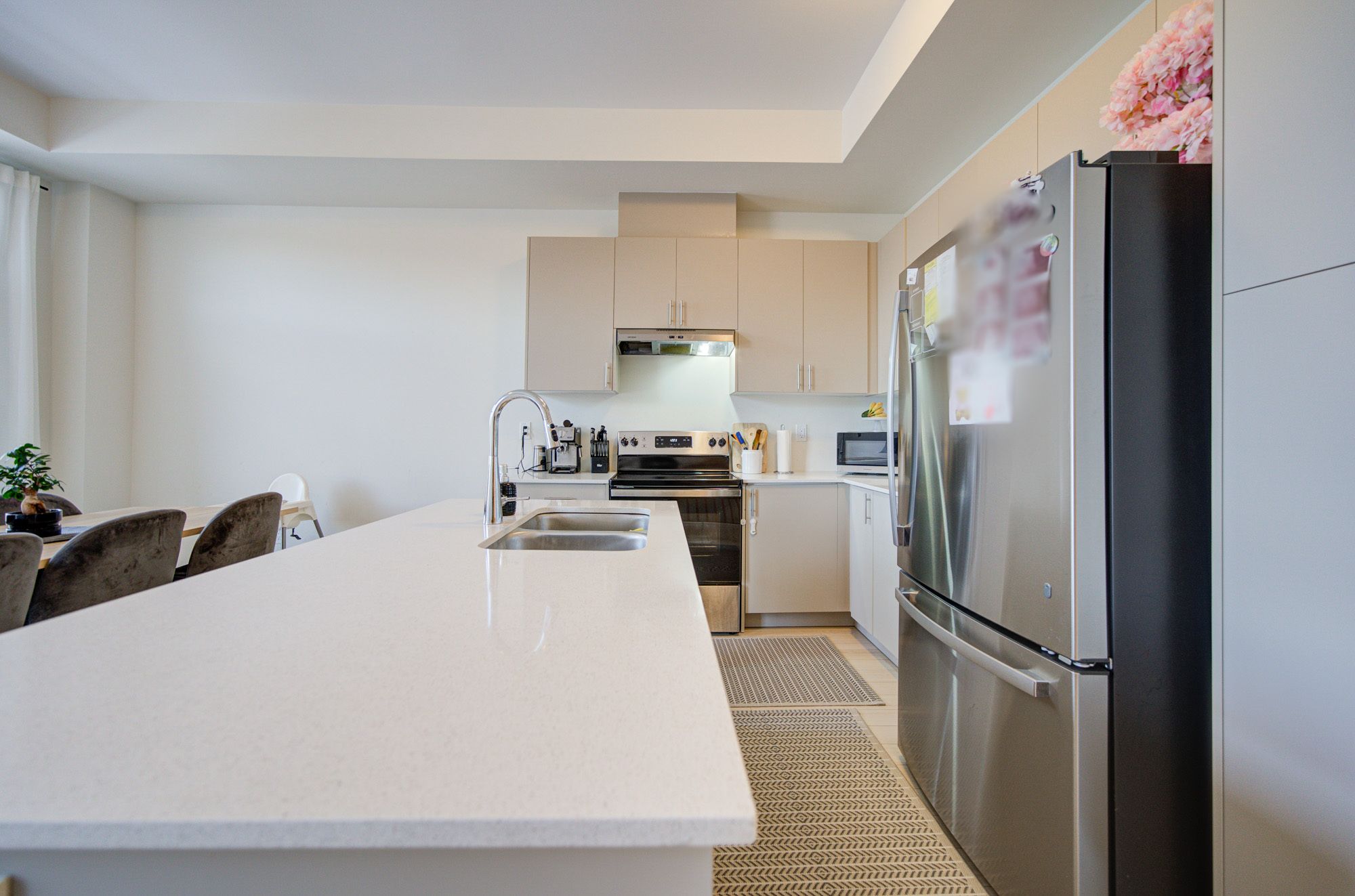 • Modern kitchen with stainless steel appliances for stylish cooking.