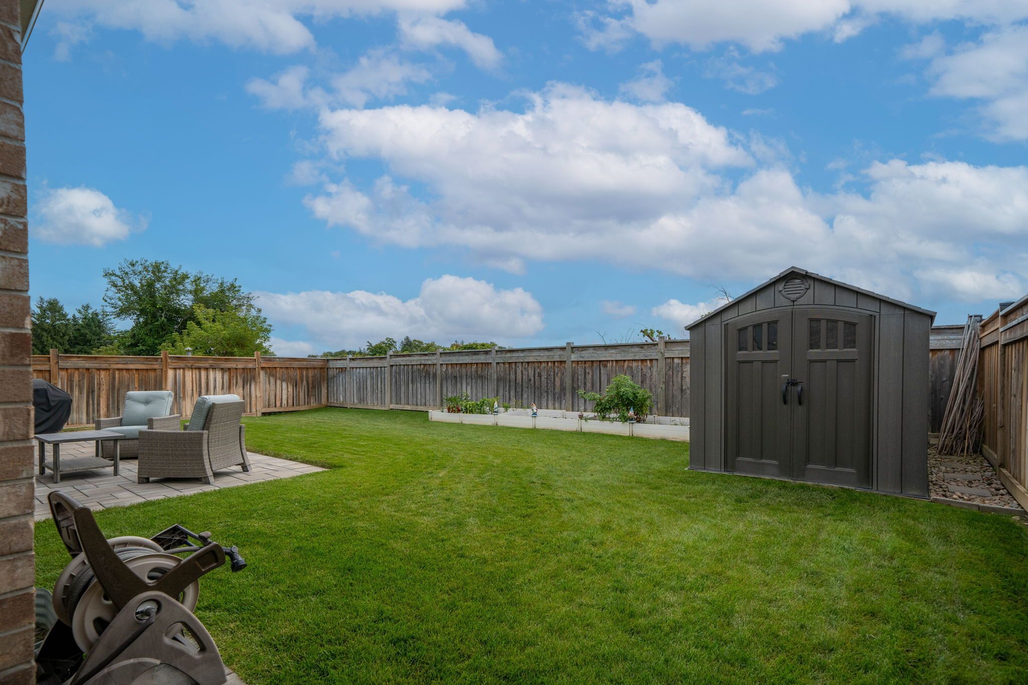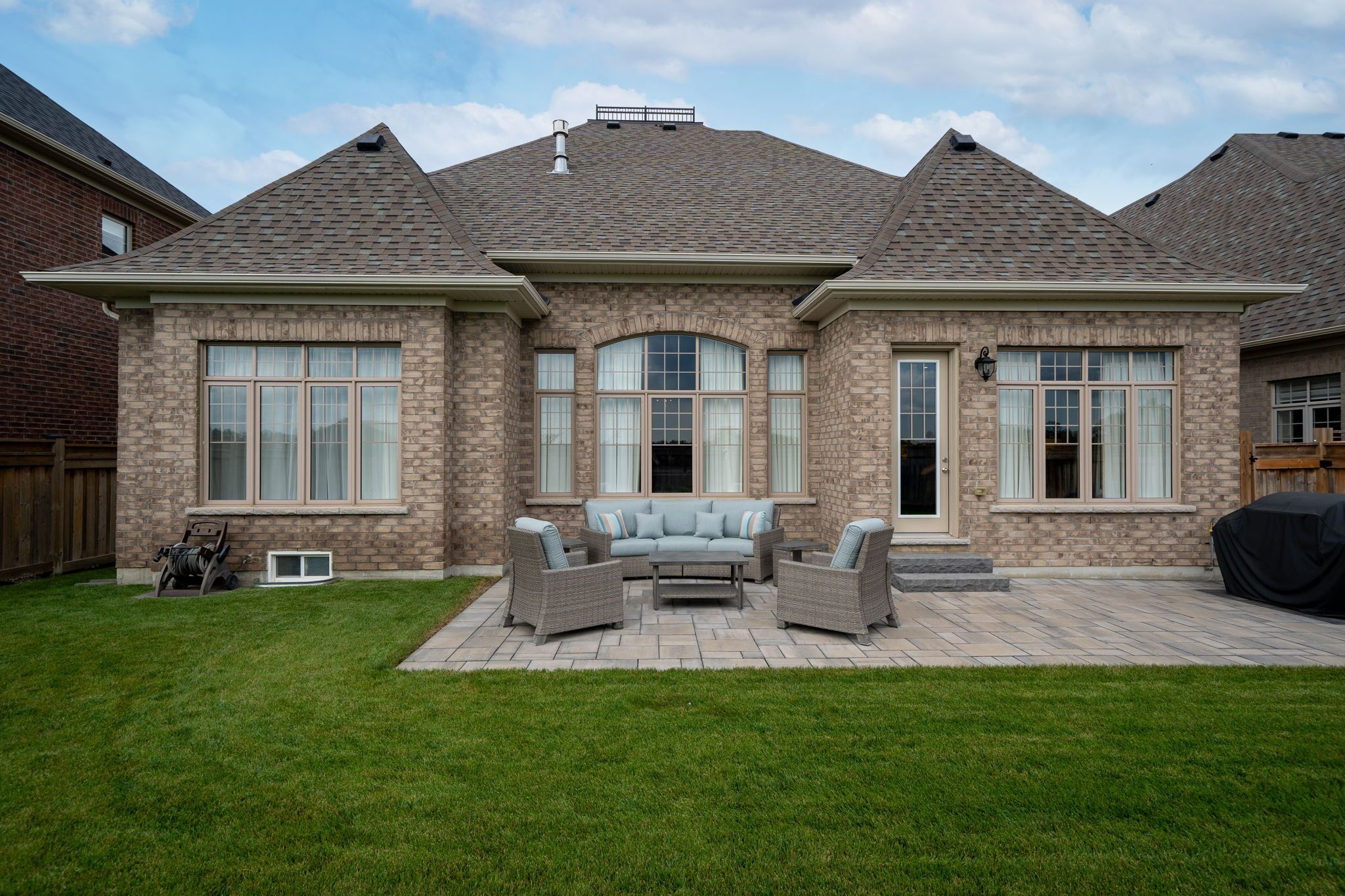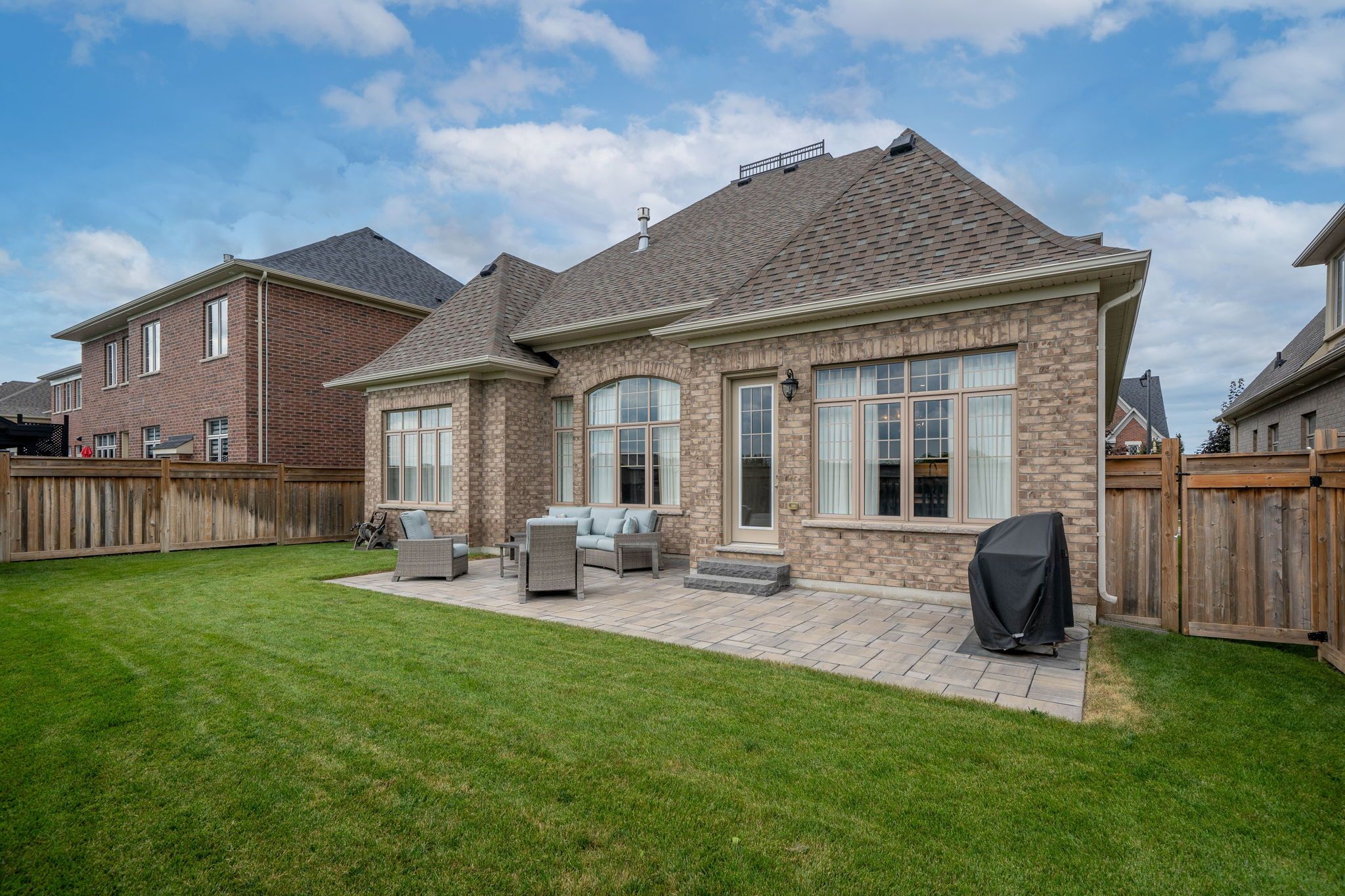 • Professionally landscaped backyard with interlock patio and sprinklers.