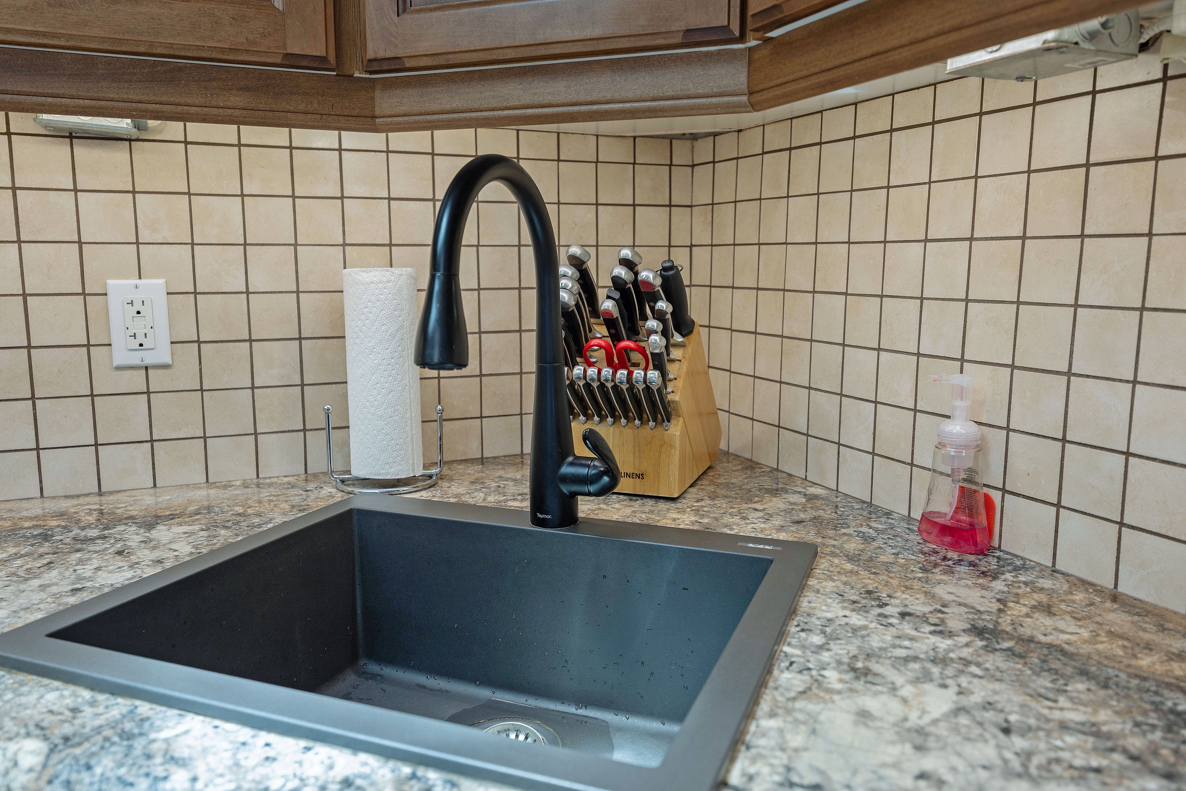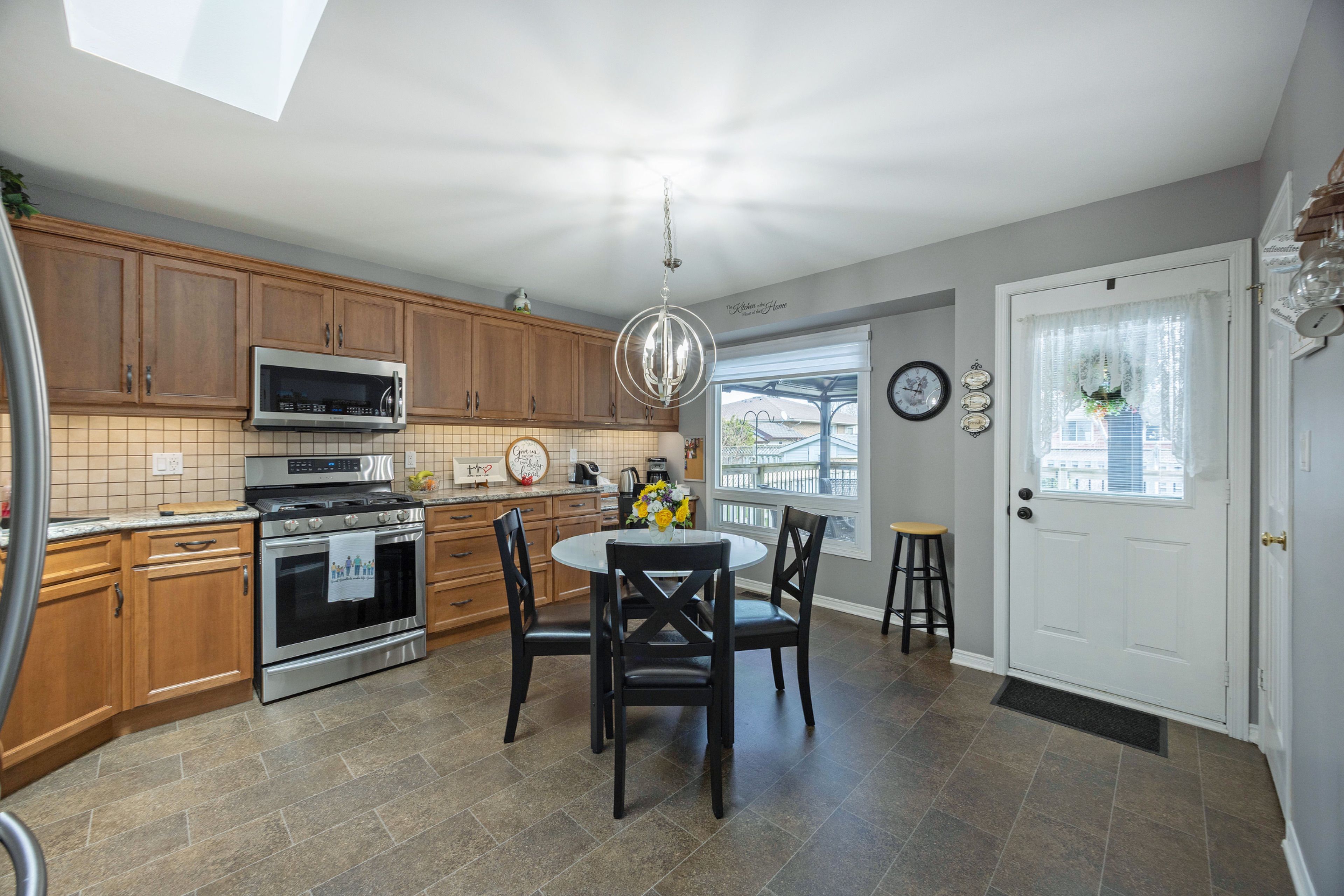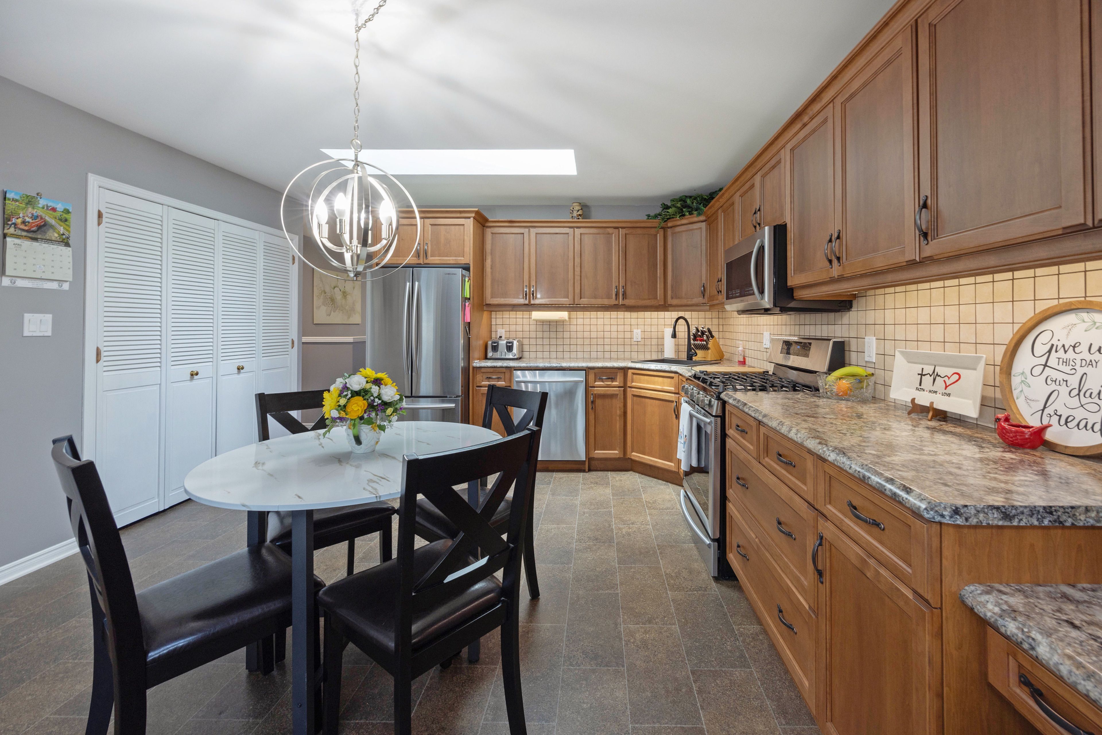 • Updated kitchen cabinets and appliances create a modern cooking space.