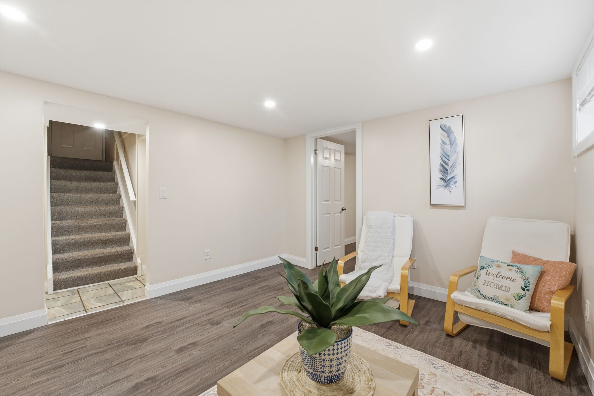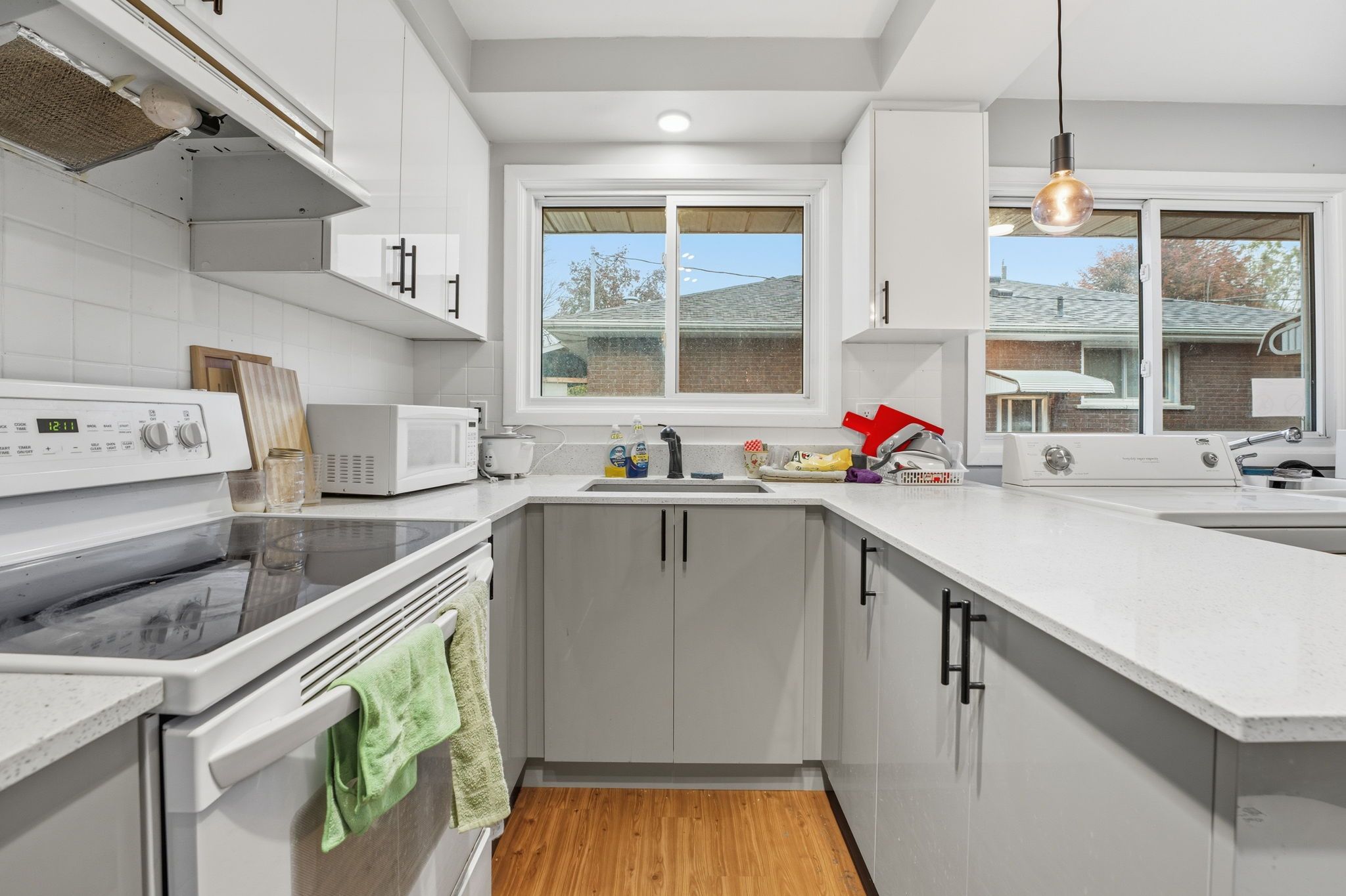 • Lower-level suite features separate entrance, two bedrooms, and laundry.