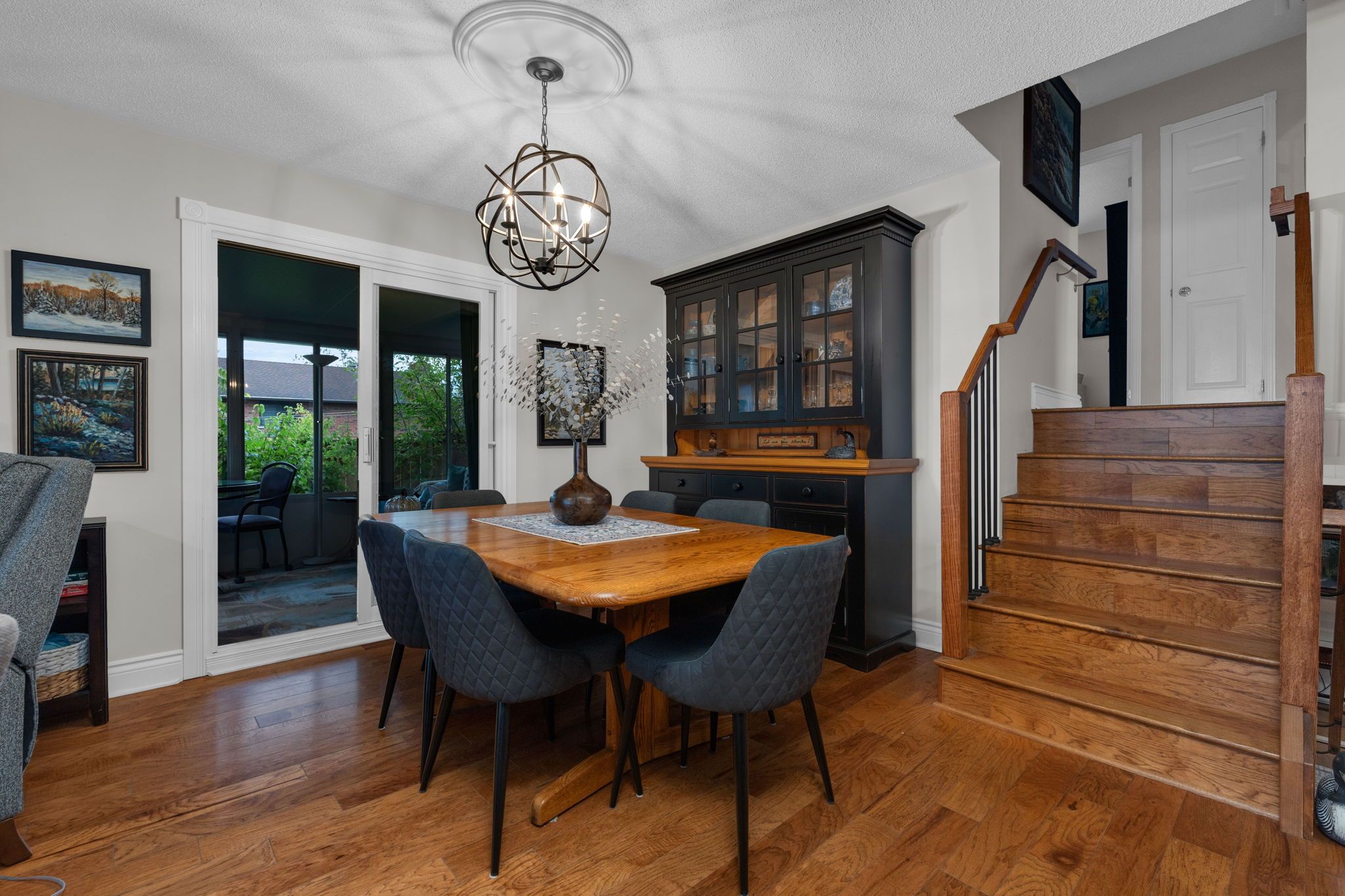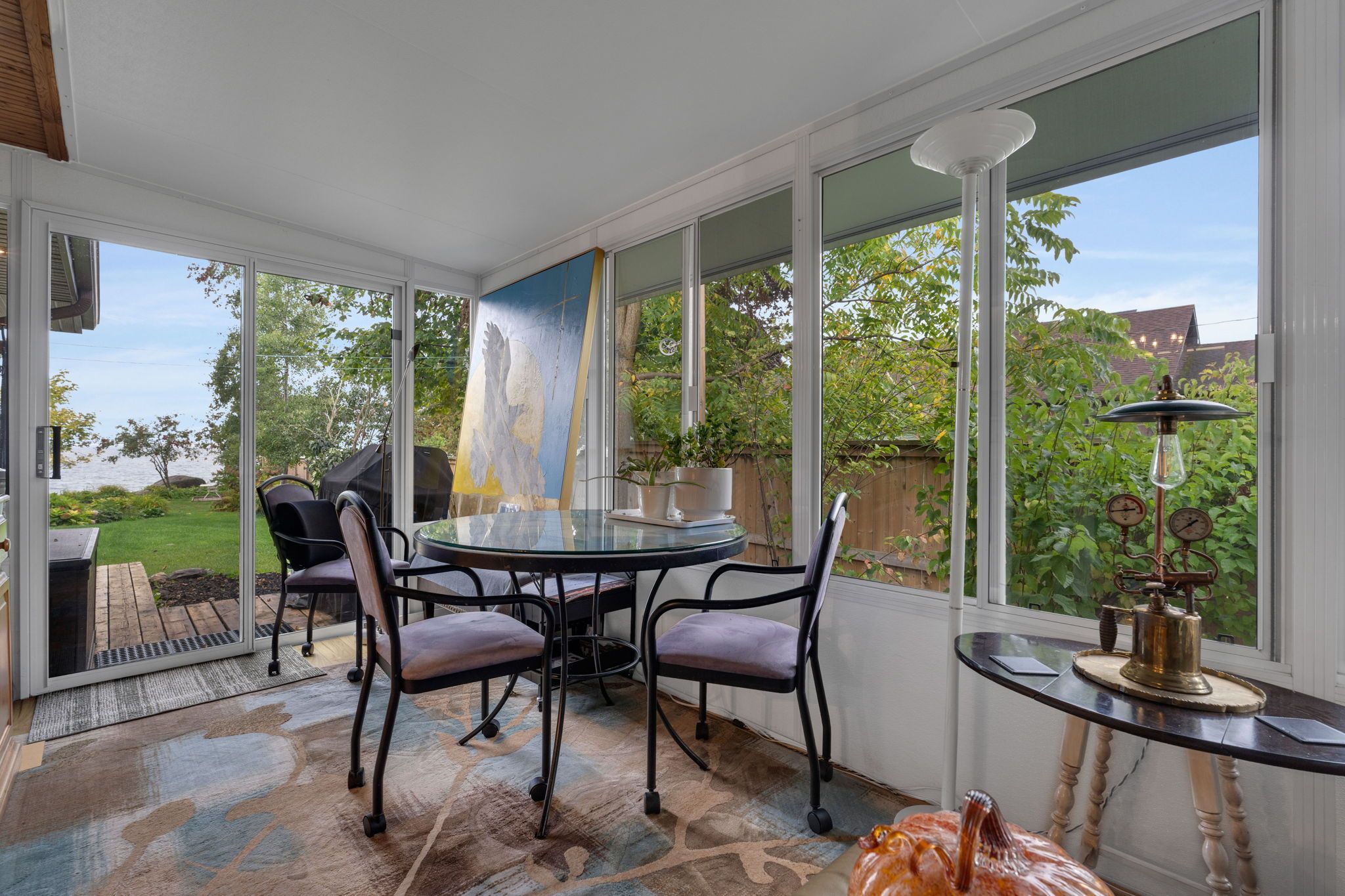 • Bright sunroom perfect for morning coffee or extra seating.