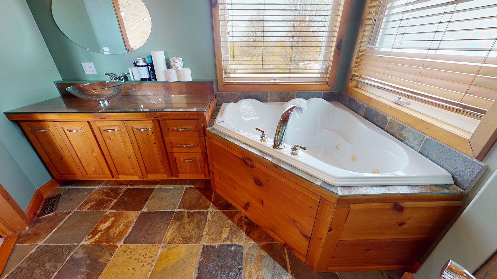 • Chef's kitchen with stainless steel appliances for cooking enthusiasts.