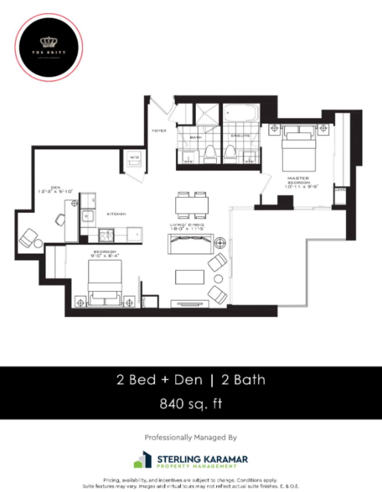 Welcome to the britt, the epitome of luxury living in downtown toronto! Located at 31 phipps street, this opulent rental community offers an exceptional lifestyle to resident's who require nothing but the best. This 840sf two bedroom + den, 2 bath suite features an efficient open concept layout with virtually no wasted space, s/s appliances, granite countertops, in-suite laundry, excellent closets space and large balcony with access from the living room and primary bedroom. Nestled within one of toronto's most sought-after neighbourhoods, the britt is ideally located just a short walk from some of yorkville's most popular attractions, including - the stylish and trendy bloor-yorkville shopping district, the royal ontario museum, the university of toronto and countless dining and entertainment options. The only thing better than living in a prime location is never having to leave home. Whether you'd like to relax pool-side on the sun deck, melt your cares away in the spa's hot tub or sauna, or have a viewing party with your closest friends in the private theatre, the amenities at the britt residences will show you just have great living your best life can be.