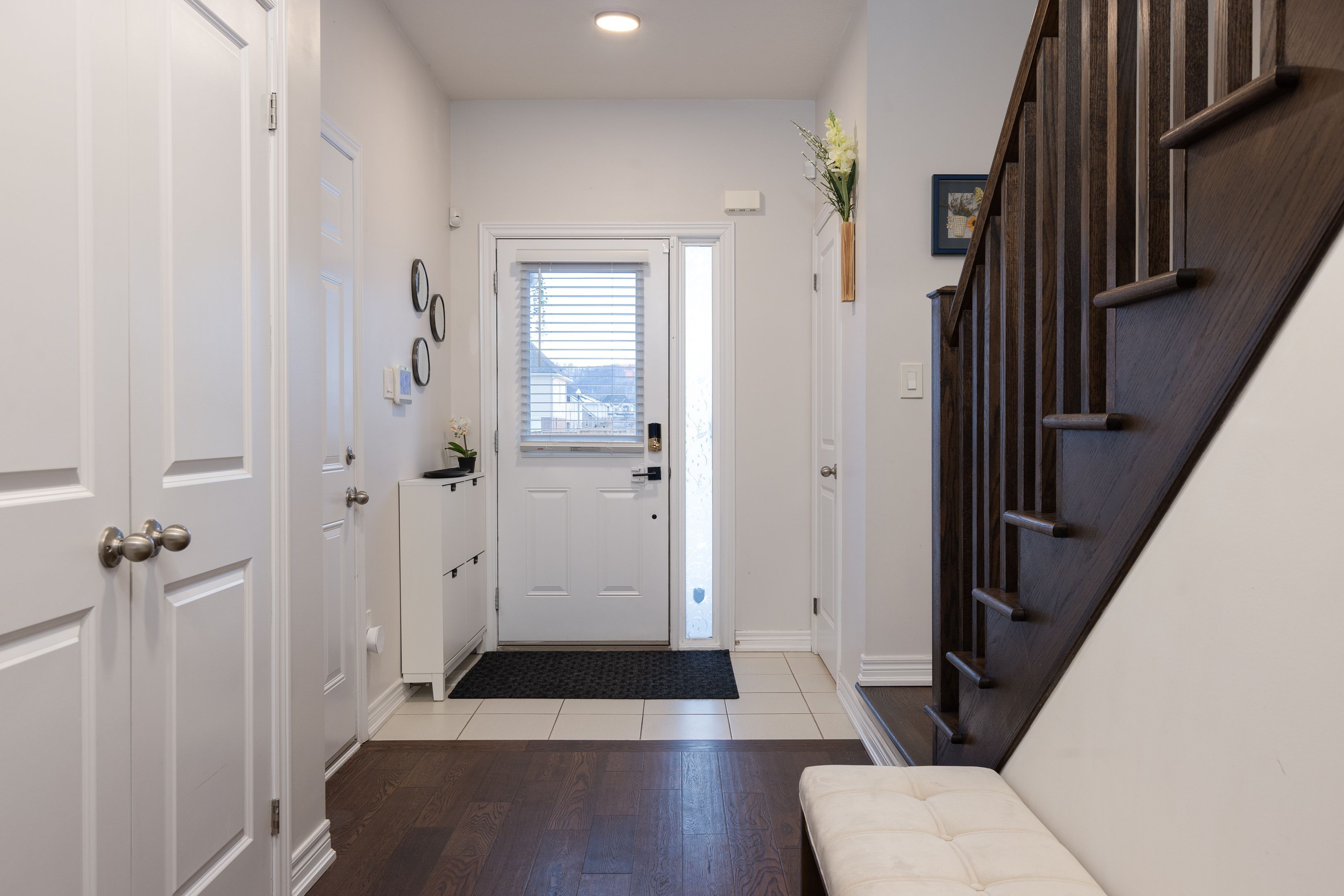 Beautifully maintained freehold townhome in the sought-after foothills of winona, offering the perfect combination of space, upgrades, and location. This bright 3-bedroom, 2. 5-bathroom home features an excellent two-storey layout ideal for families, professionals, and commuters alike. The upgraded main floor showcases 9-foot ceilings, hardwood flooring, an oak staircase, pot lights, and a seamless open-concept design. The kitchen is both stylish and functional with white cabinetry, stainless steel appliances, and a large island overlooking the living and dining areas. Walk out to a private, fully fenced backyard with deck - perfect for summer entertaining. Upstairs, the oversized primary bedroom includes two walk-in closets and a private 3-pieceensuite. Two additional generously sized bedrooms and a full 4-piece bathroom complete the upper level. The upgraded basement offers endless potential and is already roughed-in for a future bathroom, making it ideal for additional living space, a home gym, or in-law capability. Located just minutes to the qew, this home is a fantastic option for commuters while still being surrounded by convenience. Enjoy quick access to shopping, restaurants, parks, schools, winona crossing, and waterfront trails at fifty point conservation area. An exceptional opportunity to own a move-in ready freehold townhouse in one of winona's fastest growing communities.