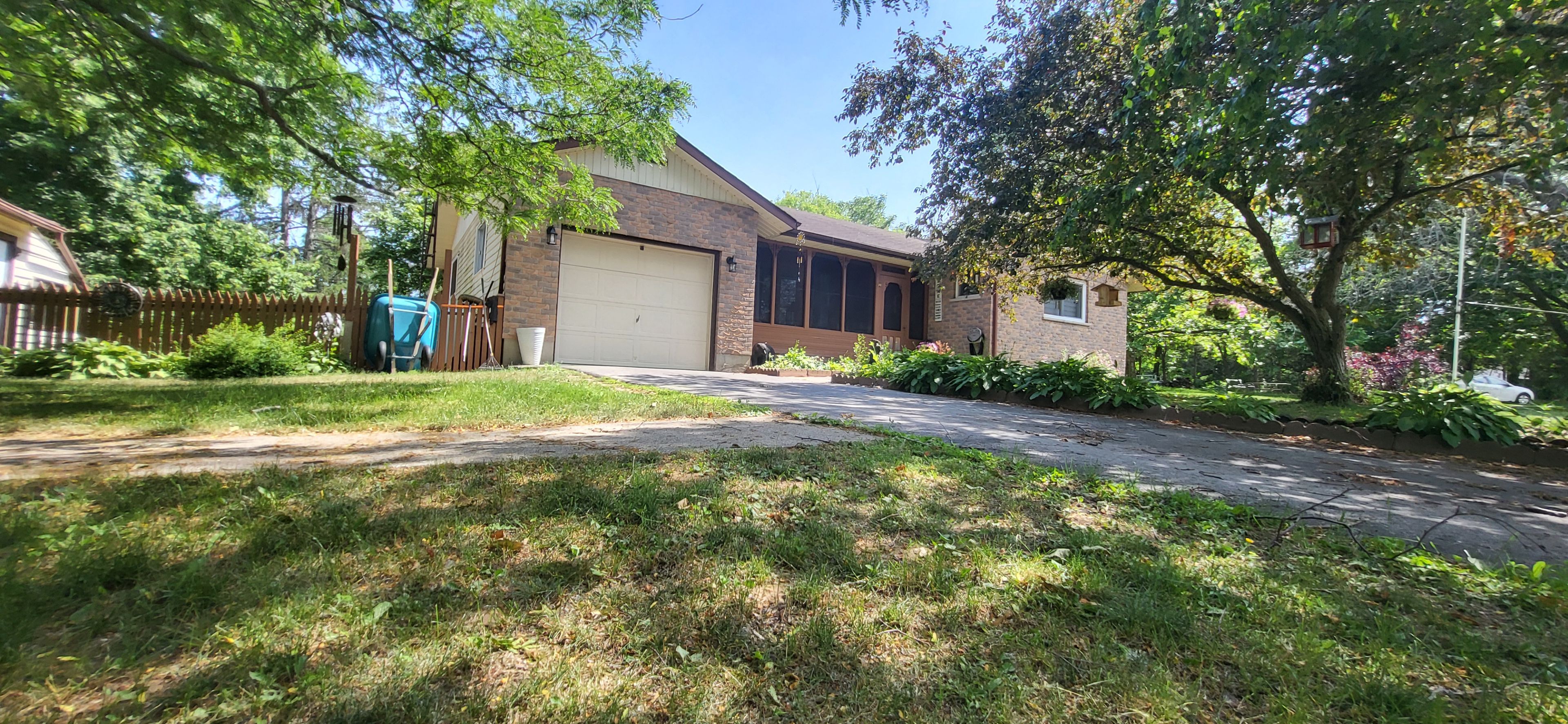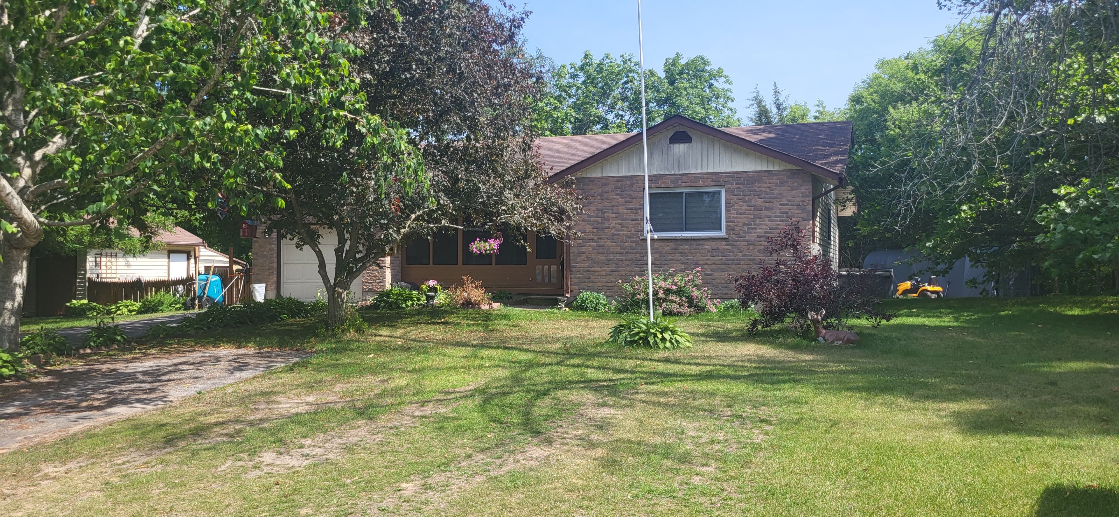 All brick, spacious country bungalow sitting on a picturesque lot just 3 minutes to picton. With almost an acre of land backing onto green-space you will enjoy the privacy and quiet around you. This beautiful property has mature trees, open views and ample space to add a pool or landscaping. An attached garage plus large shed provide extra space for outdoor hobbies and equipment. There is a large deck in the back of the home and cozy covered porch in the front, plus fenced in area for pets. Inside, on the main floor there is over 1,170 square feet of living space including very spacious kitchen with dining room and walk out to deck. A sunken living room with large window provides a cozy space to relax. There is a main floor primary bedroom with 2 piece en-suite bath and 2nd bedroom on the main floor, plus a large full bathroom with double sinks and large corner jacuzzi. A convenient main floor laundry area is tucked out of the way behind the kitchen. On the lower level, there is another bedroom plus rec-room, games room and another private space to be used to suit your needs. Another lower level bedroom could easily be added. Lot of space inside and out!