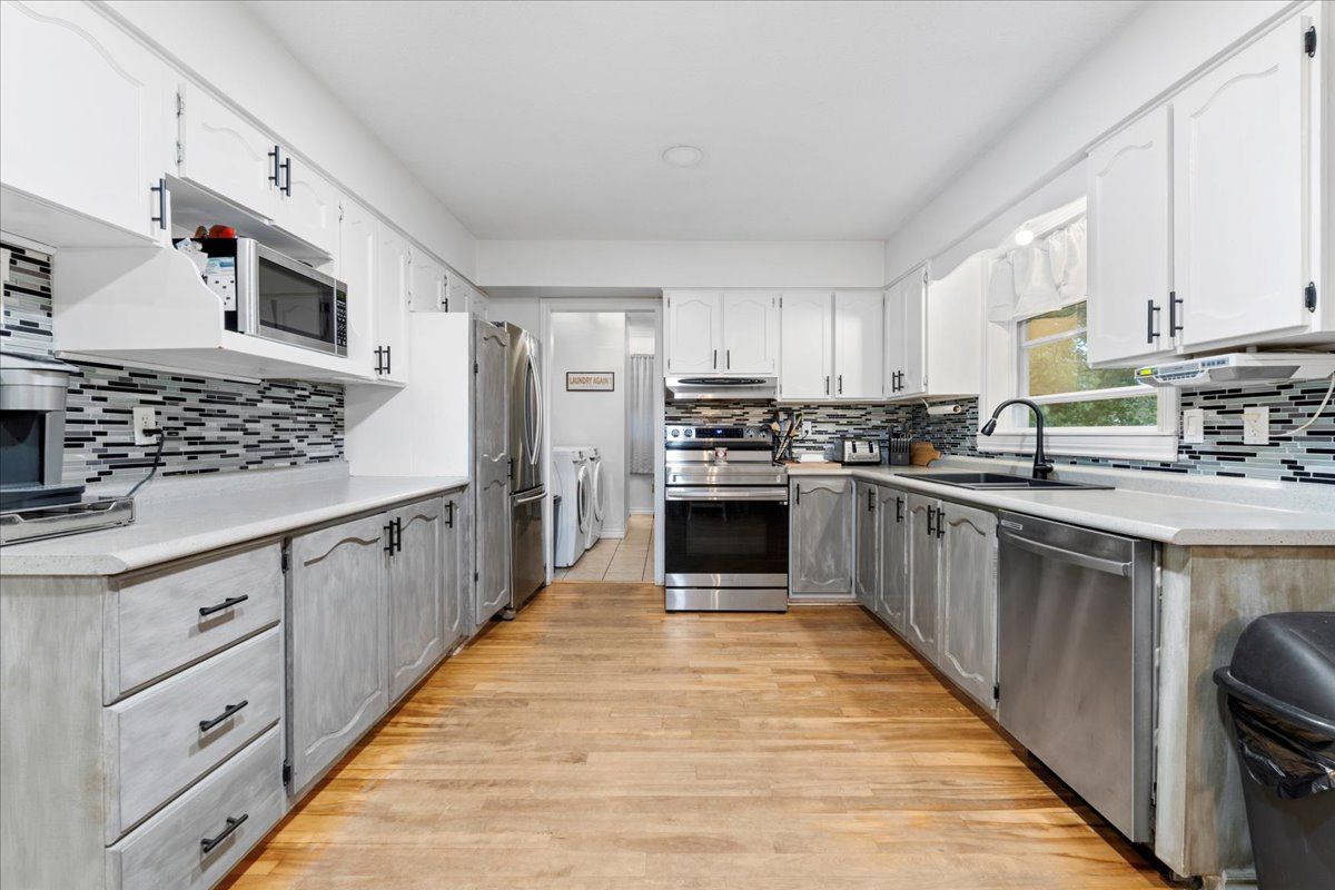 • Spacious main floor layout with kitchen, dining, and sunken living room.