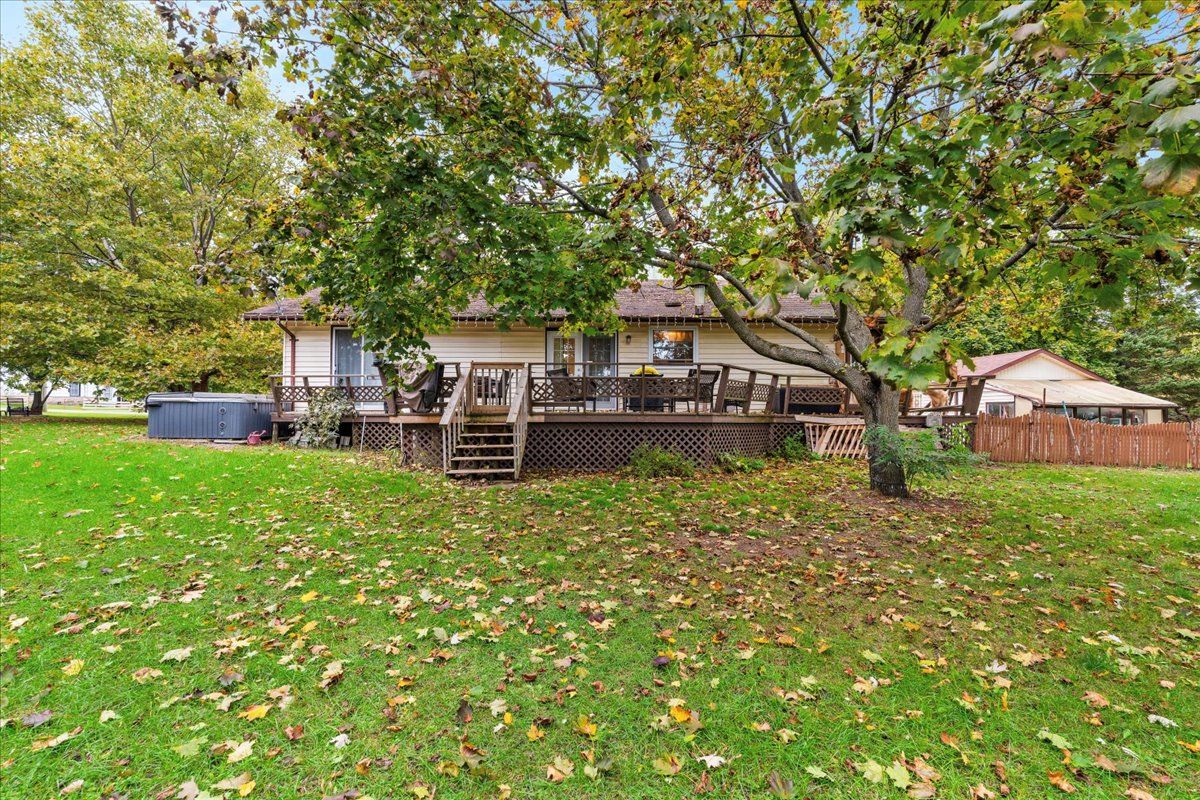 • Large deck, cozy front porch, and fenced area ideal for pets.