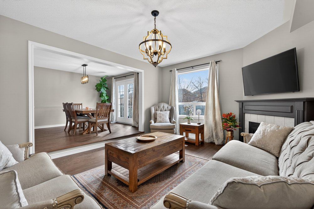 • Bright open-concept main floor with sunken family room and gas fireplace.