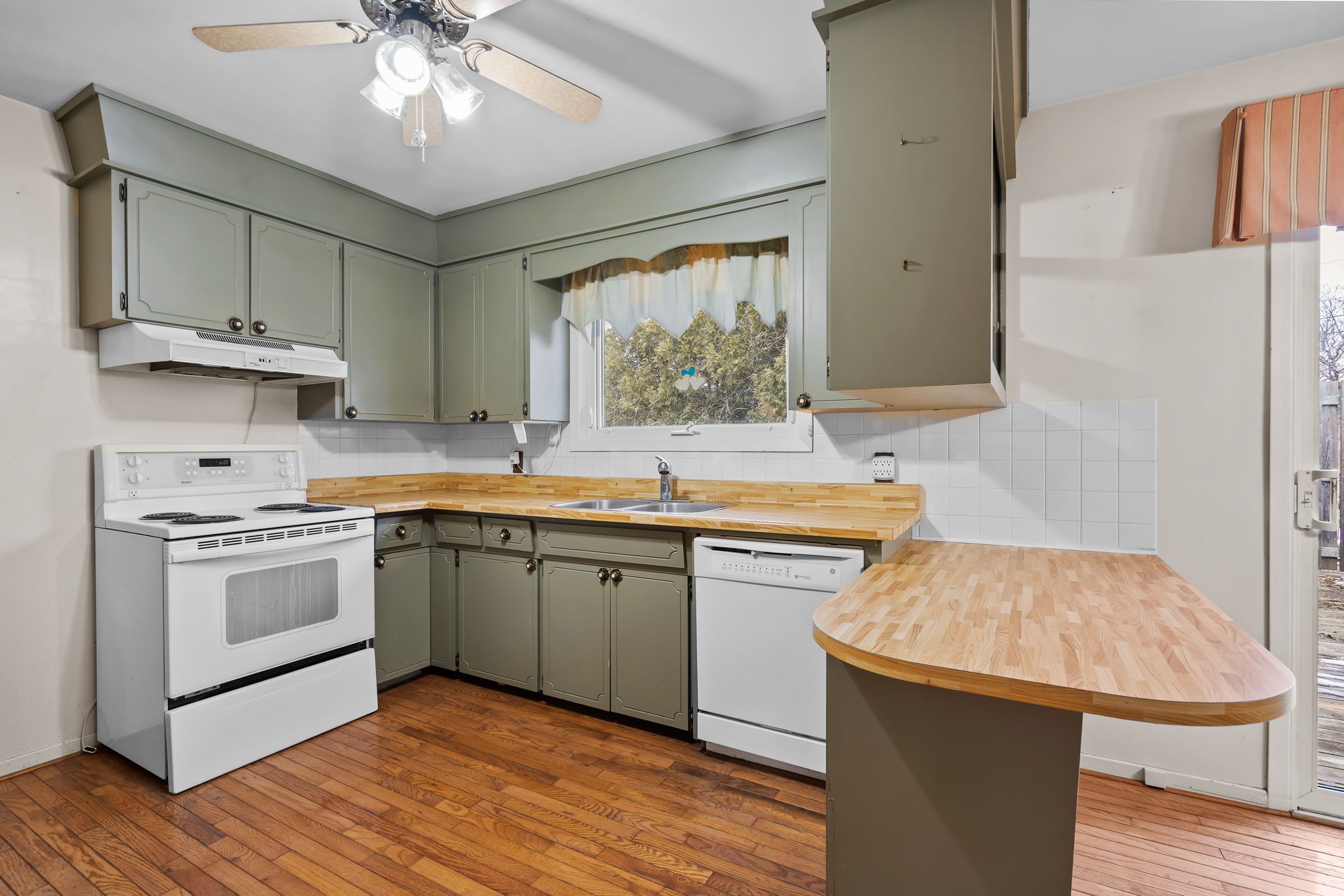 • Private rear yard accessible from the eating area for summer BBQs.