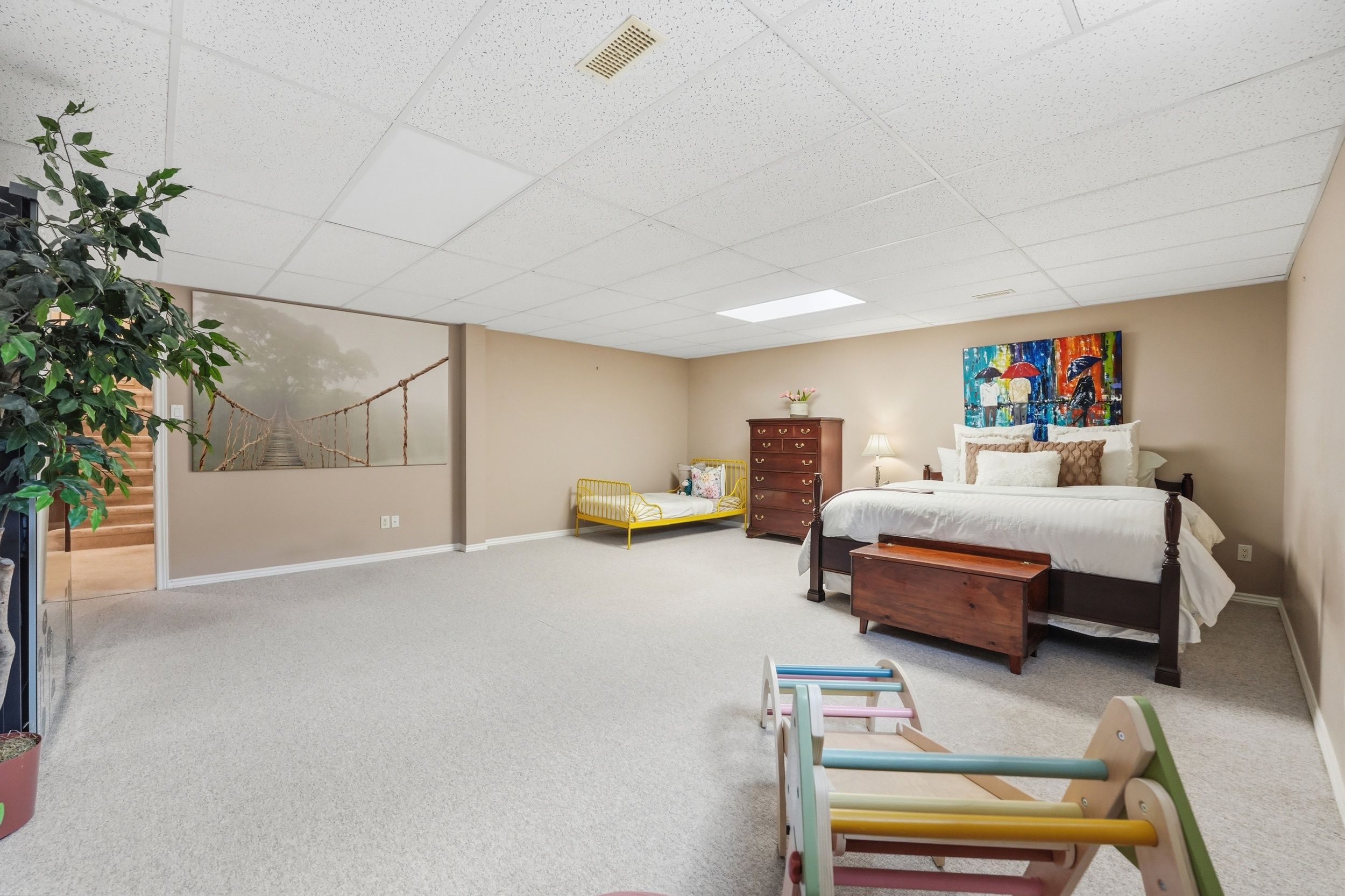 • Spacious lower level offers a rec room, additional bedroom, and a laundry room.