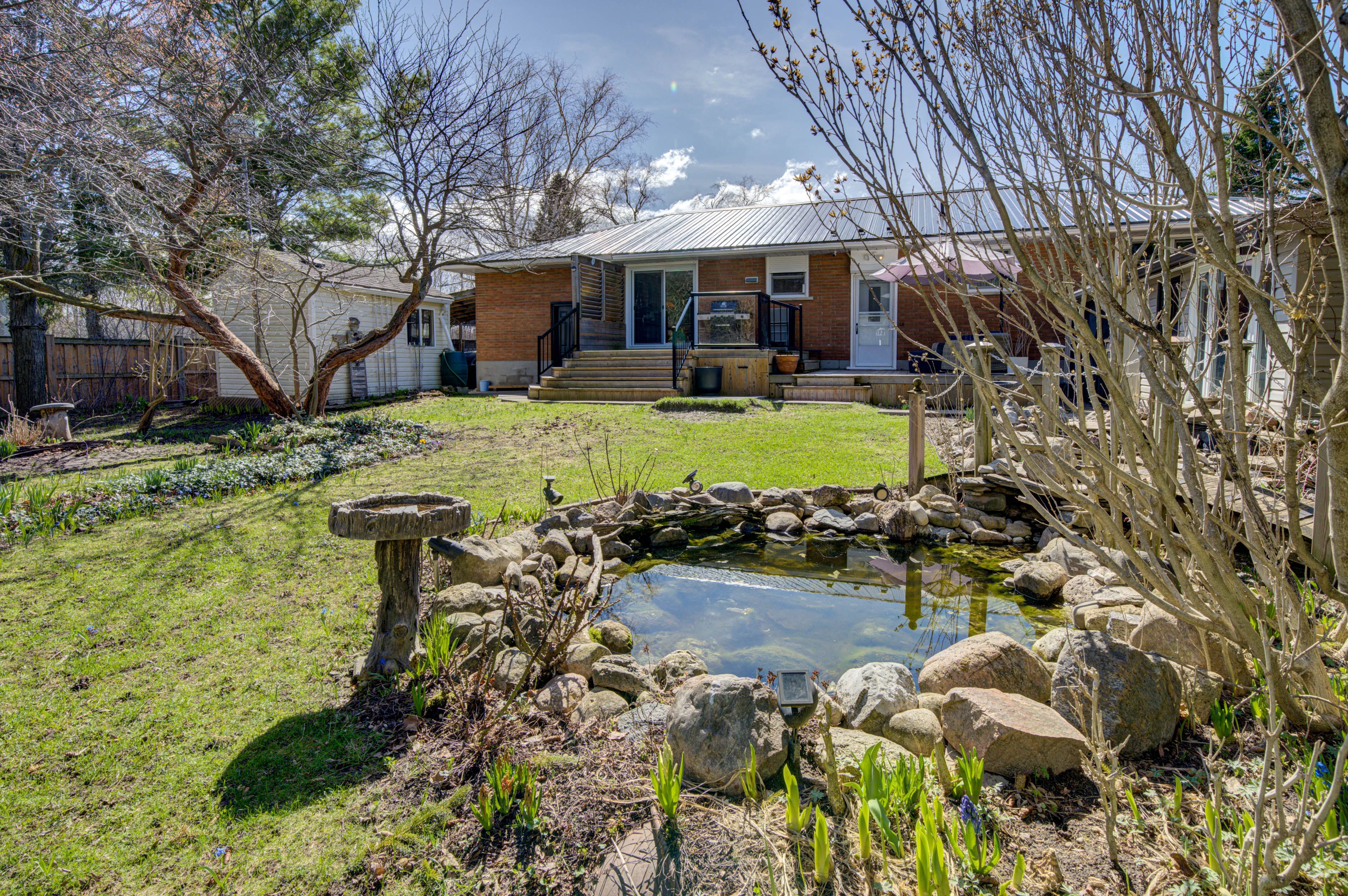 Welcome to 31 saunders street-an exceptional opportunity in one of collingwood's most desirable neighbourhoods. Ideally located just 14 minutes to the base of blue mountain and only 9 minutes to sunset point beach, this home is perfectly situated directly across from st. Mary's school. Set on a private, beautifully landscaped lot with a tranquil pond, the property features a rare on-site well for maintaining lush gardens, this fully bricked home includes hurricane shutters on all main-level windows and doors, and multiple versatile outbuildings. Enjoy peaceful outdoor living in the screened-in porch with skylight. Inside, thoughtful touches include a convenient laundry chute to a spacious lower-level laundry room, cold cellar and a central vacuum system. With incredible long-term potential, yet move in ready in an unbeatable location, this is a standout opportunity you won't want to miss.