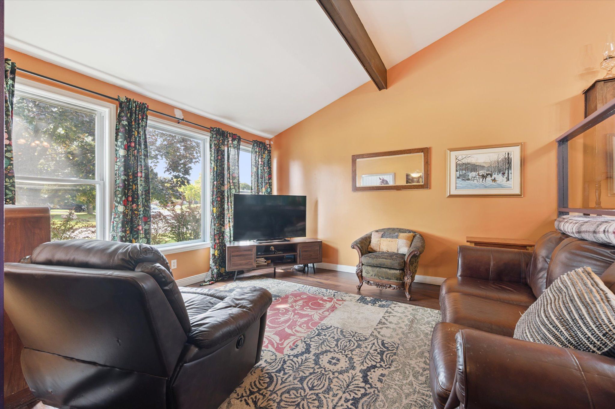 • Bright living room with vaulted ceilings and lots of natural light.