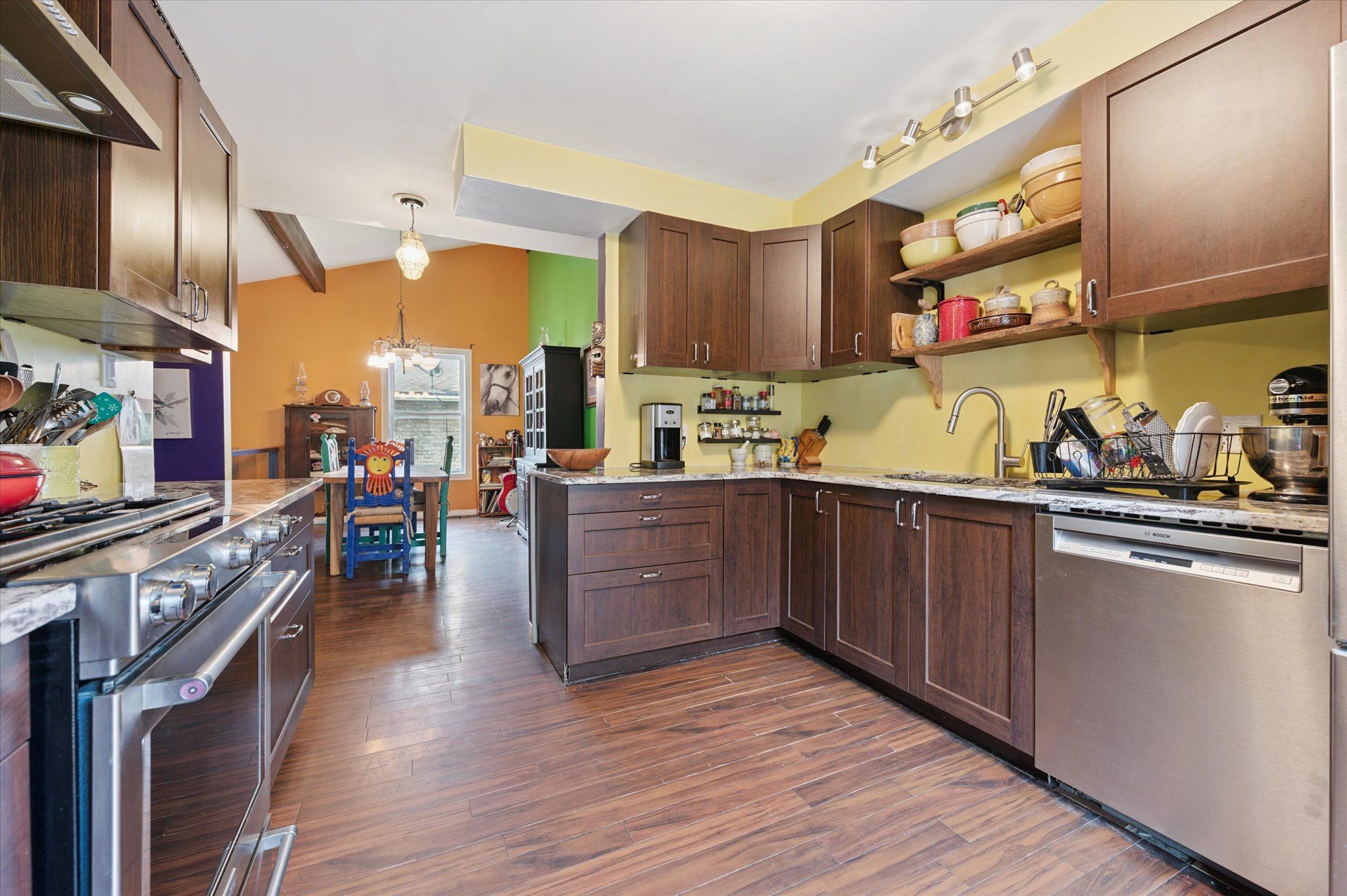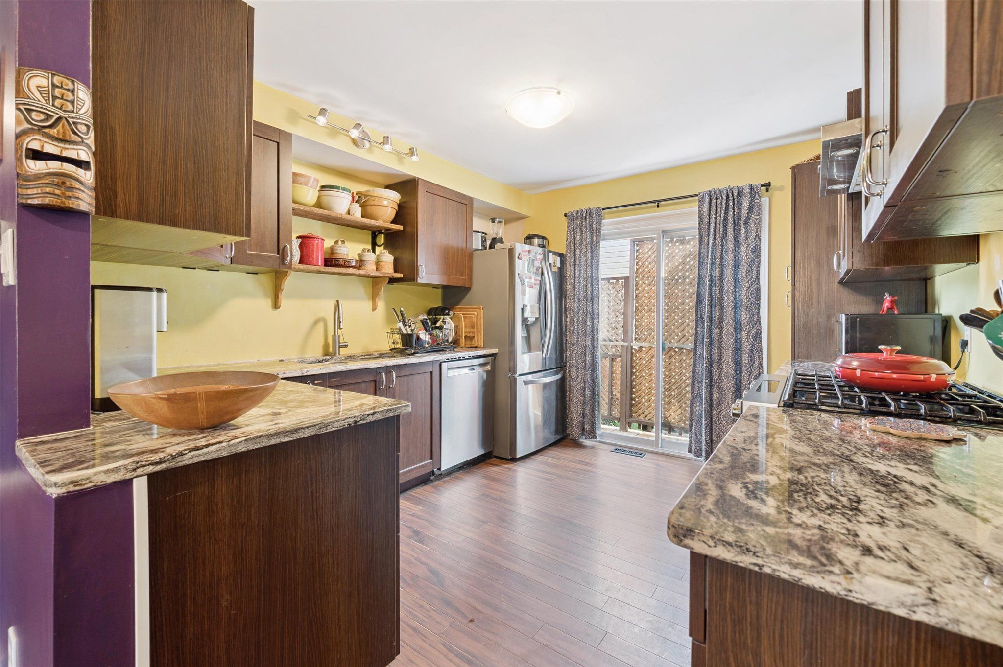 • Modern, renovated kitchen with easy access to a private backyard deck.