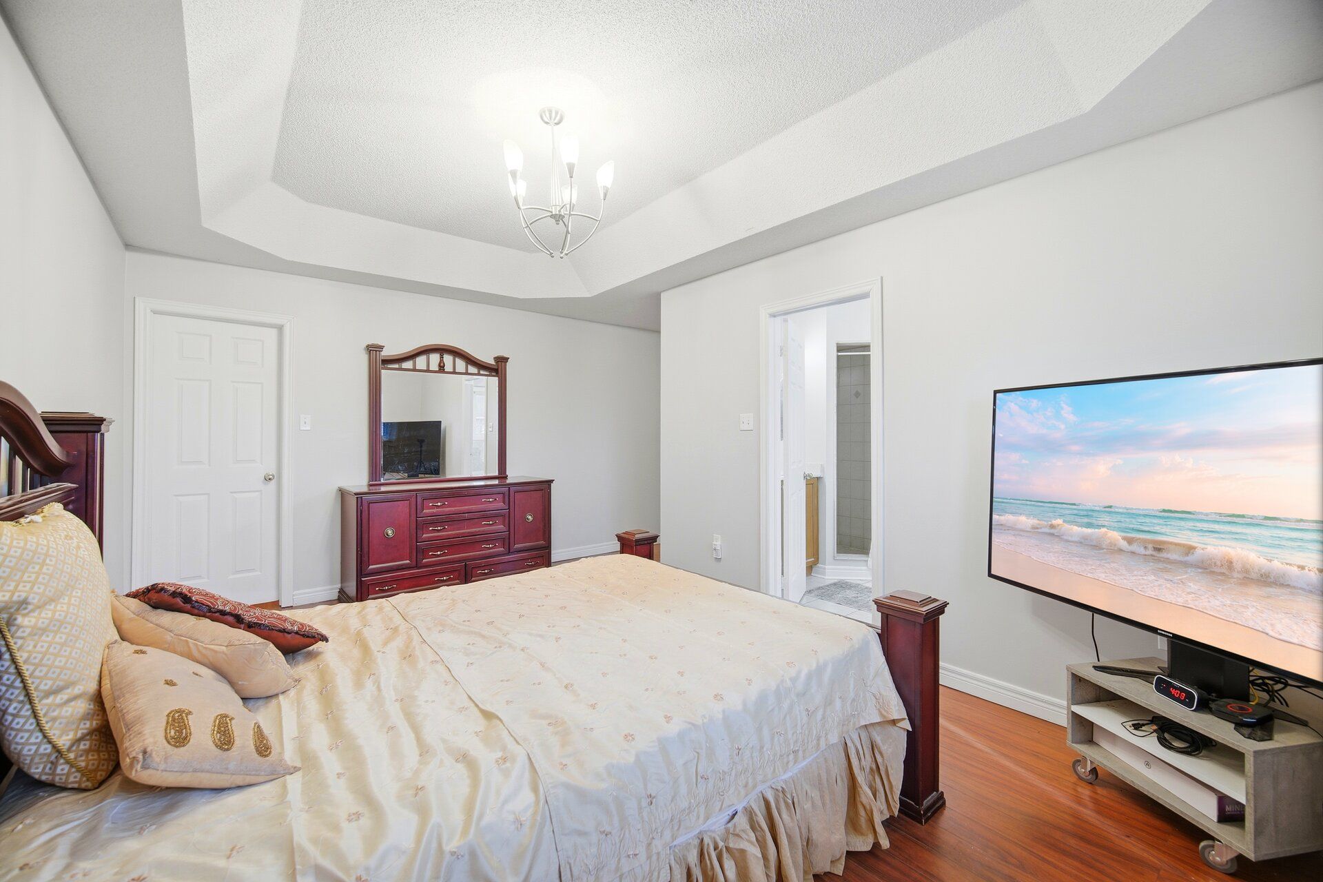 !! Beauty of lakeland village !! Immaculate 4 + 1 bedroom, 3 bathroom detached home with double garage in the highly desirable lakeland village area. Situated on a premium pie-shaped lot, this well-maintained home features numerous upgrades including a gourmet kitchen with centre island, bay window, and stainless steel appliances. The main floor offers 9-ft ceilings and hardwood flooring, creating a bright and elegant living space. Enjoy a sun-filled family room with gas fireplace, perfect for relaxing or entertaining. The spacious primary bedroom includes a 4-piece luxury ensuite with soaker tub, separate shower, and walk-in closet. Convenient main floor laundry with direct garage access. The finished basement features an open-concept recreation room and an additional bedroom, ideal for extended family or guests. Exterior highlights include a 4-car driveway, central air conditioning, and pride of ownership as this is an original owner home located on a quiet streetwalking distance to the lake, parks, shopping, and turn berry golf club, with quick access to hwy 410.